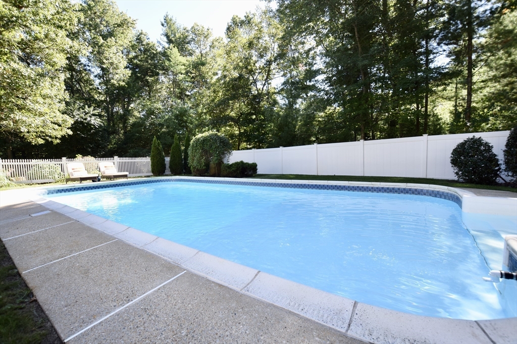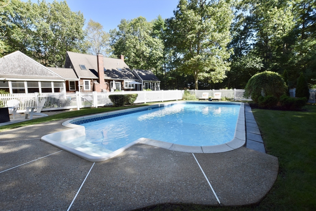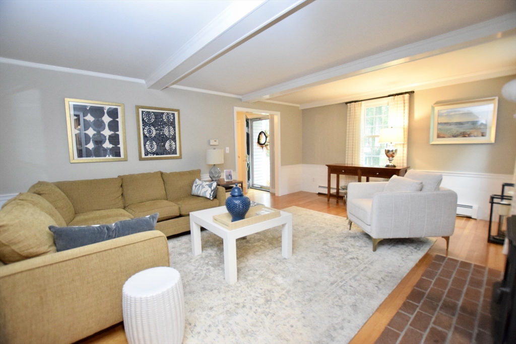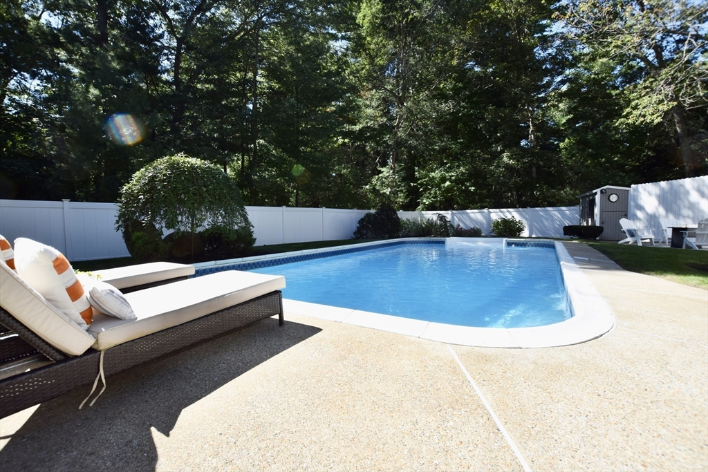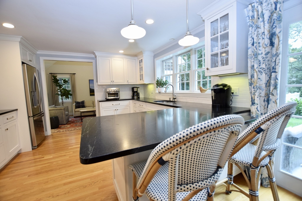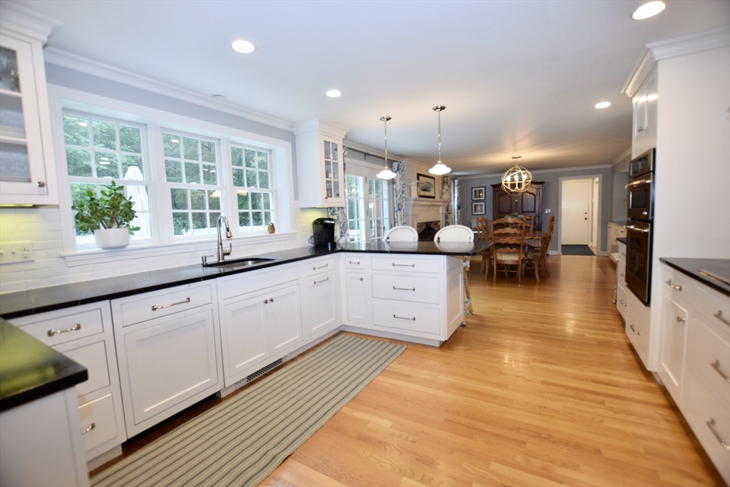 Meticulously cared-for Salt Box Colonial set back off Cherry Street offers timeless elegance & modern comfort. Hardwood floors flow throughout, complementing an eat-in Chef's gourmet kitchen w/ soapstone counters, custom backsplash, upgraded cabinets, double wall ovens, induction cooktop, wood-burning fireplace & French doors. The inviting Living Room features a pellet stove & coffered ceiling, while the Family Room impresses w/ vaulted ceiling, hardwoods & custom windows. A distinguished 1st-floor Office adds both function & style. Upstairs, 3 spacious bedrooms all feature hardwoods, including a serene primary suite w/ walk-in closet & en suite bath w/ limestone vanity. Outdoor grounds are manicured w/ mature plantings, lush lawn & 12-zone irrigation. Entertain or unwind on the back deck, screened-in porch, or by your private in-ground pool, surrounded by ample yard space for gatherings. A rare offering that perfectly blends sophistication & comfort.