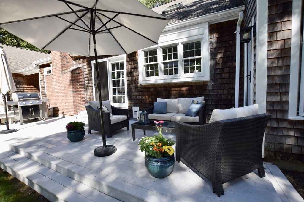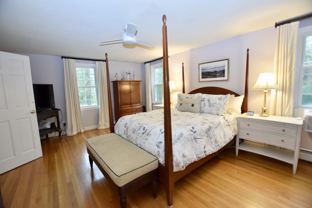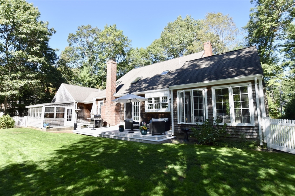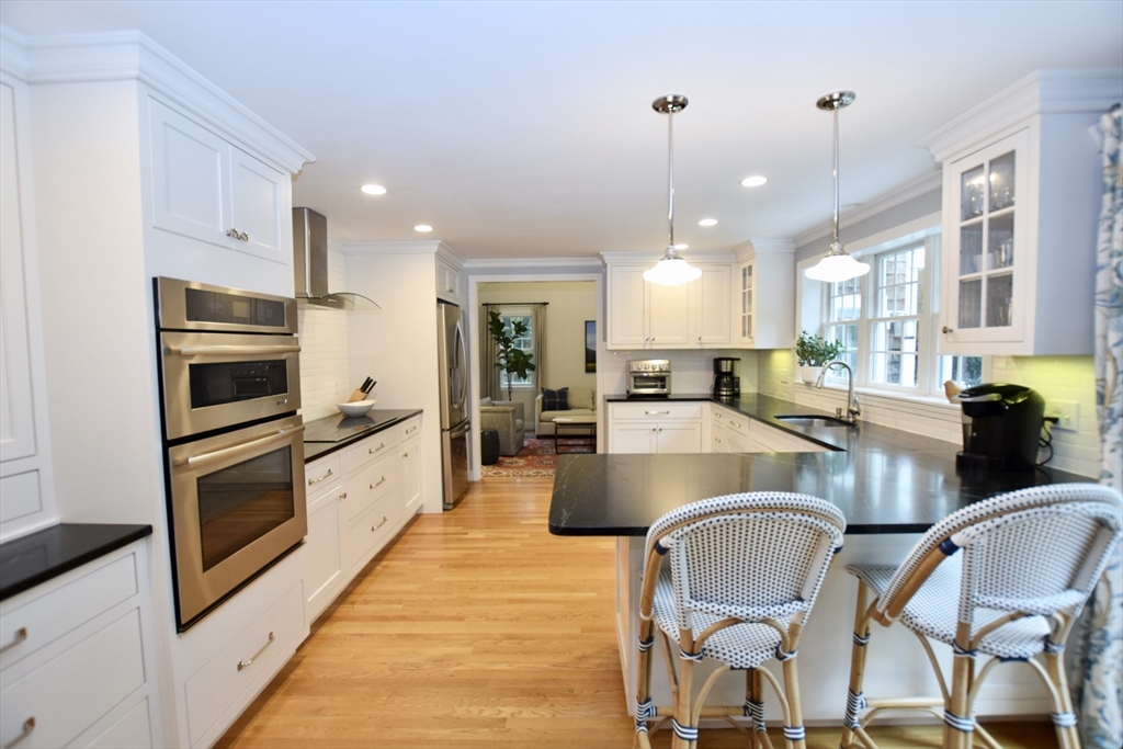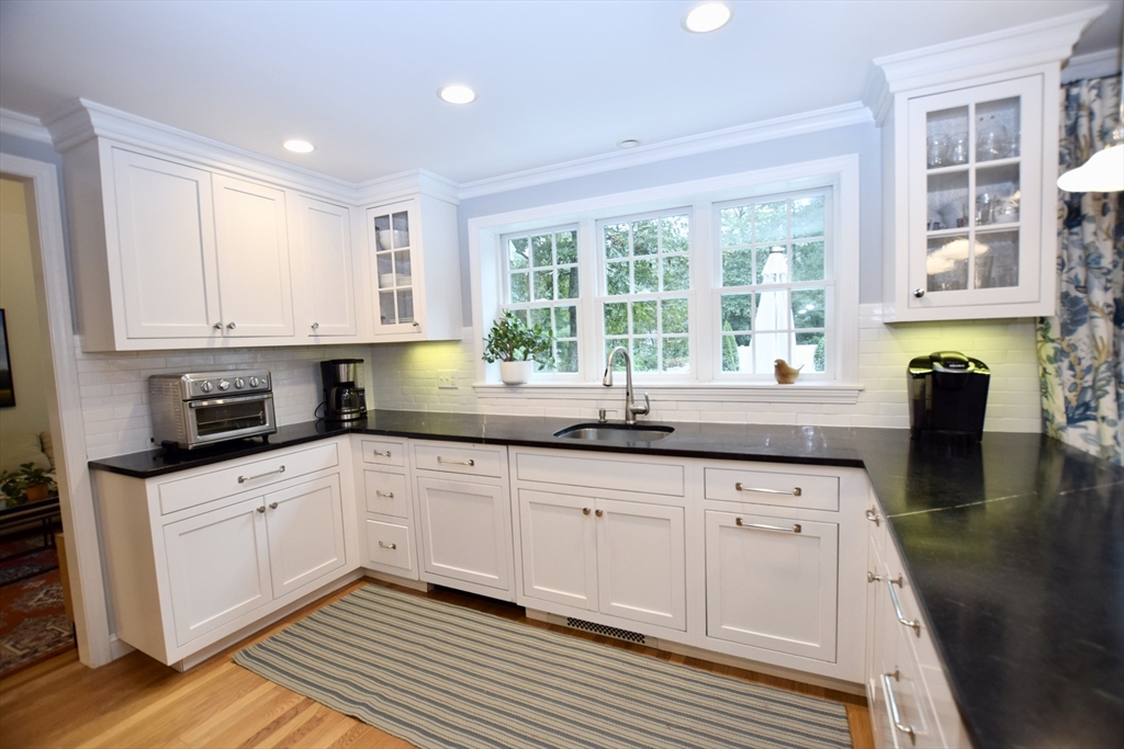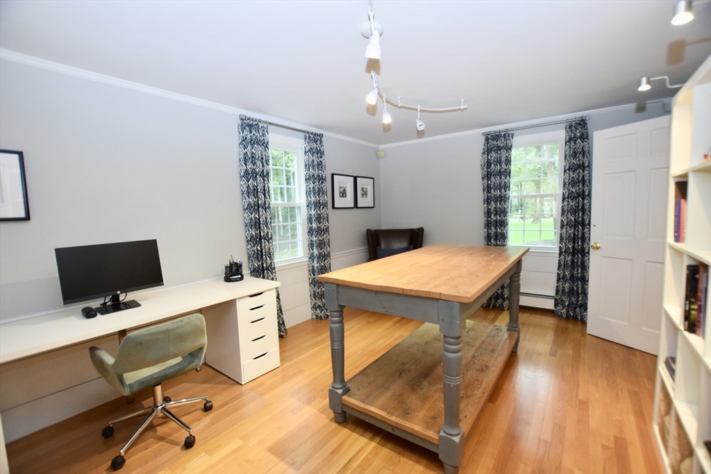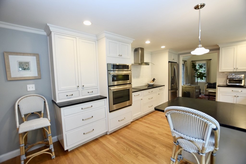 Meticulously cared-for Salt Box Colonial set back off Cherry Street offers timeless elegance & modern comfort. Hardwood floors flow throughout, complementing an eat-in Chef's gourmet kitchen w/ soapstone counters, custom backsplash, upgraded cabinets, double wall ovens, induction cooktop, wood-burning fireplace & French doors. The inviting Living Room features a pellet stove & coffered ceiling, while the Family Room impresses w/ vaulted ceiling, hardwoods & custom windows. A distinguished 1st-floor Office adds both function & style. Upstairs, 3 spacious bedrooms all feature hardwoods, including a serene primary suite w/ walk-in closet & en suite bath w/ limestone vanity. Outdoor grounds are manicured w/ mature plantings, lush lawn & 12-zone irrigation. Entertain or unwind on the back deck, screened-in porch, or by your private in-ground pool, surrounded by ample yard space for gatherings. A rare offering that perfectly blends sophistication & comfort.