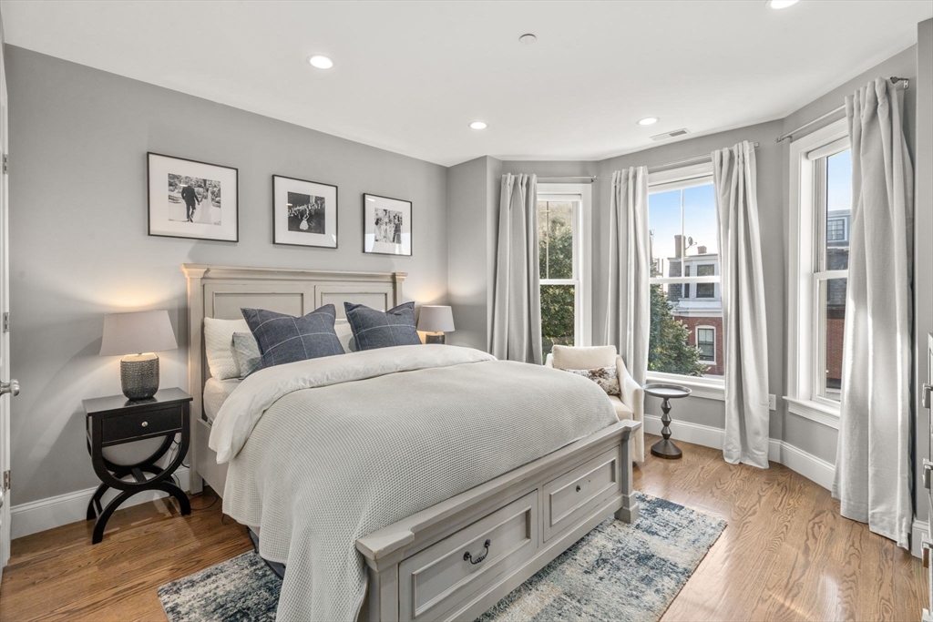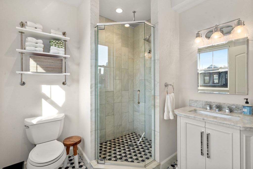 This two bedroom, two full bathroom condo (plus separate office!) is your turn-key option in a premier East Side location. Enter the sunny unit and you are immediately impressed by the custom millwork, soaring ceilings and open concept kitchen/living area complete with a wall of windows. The kitchen has high end appliances, beautiful white cabinetry, updated backsplash and solid counters. The primary bedroom easily accommodates a king-size bed and offers two custom closets, a South facing bay window, an ensuite marble bathroom with a glass enclosed shower. The second bedroom offers excellent privacy in addition to the newly installed California Closet system. The second full bathroom includes a deep soaking tub and shower enclosure in addition to designer selected tile. Upstairs, a separate bonus room allows for use as an office, gym, or sitting room- also great for overnight guests. Hardwood floors, ample storage, washer and dryer in-unit, central AC, private deck, additional storage