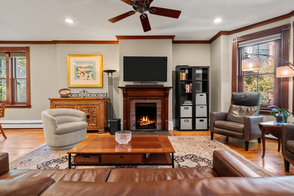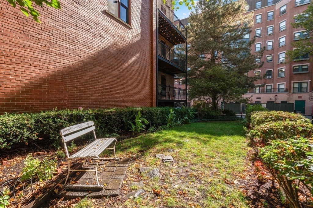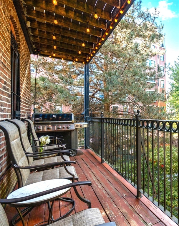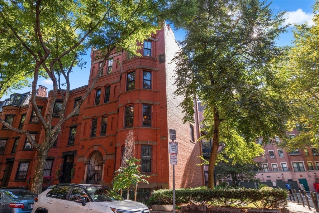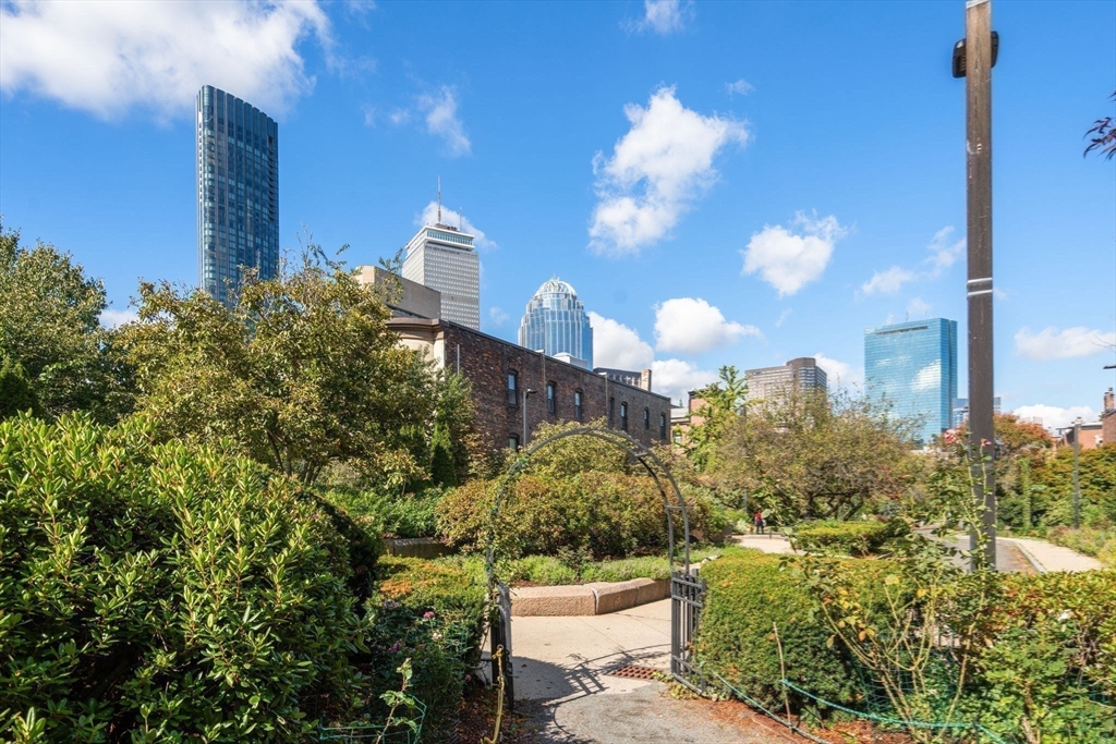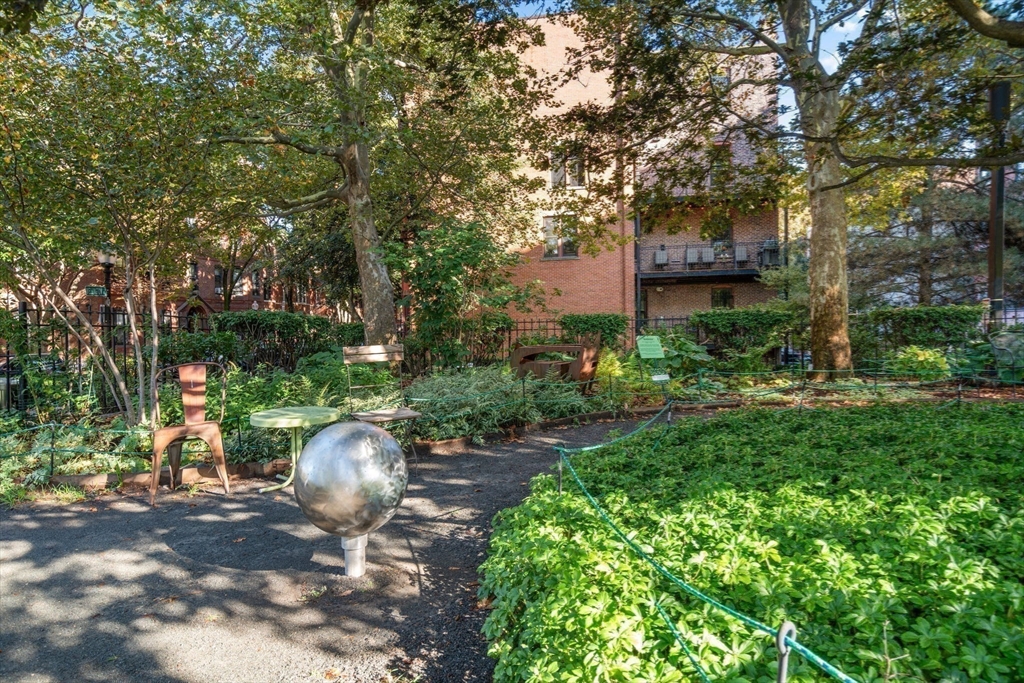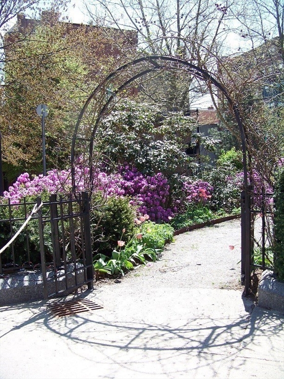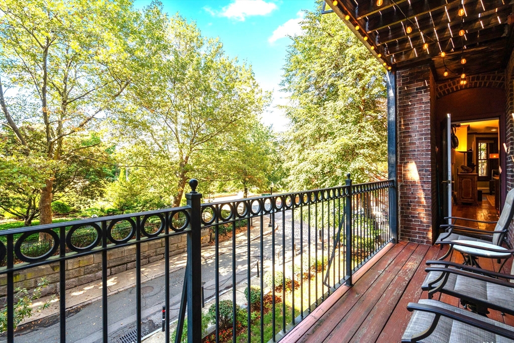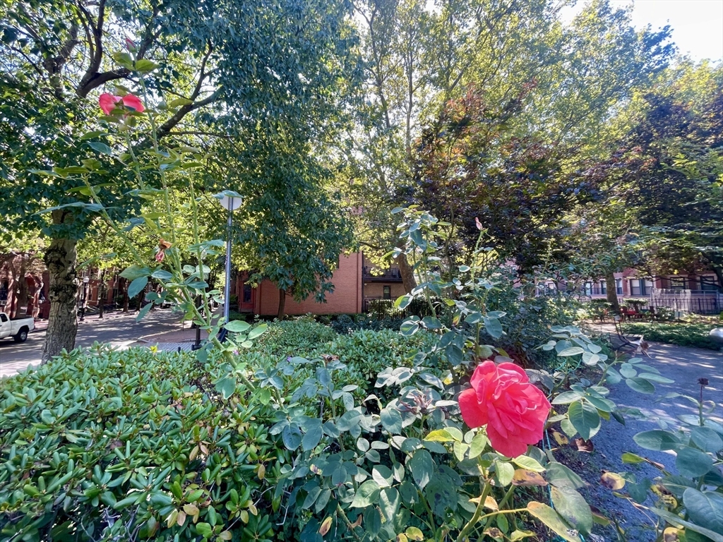 South End. On The Park. Parking included. Wonderful Deck. Spectacular Rare Corner home with 13 windows + 3 exposures providing beautiful natural light. This home overlooks the Rose Garden at the Southwest Corridor Park. From the deck enjoy dining al fresco + morning coffee. Inviting living room, perfect for entertaining, with tall ceilings, wood floors, fireplace + a separate dining area which could also be used as a home office. Sleek Open plan kitchen w/ breakfast bar, stainless steel appliances, including gas cooking, stone countertops/breakfast bar + plenty of cabinetry/work surfaces. Stunning bathroom with custom tile work, tub + modern fixtures. In unit washer/dryer. Great closets including two walk ins. Additional bonus storage in basement including space for a bike. Picturesque leafy street with brick sidewalks & historic street lamps. Live in the exciting South End neighborhood near destination restaurants, shopping, green spaces, Whole Foods, The T and more outside your door.