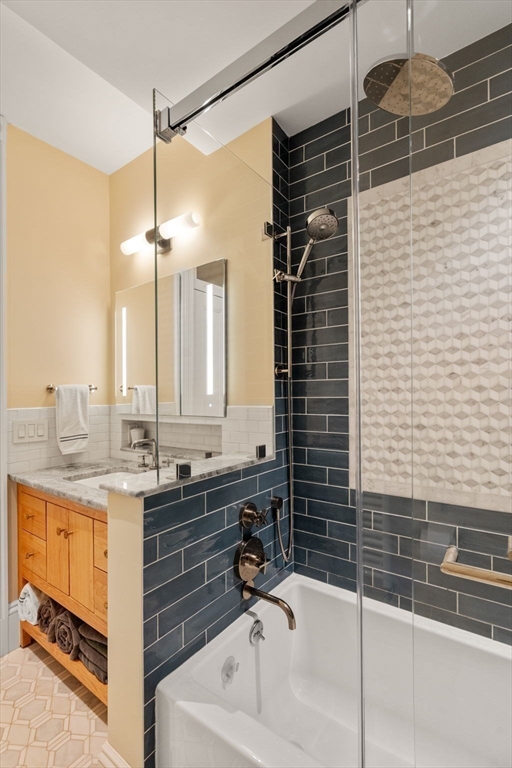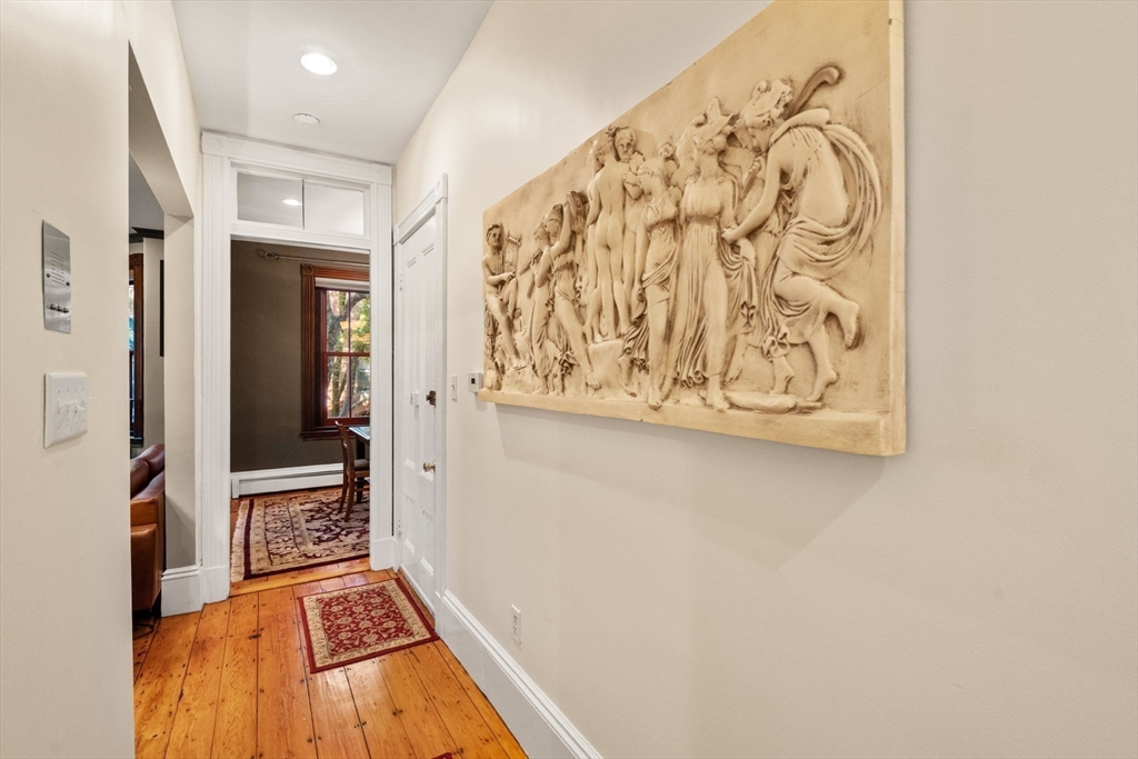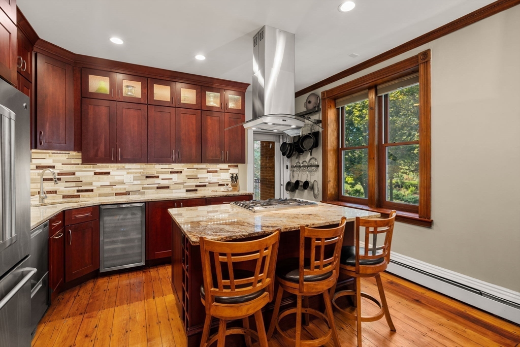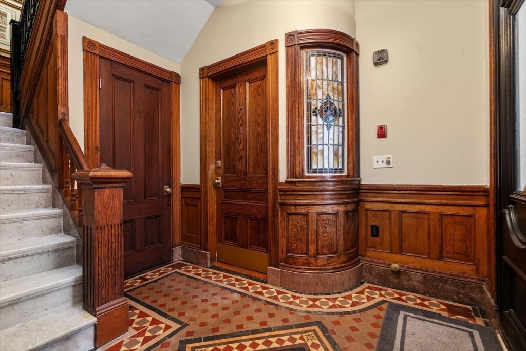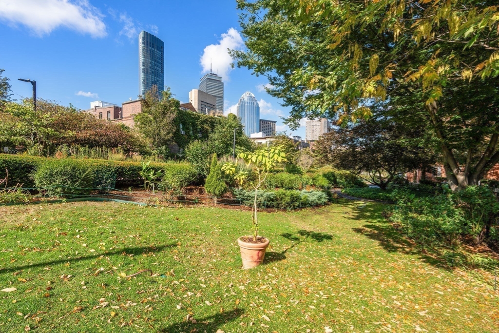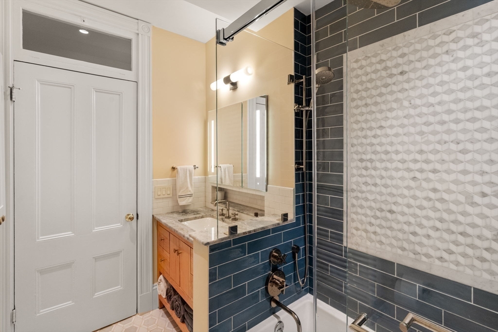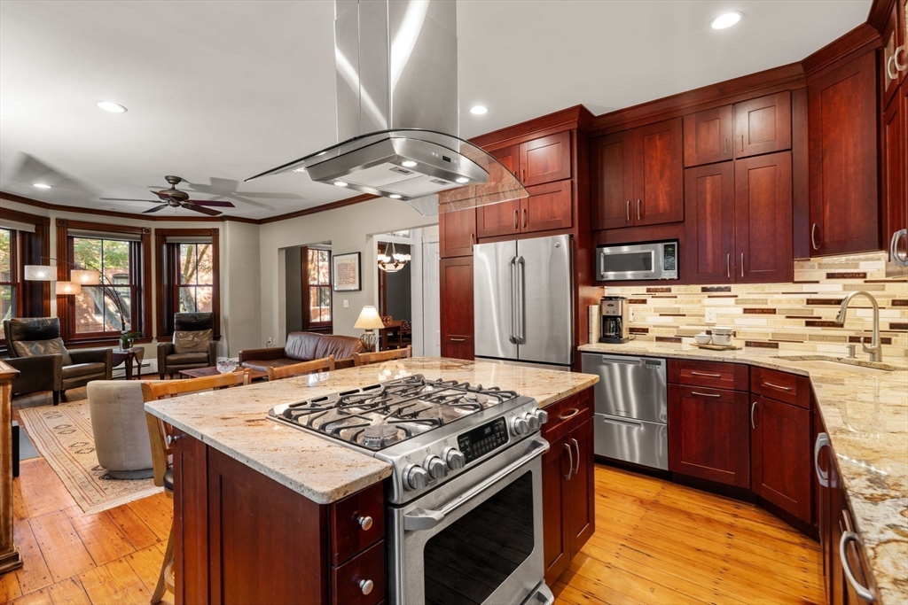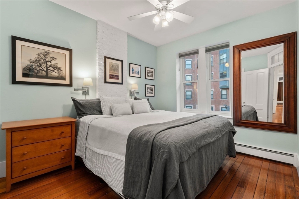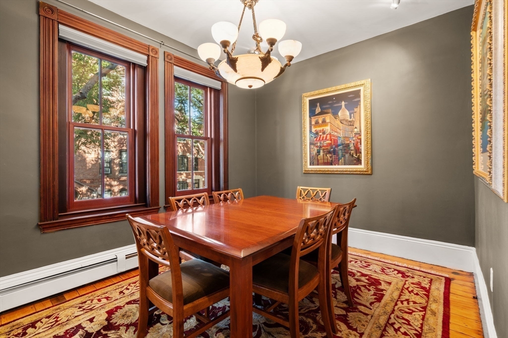 South End. On The Park. Parking included. Wonderful Deck. Spectacular Rare Corner home with 13 windows + 3 exposures providing beautiful natural light. This home overlooks the Rose Garden at the Southwest Corridor Park. From the deck enjoy dining al fresco + morning coffee. Inviting living room, perfect for entertaining, with tall ceilings, wood floors, fireplace + a separate dining area which could also be used as a home office. Sleek Open plan kitchen w/ breakfast bar, stainless steel appliances, including gas cooking, stone countertops/breakfast bar + plenty of cabinetry/work surfaces. Stunning bathroom with custom tile work, tub + modern fixtures. In unit washer/dryer. Great closets including two walk ins. Additional bonus storage in basement including space for a bike. Picturesque leafy street with brick sidewalks & historic street lamps. Live in the exciting South End neighborhood near destination restaurants, shopping, green spaces, Whole Foods, The T and more outside your door.