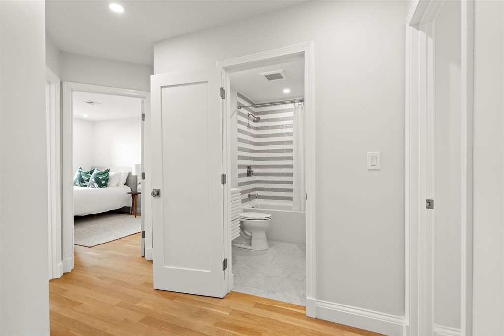 Welcome home to perfection in City Point! Completely renovated w/ designer touches throughout. This townhome lives like a single family w/ private entrance & attached garage. As you enter, head up the stairs to an open & airy living & kitchen space flanked by 2 private decks off the front and back. The kitchen features Thermador appliance package, quartz counters, marble backsplash & ample counter seating. Built-in dry bar & designated dining area make this home perfect for entertaining and a convenient 1/2 bath rounds out this level. Heading up to the top floor you'll find 3 true bedrooms including a primary boasting a sleek en-suite bathroom. Another full bath rounds out this level. Last but not least is the versatile bottom floor which can be used as a playroom, media room, home office, gym or additional guest room. This leads out to a private, enclosed patio. Close to public transportation, Castle Island, parks and the beach. High owner occupancy and healthy reserves!