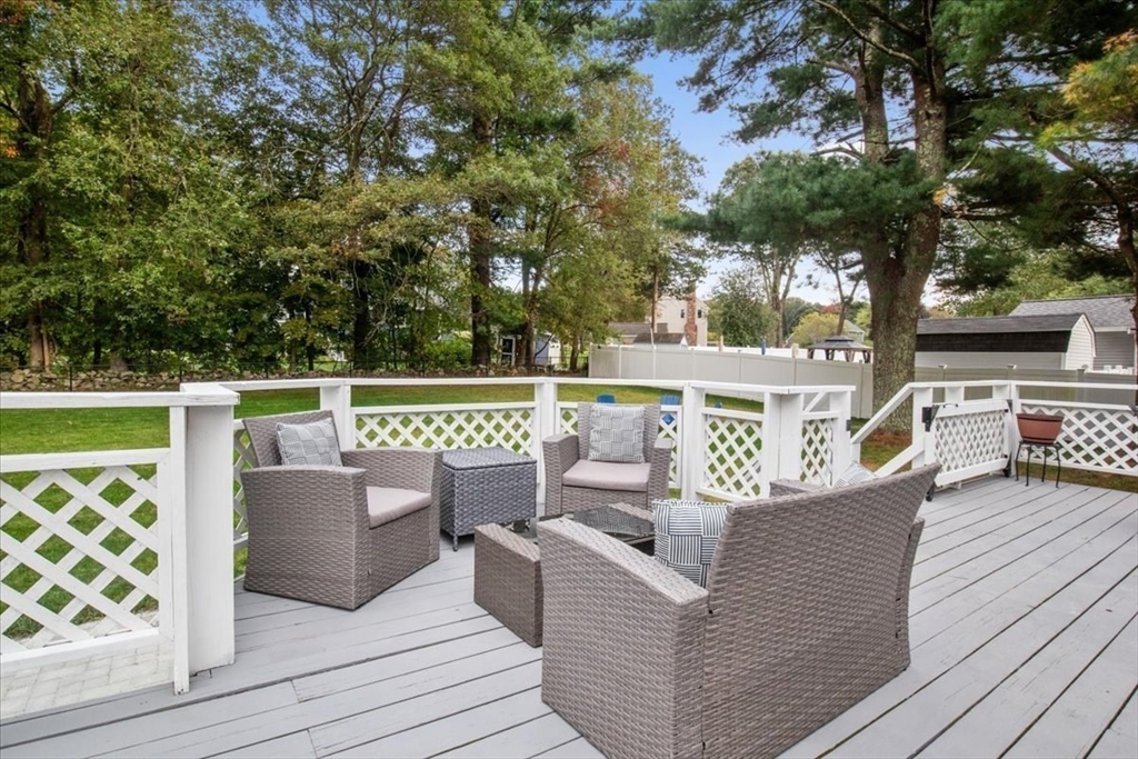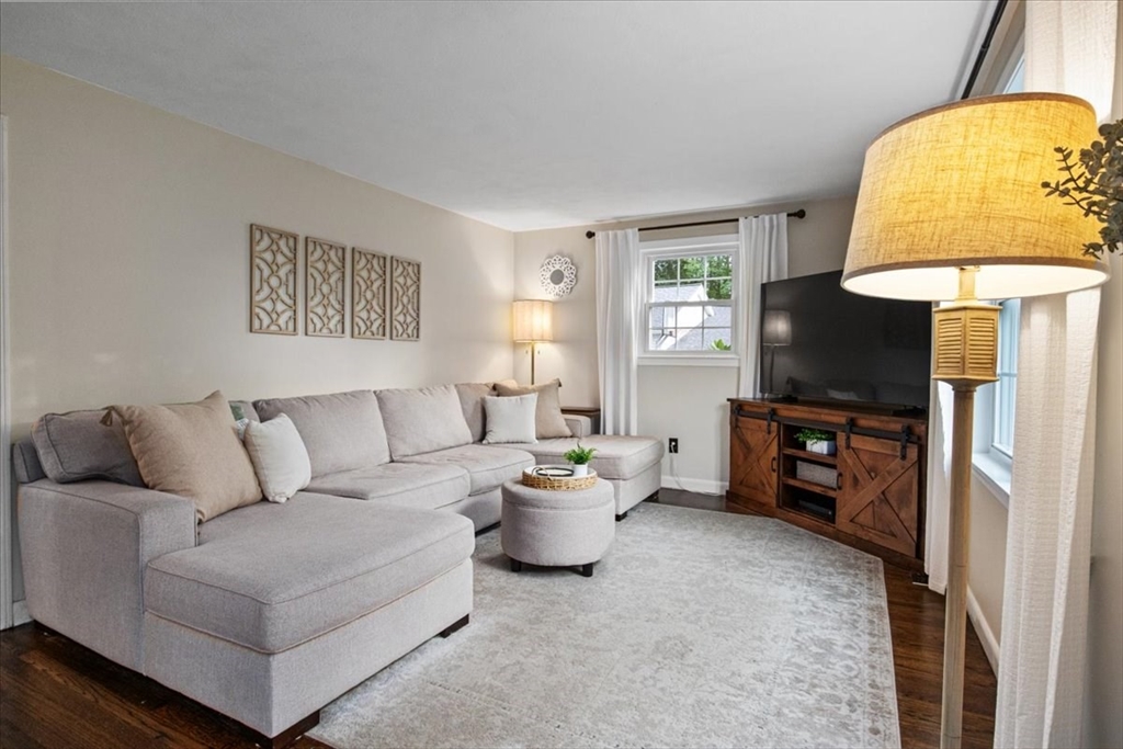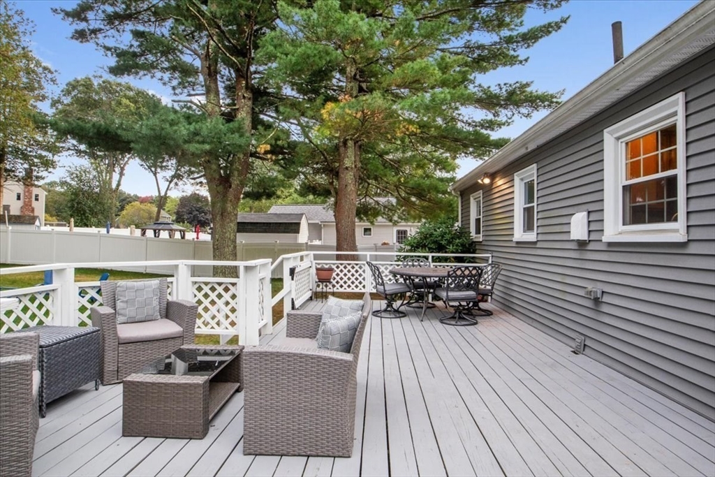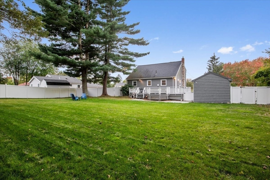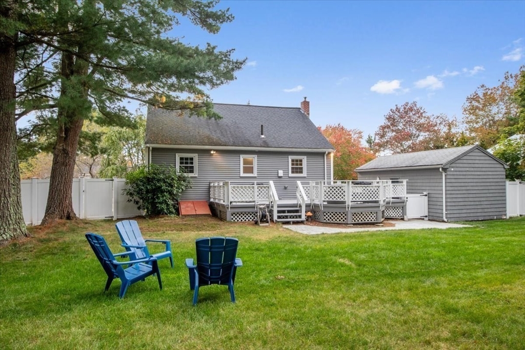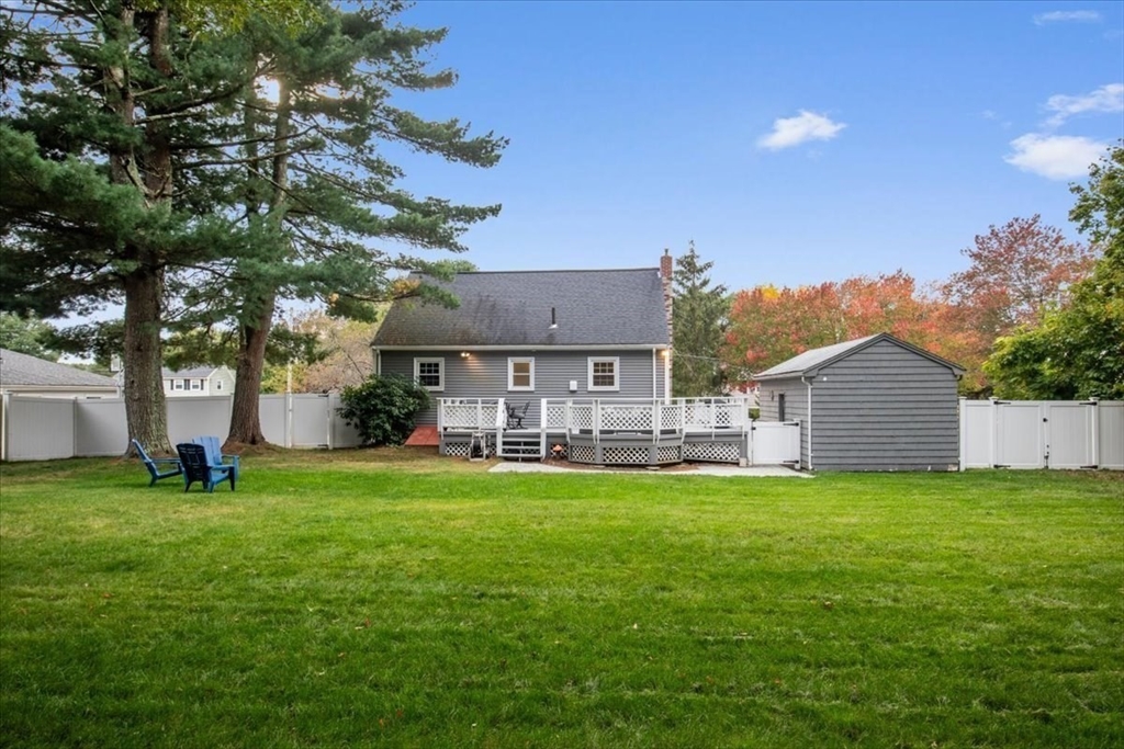 Just wait until you see this charming Colonial, located in a desirable neighborhood in the Lincoln St school district. This home features gleaming refinished hardwood floors throughout, a recently renovated bathroom, updated heat/ac, and a first floor bedroom that could also be used as an office. The living spaces are filled with natural light & neutral paint colors, creating a bright & airy vibe. The unfinished basement offers ample storage & future finishing potential. Upstairs, there's an 8' deep crawl space which provides potential to add a dormer & second bathroom. The level fenced-in backyard & oversized deck are ideal for outdoor enjoyment. A detached one-car garage includes generous storage space. Conveniently located near schools, commuter rail, and town amenities, this home is move-in ready with room to grow.