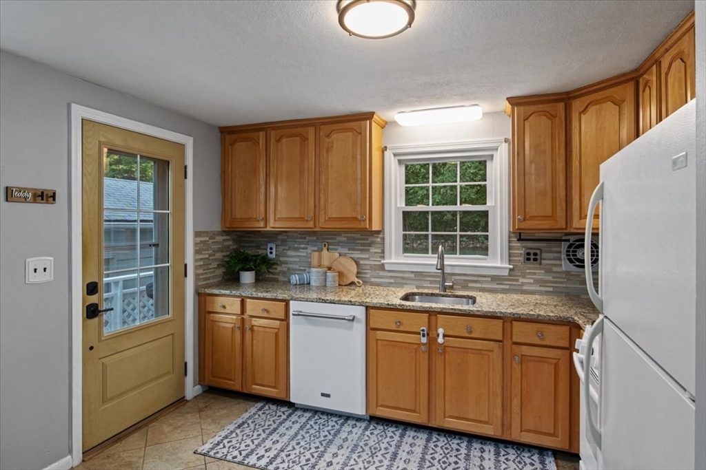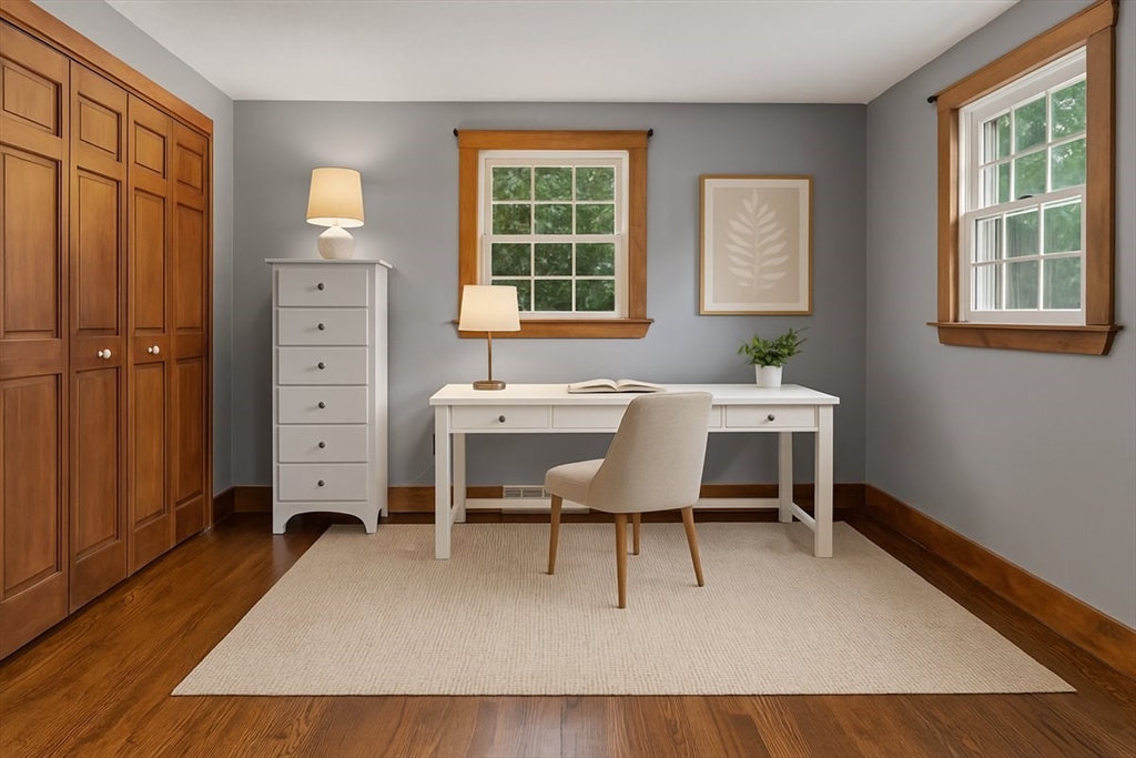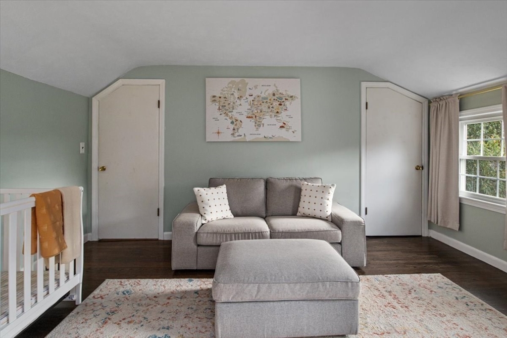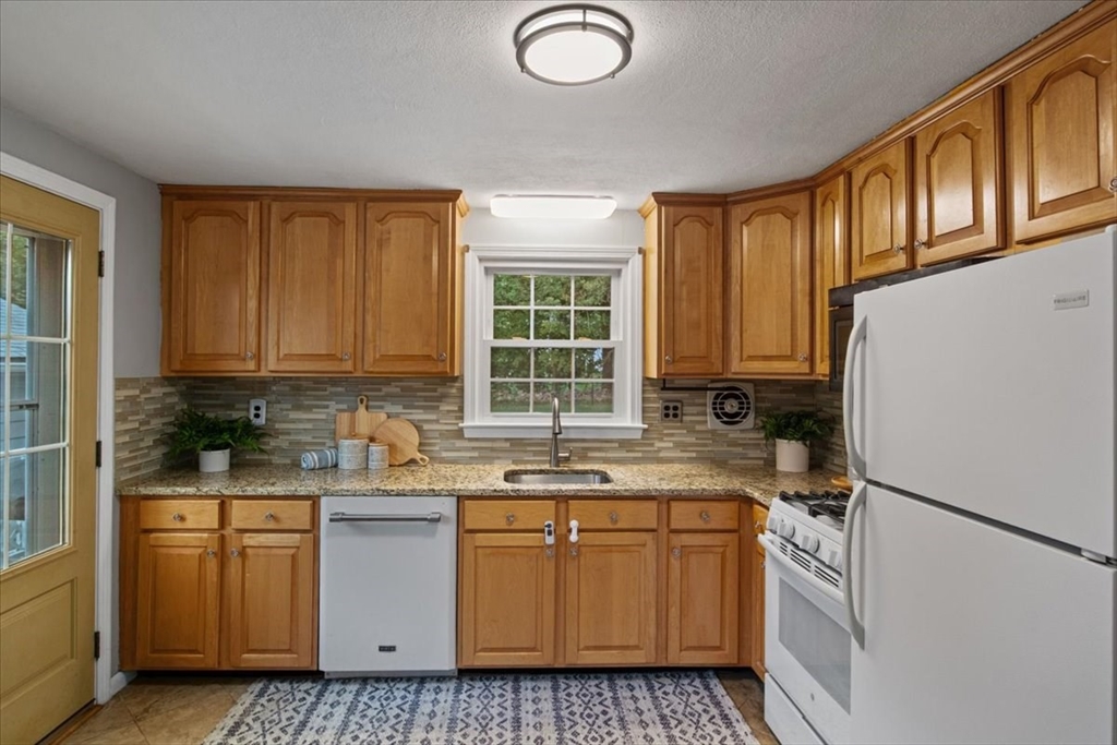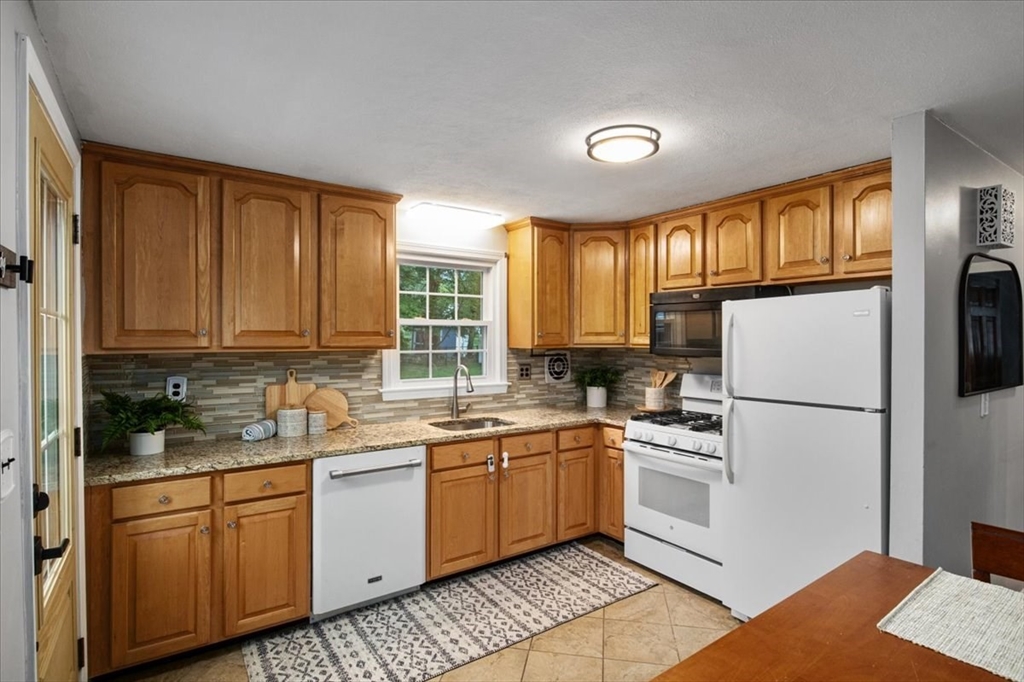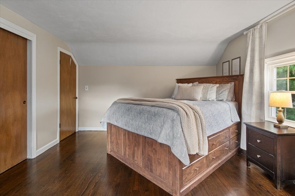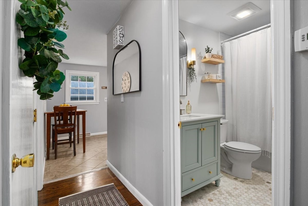 Just wait until you see this charming Colonial, located in a desirable neighborhood in the Lincoln St school district. This home features gleaming refinished hardwood floors throughout, a recently renovated bathroom, updated heat/ac, and a first floor bedroom that could also be used as an office. The living spaces are filled with natural light & neutral paint colors, creating a bright & airy vibe. The unfinished basement offers ample storage & future finishing potential. Upstairs, there's an 8' deep crawl space which provides potential to add a dormer & second bathroom. The level fenced-in backyard & oversized deck are ideal for outdoor enjoyment. A detached one-car garage includes generous storage space. Conveniently located near schools, commuter rail, and town amenities, this home is move-in ready with room to grow.