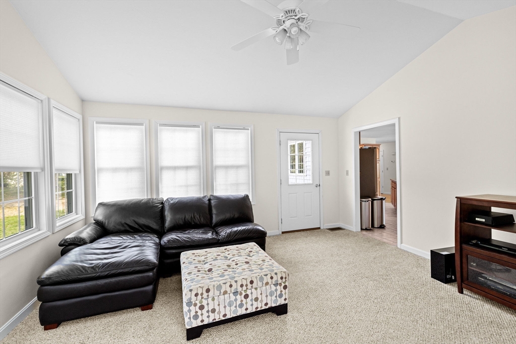 Welcome to White Pines Village, a highly sought-after 55+ adult community! This move-in ready ranch-style home offers a wonderful open floor plan designed for both comfort and convenience. The cathedral-ceiling living room flows seamlessly into the spacious kitchen and sunlit family room, complete with a cozy gas fireplace. An office nook sits just off the kitchen, providing the perfect spot to stay organized.With two bedrooms and two full baths, there’s plenty of room to relax and entertain. The primary suite includes its own private bath while a second full bath is perfect for guests. A full unfinished basement delivers abundant space for all of your storage needs. The attached two-car garage offers everyday ease and convenience.Set within a welcoming community, this home combines low-maintenance living with all the comforts you’ve been looking for.