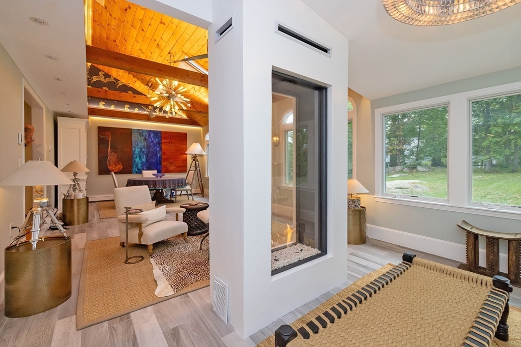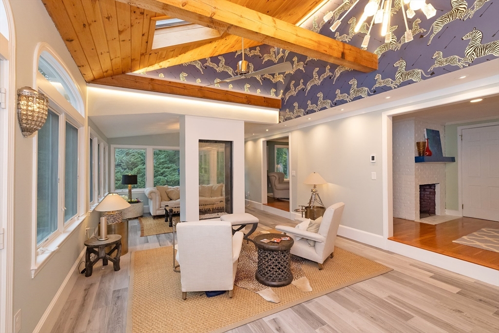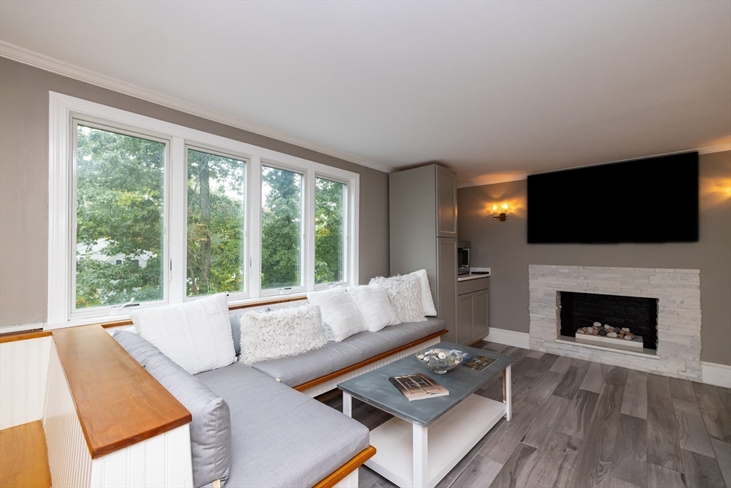 Elevated above Forest Avenue on a private, wooded half acre, this home combines architectural presence with effortless coastal living. Nearly fifty new Andersen windows, five fireplaces and radiant floors flood the interiors with light and warmth. A rare seven-foot double-sided fireplace anchors the dramatic great room and adjoining cozy salon; a reimagined kitchen and family space invite entertaining. Recent investments — Hardie board exterior, composite porch and deck, upgraded HVAC — deliver ease and longevity. Sidewalks lead to beach, village and trails; Boston is accessible by rail or ferry. A turnkey South Shore retreat with privacy and enduring value. *Open this Fri 10-12:30, Sat 1-3, & Sunday 11-1:30. All offers due on Monday by 5pm.*