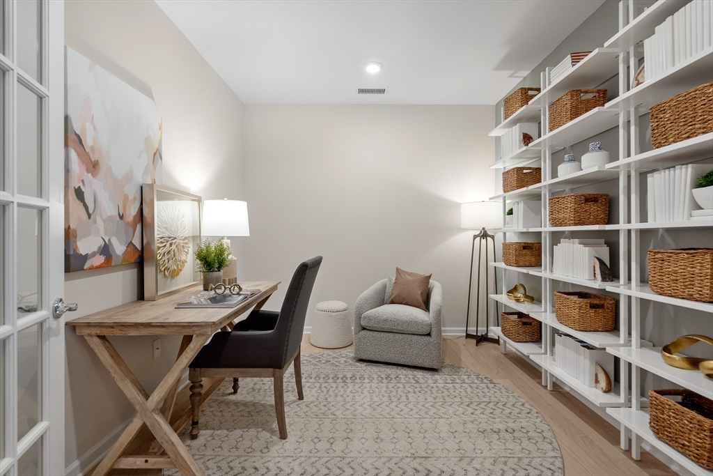 Ready for fall 2025 move-in, the brand-new Jameson offers low-maintenance convenience, an open, light-filled layout and deeded garage parking space. This one-bedroom, one-bath home features a flexible room you can personalize, plus a kitchen with abundant cabinet space, stainless steel appliances, a large island, and gleaming hardwood floors. Unwind in the bright gathering room or step out to your private east-facing balcony. The owner’s suite includes a walk-in closet and spa-inspired bath with a walk-in shower. A laundry room and coat closet provide everyday ease. Enjoy an 11,500 SF clubhouse, heated pool, pickleball and bocce courts, and scenic walking trails around Lake Chauncy.