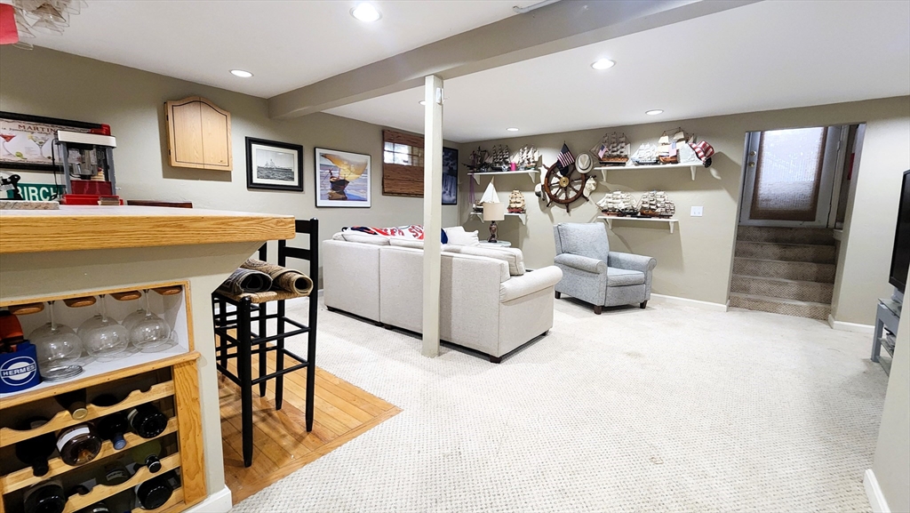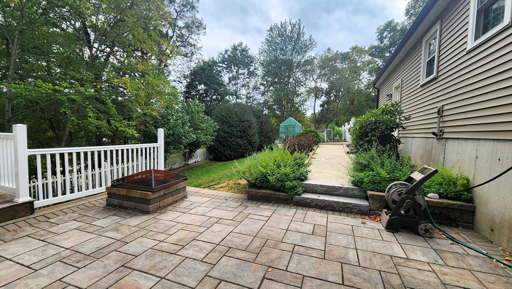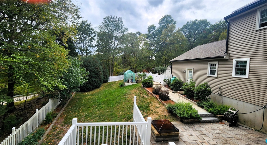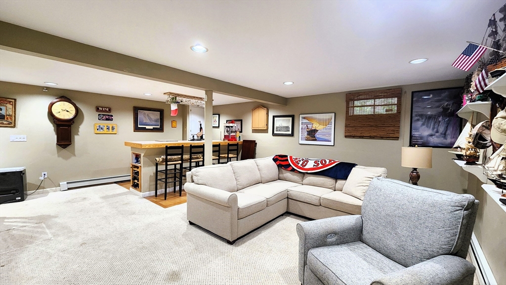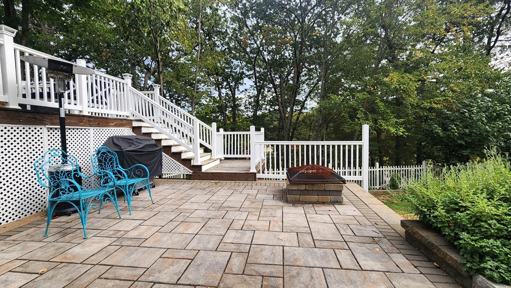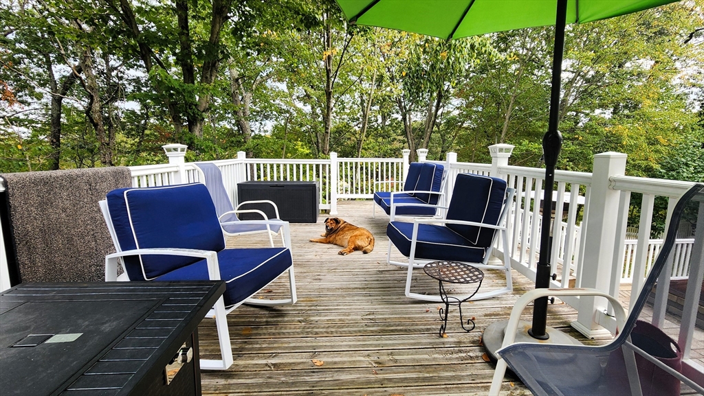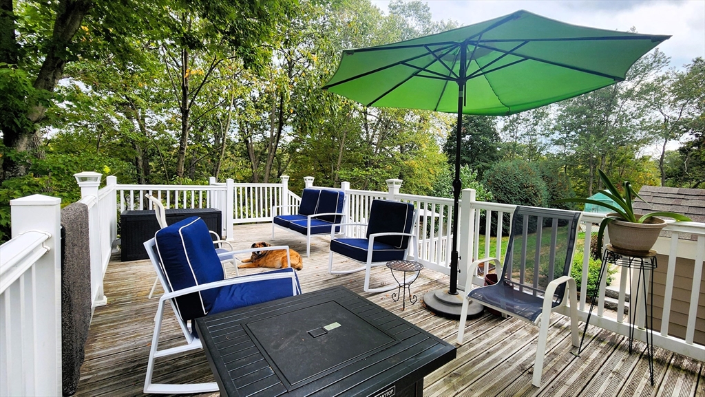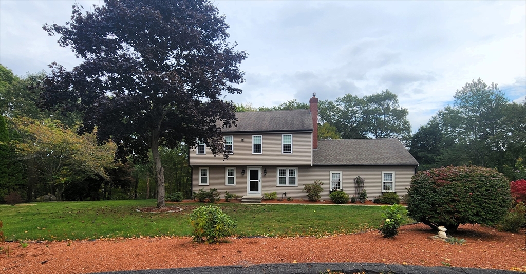 Beautifully updated 3BR Colonial on nearly an acre at end of cul-de-sac in Highland Estates! Shiplap wall on fireplace wall customizes the family room that flows into kitchen featuring rich cherry cabinets, granite counters & stainless appliances. Sunny DR with walk-out bay opens to kitchen, LR and has access to a huge deck, block patio & fenced yard—perfect for entertaining. Upstairs, the vaulted primary suite offers a walk-in closet and private bath, plus 2 more bedrooms and an updated main bath. Need more space? The finished walkout lower level with bar is ready for game nights, workouts, or weekend hangouts. Major updates: roof, windows, A/C, siding, boiler, oil tank, vanities, mini-split & more - all within the past 10 yrs. Solar panels keep electric bills low. Hardwoods in most rooms. Nicely landscaped. Move-in ready and minutes to parks, Hopedale Country Club & commuter routes—This is where lifestyle meets location!