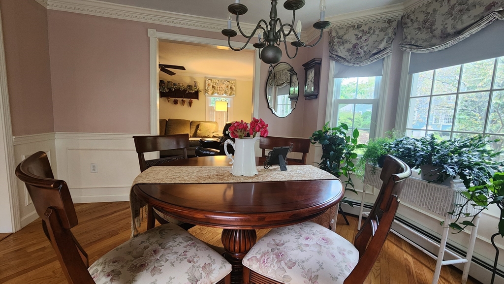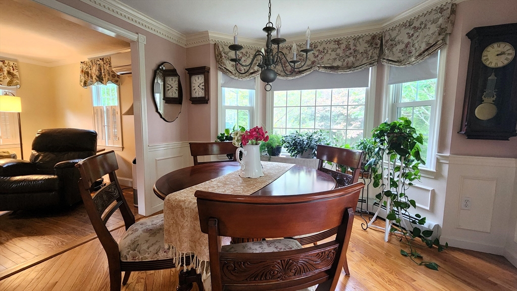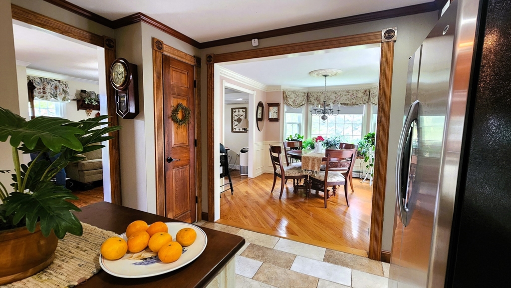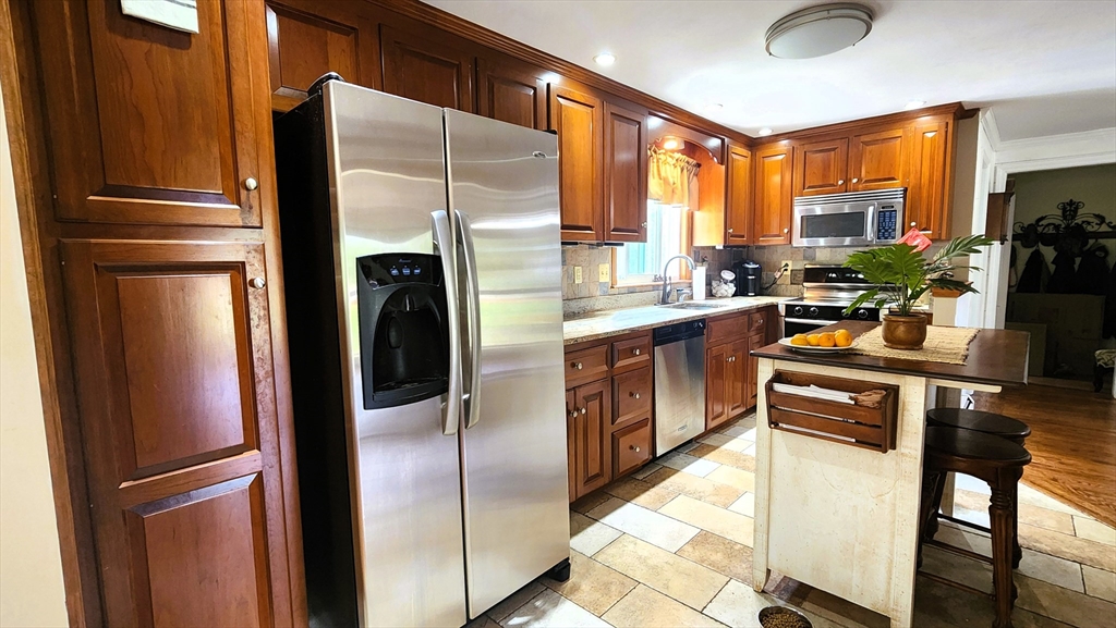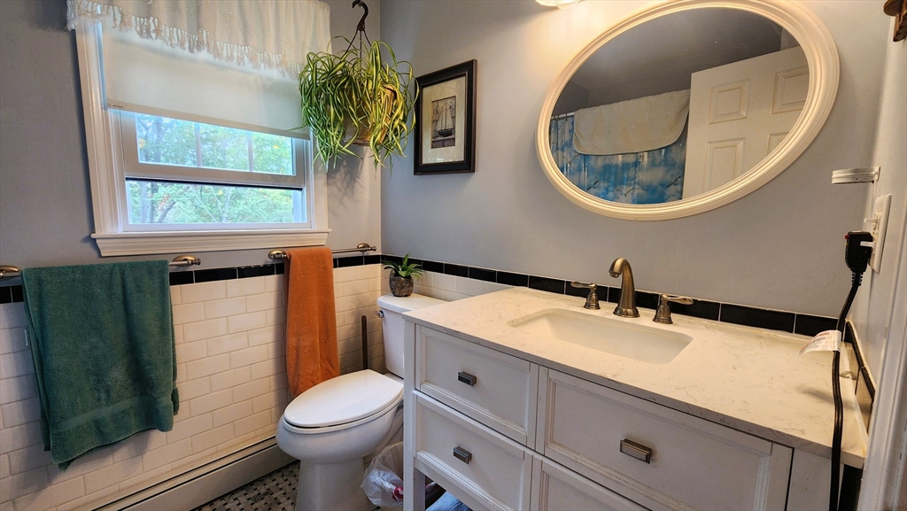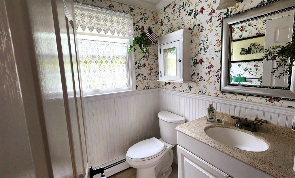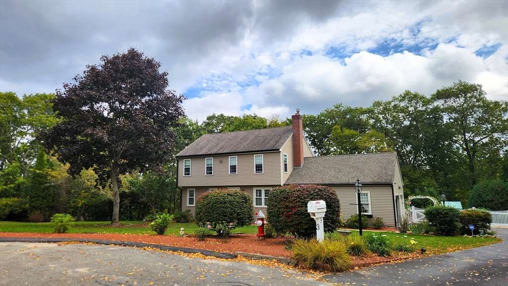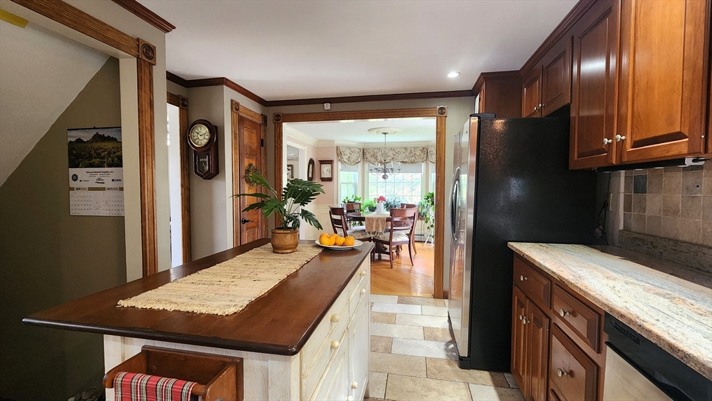 Beautifully updated 3BR Colonial on nearly an acre at end of cul-de-sac in Highland Estates! Shiplap wall on fireplace wall customizes the family room that flows into kitchen featuring rich cherry cabinets, granite counters & stainless appliances. Sunny DR with walk-out bay opens to kitchen, LR and has access to a huge deck, block patio & fenced yard—perfect for entertaining. Upstairs, the vaulted primary suite offers a walk-in closet and private bath, plus 2 more bedrooms and an updated main bath. Need more space? The finished walkout lower level with bar is ready for game nights, workouts, or weekend hangouts. Major updates: roof, windows, A/C, siding, boiler, oil tank, vanities, mini-split & more - all within the past 10 yrs. Solar panels keep electric bills low. Hardwoods in most rooms. Nicely landscaped. Move-in ready and minutes to parks, Hopedale Country Club & commuter routes—This is where lifestyle meets location!
