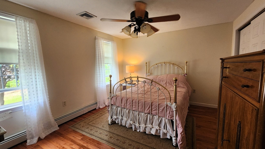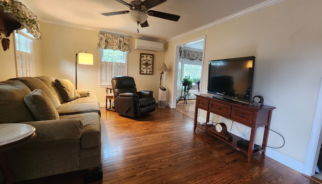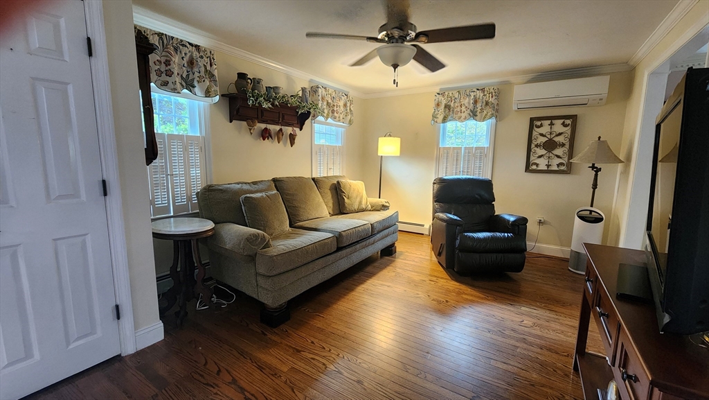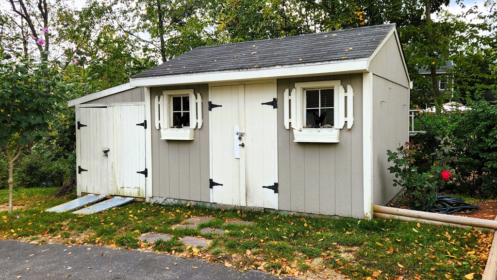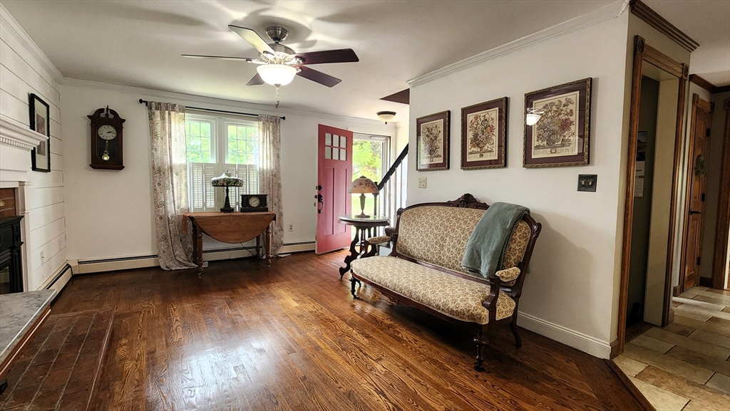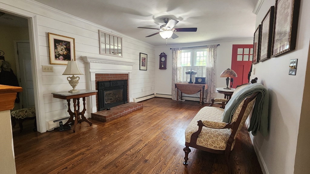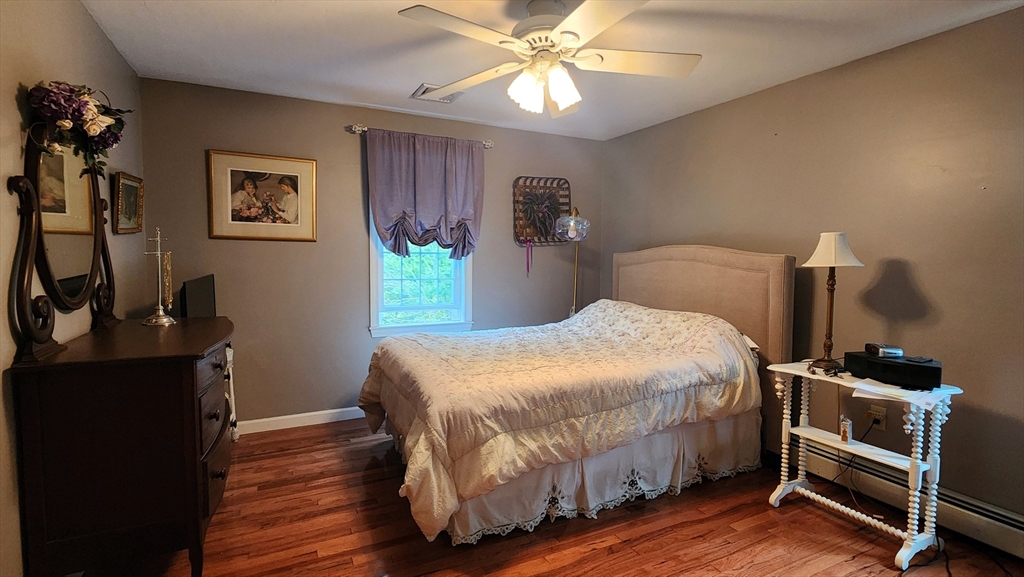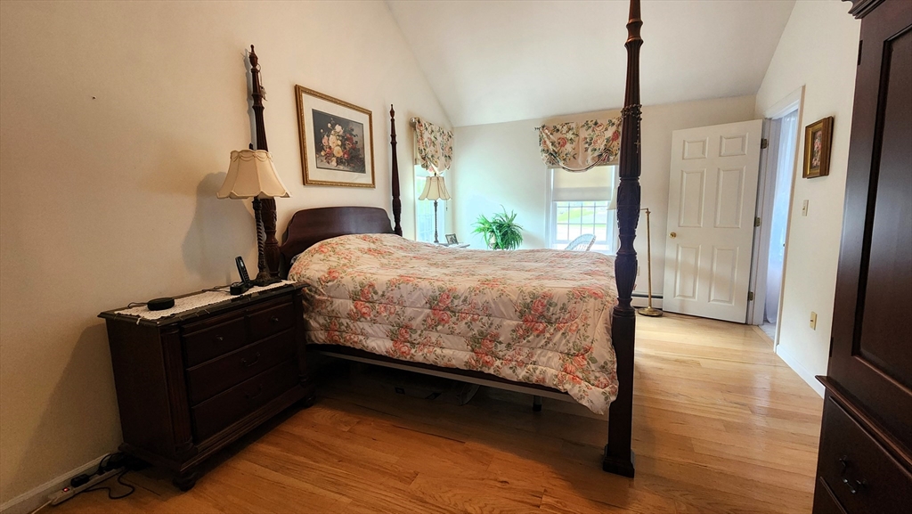Beautifully updated 3BR Colonial on nearly an acre at end of cul-de-sac in Highland Estates! Shiplap wall on fireplace wall customizes the family room that flows into kitchen featuring rich cherry cabinets, granite counters & stainless appliances. Sunny DR with walk-out bay opens to kitchen, LR and has access to a huge deck, block patio & fenced yard—perfect for entertaining. Upstairs, the vaulted primary suite offers a walk-in closet and private bath, plus 2 more bedrooms and an updated main bath. Need more space? The finished walkout lower level with bar is ready for game nights, workouts, or weekend hangouts. Major updates: roof, windows, A/C, siding, boiler, oil tank, vanities, mini-split & more - all within the past 10 yrs. Solar panels keep electric bills low. Hardwoods in most rooms. Nicely landscaped. Move-in ready and minutes to parks, Hopedale Country Club & commuter routes—This is where lifestyle meets location!