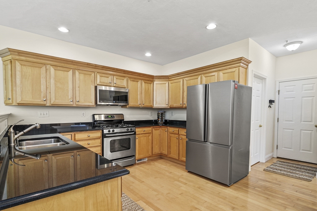 Impeccably maintained and truly move-in ready, this stylish 2-bedroom, 2.5-bath townhouse-style condo offers the perfect blend of comfort, functionality, and convenience. The main level welcomes you with a spacious living room featuring soaring vaulted ceilings, skylights that flood the space with natural light, and a sliding glass door leading to a private outdoor patio—ideal for relaxing or entertaining. The well-appointed kitchen boasts stainless steel appliances and an adjacent dining area, while a convenient half bath and direct access to the attached one-car garage enhance everyday living. Upstairs, a sunlit lofted family room overlooks the main living area, creating an airy, open feel. The second level also includes a full hallway bath and two generously sized bedrooms, including a vaulted-ceiling primary suite complete with a walk-in closet and private en-suite bath. Second-floor laundry offers added practicality. Located just minutes from charming downtown Clinton! A must see!