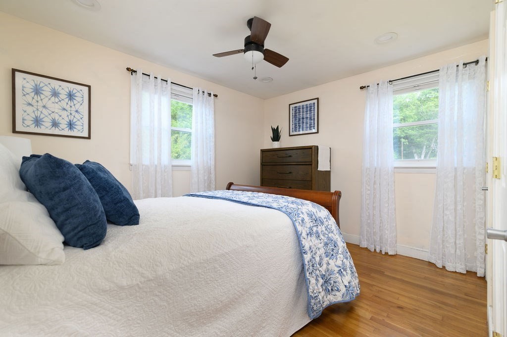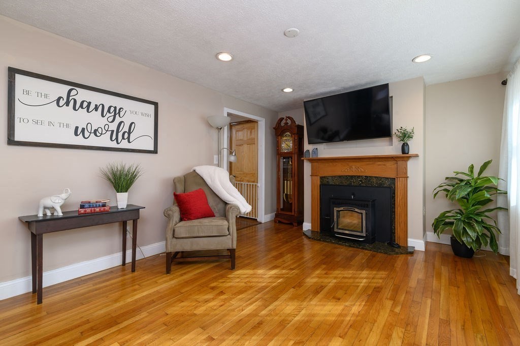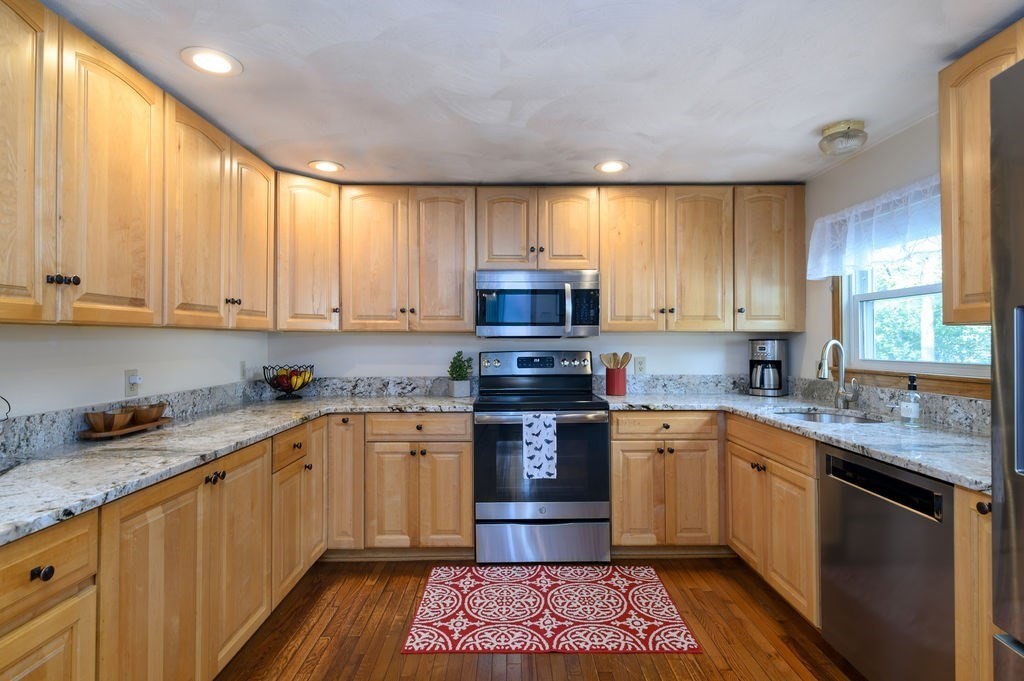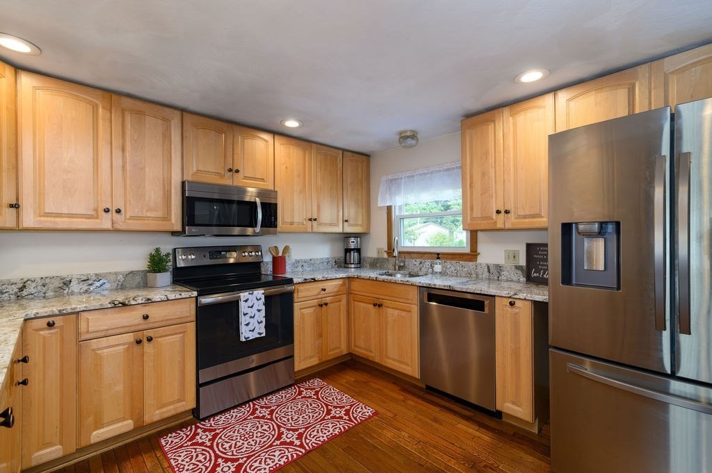 Welcome to this charming ranch home that blissfully blends comfort, efficiency & modern updates. Step inside to find warm wood flooring & not one, but two pellet stoves to keep you cozy during the colder weather. The updated kitchen features sleek granite countertops, stainless steel appliances & plenty of space for cooking. The full basement provides an abundance of storage, along with a workshop area & convenient 1/4 bath—perfect for hobbies or projects. Outside, enjoy a low-maintenance Trex deck, patio & a one-car garage for added convenience. With solar panels, a generator hook-up & efficient systems already in place, this home is ready for whatever the seasons bring. Beautiful neighborhood location with easy access to Rt 3, Derby Street Shoppes, South Shore Hospital & much more! Showings begin at the open house 9/27 from 11:00 - 1:00...Come fall in love & start making blissful memories!