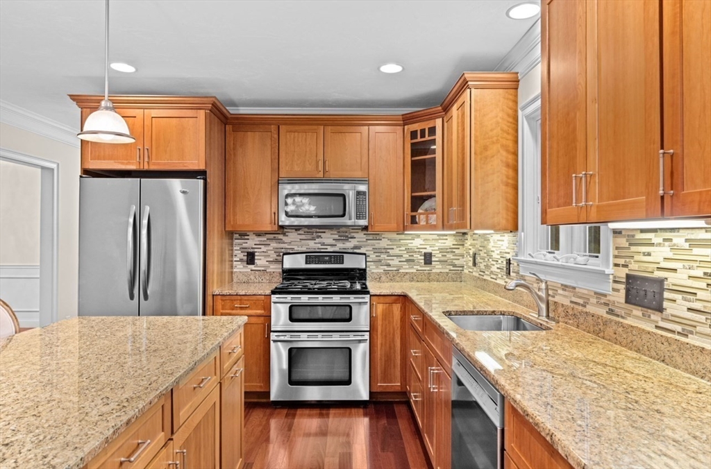Just a short distance from Humarock Beach and a stroll to local restaurants, shops and all the best coastal living has to offer. This move-in-ready home offers the perfect blend of charm, convenience and comfort. A welcoming porch invites you inside to an open floor plan filled with natural light. The upgraded kitchen boasts stainless steel appliances, granite countertops, and a seamless flow to the living and dining areas - Ideal for everyday living or entertaining guests. Hardwood floors run throughout, adding warmth and elegance to every room. Enjoy outdoor living in the large backyard, perfect for summer barbecues, family gatherings or a game of catch. The finished walk-out basement features sliders that lead to a private patio lending additional space for relaxing or entertaining. Nature lovers will appreciate the peaceful setting with conservation land directly across the street. Don't miss your chance to own this seaside gem - move in today and play tomorrow!