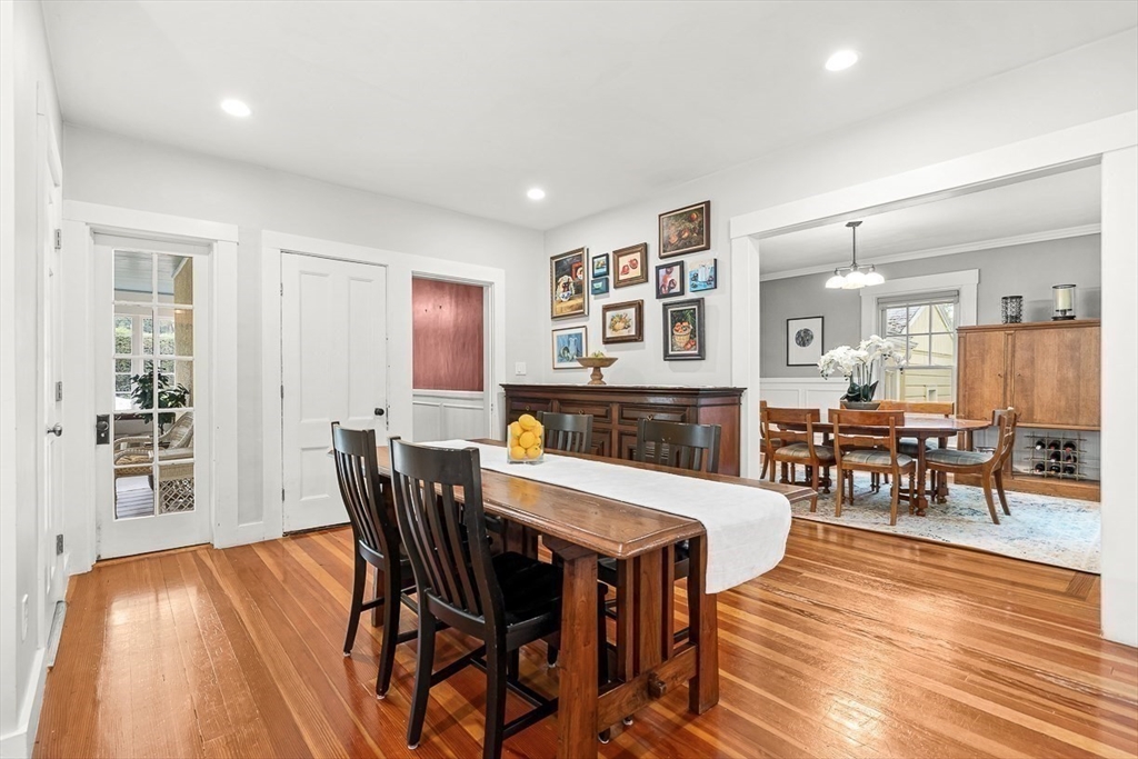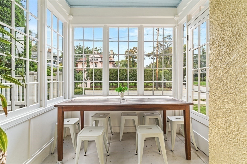 This charming colonial in prime flats location is full of surprises! Showcasing a stunning rear 3 story addition duplex with walls of windows & 4 rooms! Use as the primary, home office, art studio or let your children enjoy this unique space~ The first floor offers a classic layout with an expanded updated kitchen & family area open to gorgeous deck overlooking the beacon hill style yard featuring a quaint patio/ entertaining space. Formal living & dining w three-season porch perfect for relaxing. Upstairs, the primary suite feels like a retreat with skylights, cathedral ceiling, loft, and private balcony. Three bedrooms and a study on 2 share a bath, with flexible space on the third floor featuring a loft and two rooms. Outside, the deck and patio create a private oasis with tranquil views. 2 separate garages. Conveniently located in the Flats location near Wedgemere Station and Winchester’s vibrant downtown, this home delivers space, character & Ambrose elementary just up the hill!