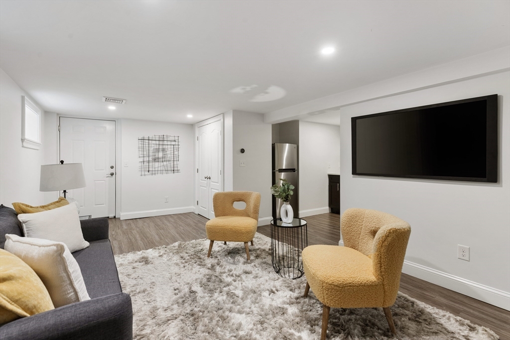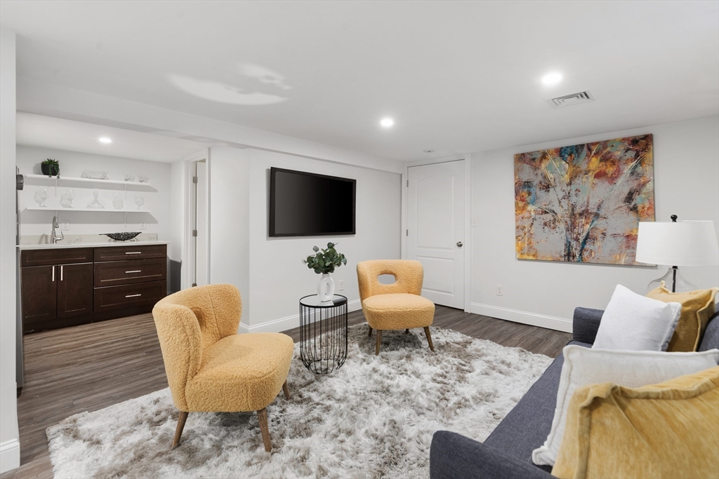 Welcome to this beautiful 2 Bed 2 Bath home which was totally Gut Renovated in 2016 & located on a quiet tree lined street close to parks, schools, public transportation, and shopping. On the first level, walk into an open concept floor plan with tons of natural sunlight and beautiful hardwood floors. The modern kitchen showcases quartz countertops, stainless steel appliances, vent out hood, floor to ceiling pantry and tons of cabinetry/ counter space. There is a formal dining area which opens to the living room w/ a gas fireplace and built in shelving. Two bedrooms with spacious closets and a full bathroom with a heated floor and a good sized laundry room with ample storage, complete the first level. The lower level has a great family/rec room with a wet bar and a full bathroom with direct access to the 1 car garage. Other highlights include: mahogany decks, exclusive yard and patio, Lutron recessed lights w/ wifi, nest thermostats, repaved driveway and backyard regrading.
