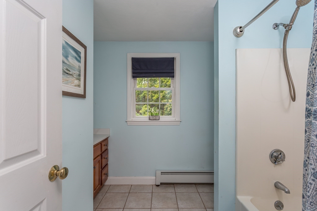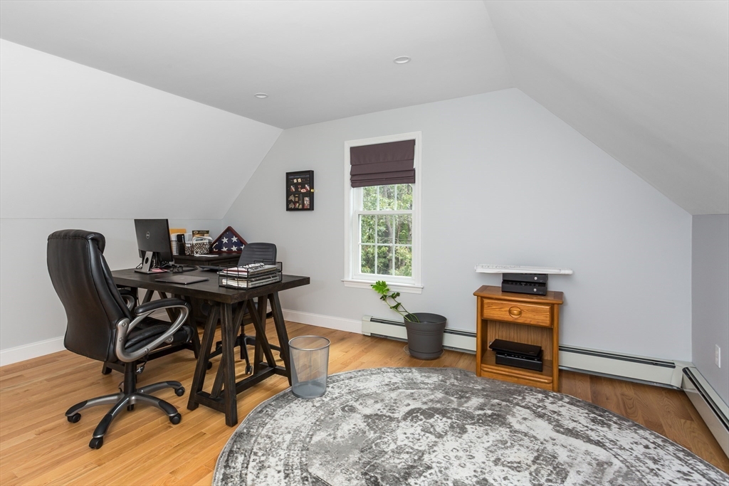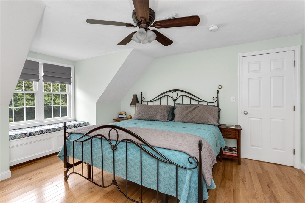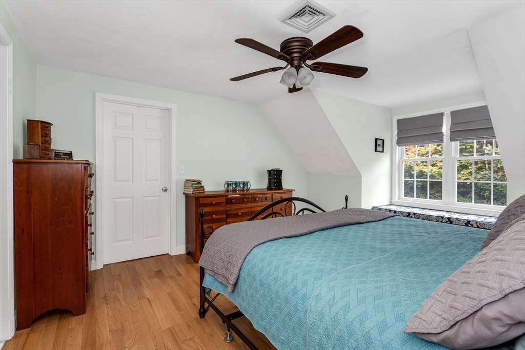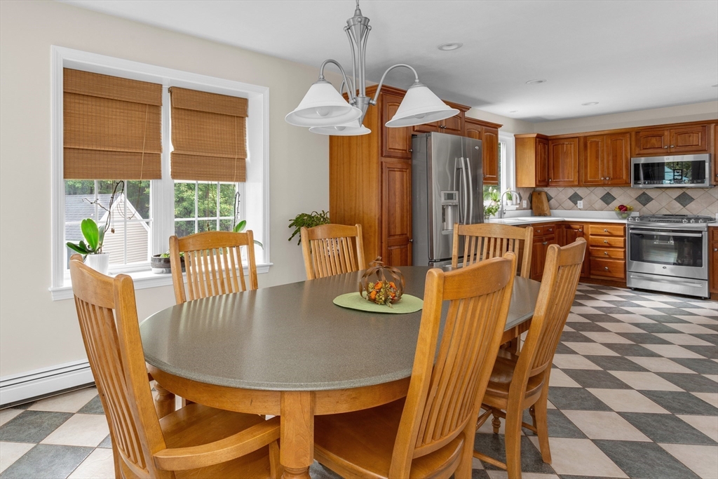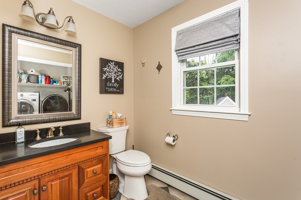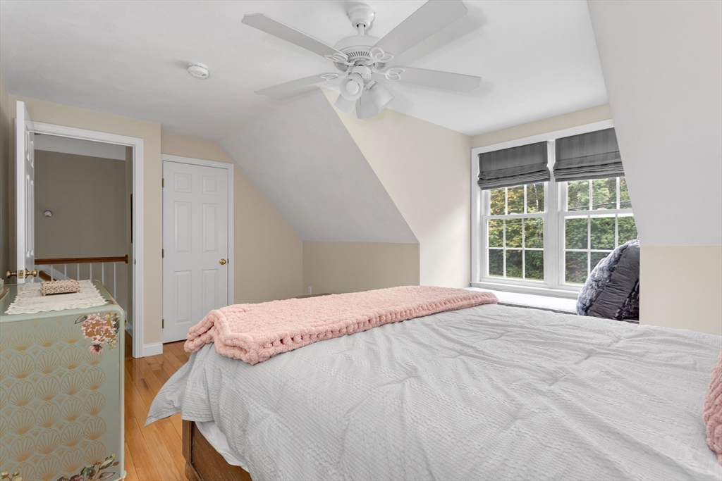 Looking for refined living in a desirable neighborhood? This 4 bedroom 3.5 bath Cape has an expansive eat-in kitchen with upgraded cherry cabinets, tiled floors, quartz counters and stainless steel appliances. It opens to a full sized dining room for maximum entertainment space and a mahogany deck for outdoor events. The open concept floor plan offers many possibilities for gatherings including a fireplaced living room to watch your favorite program or enjoy a cozy fire on a winter night. The family room, with built-in bookcases and cabinets, offers a quiet cozy area to talk quietly and relax in. Modern efficiencies with first floor laundry, new central a/c, energy efficient FHW Gas heating, Town water/sewer make for an easy to care for and comfortable home. The finished basement adds additional space for music, games, puzzles and projects. It includes a bedroom, full bathroom, a wet bar and walk-out to the backyard. Property abuts conservation land - privacy - quiet enjoyment.