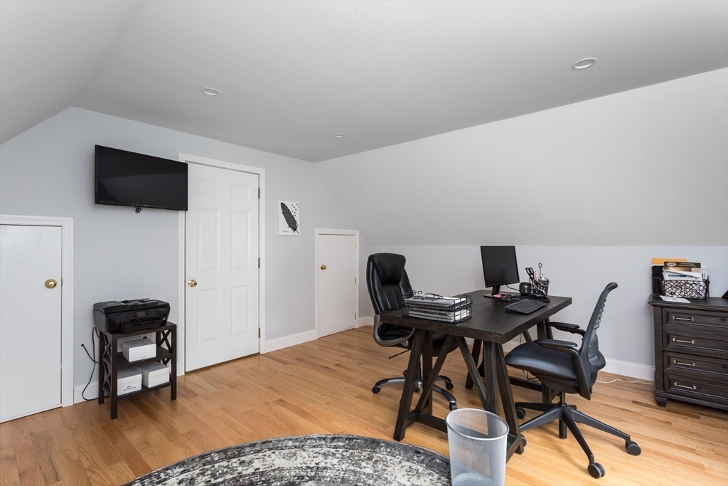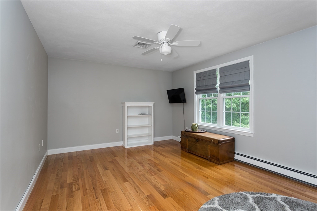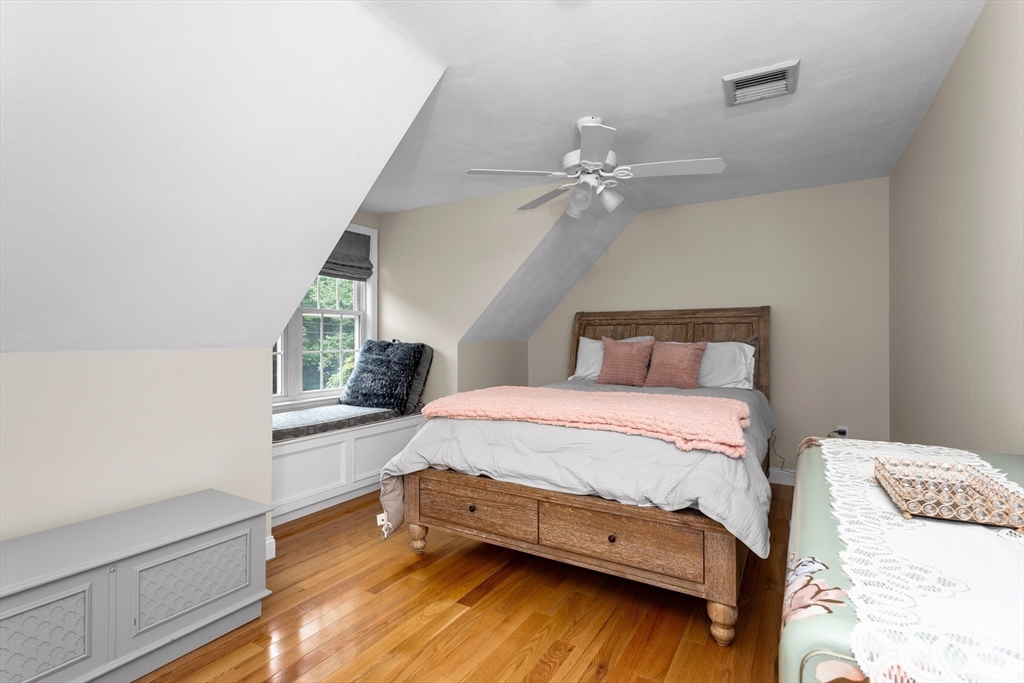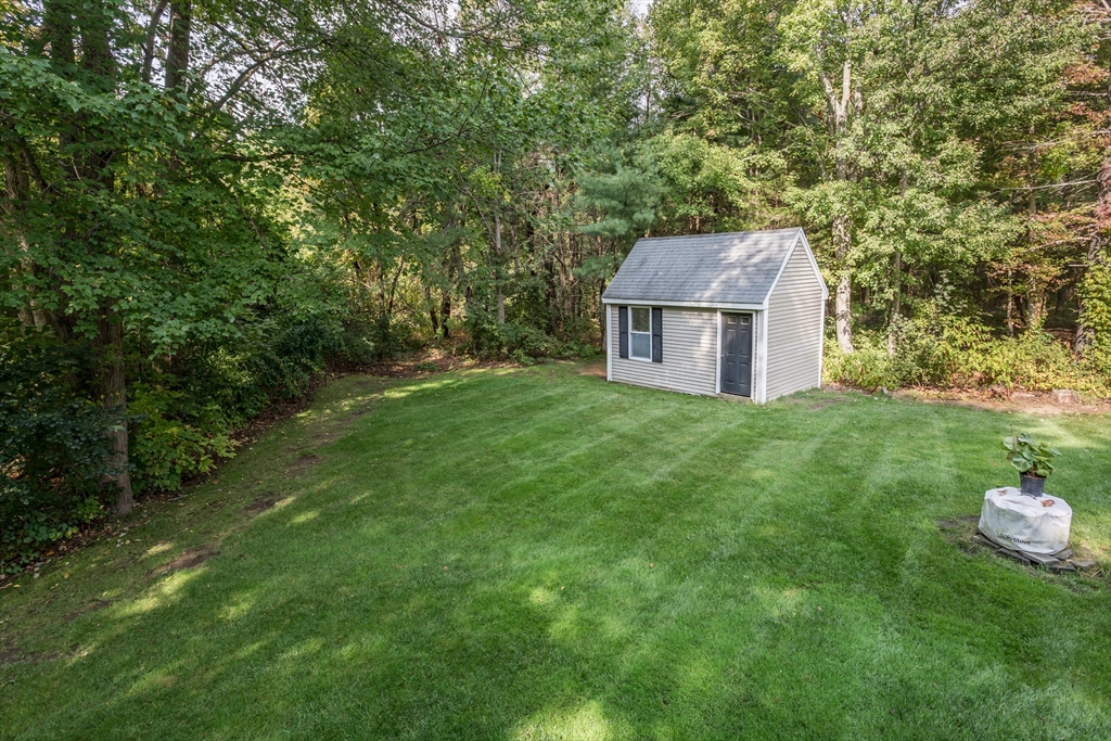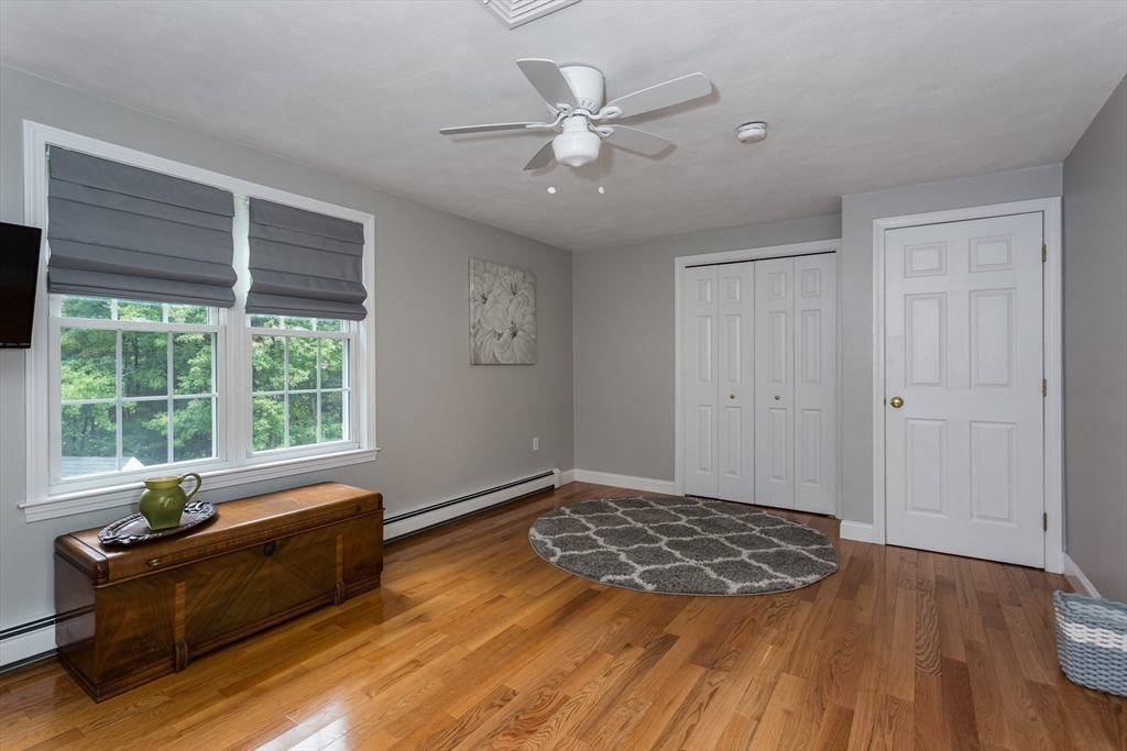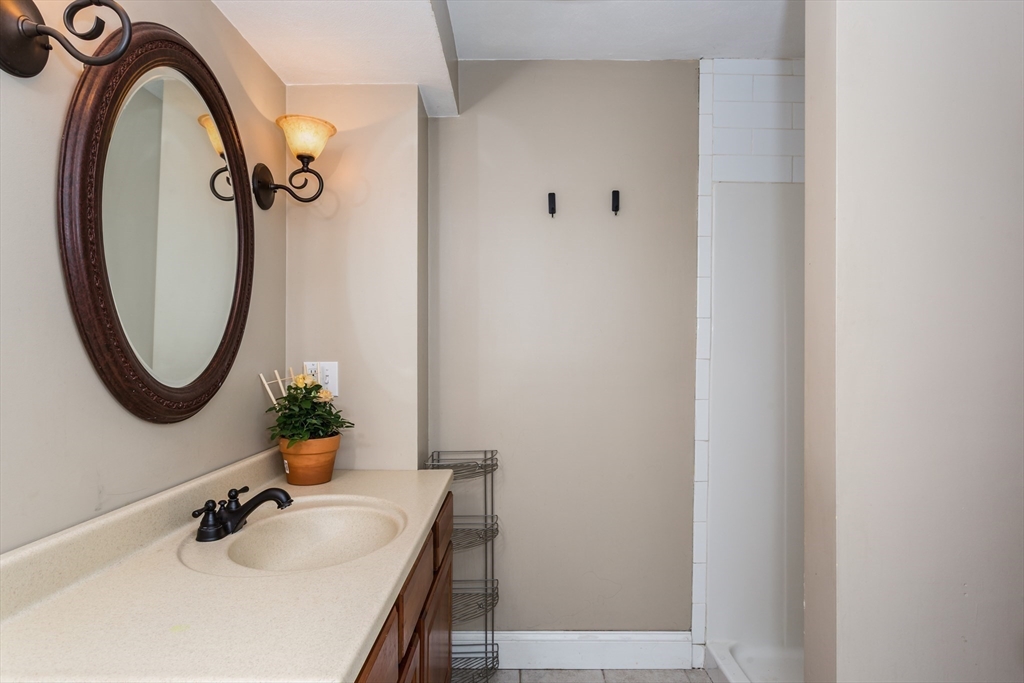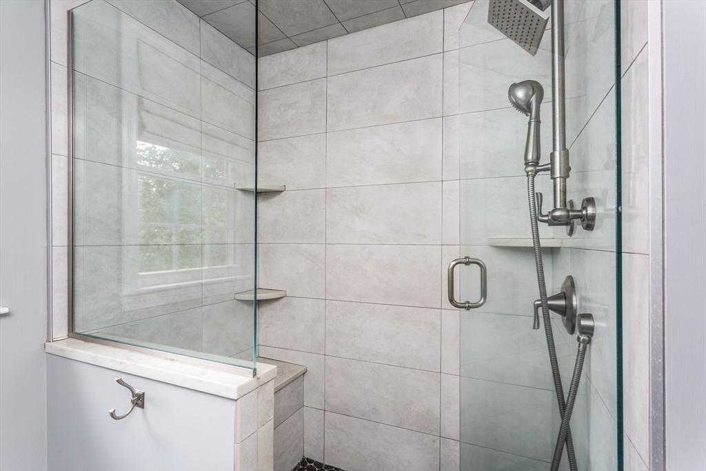 Looking for refined living in a desirable neighborhood? This 4 bedroom 3.5 bath Cape has an expansive eat-in kitchen with upgraded cherry cabinets, tiled floors, quartz counters and stainless steel appliances. It opens to a full sized dining room for maximum entertainment space and a mahogany deck for outdoor events. The open concept floor plan offers many possibilities for gatherings including a fireplaced living room to watch your favorite program or enjoy a cozy fire on a winter night. The family room, with built-in bookcases and cabinets, offers a quiet cozy area to talk quietly and relax in. Modern efficiencies with first floor laundry, new central a/c, energy efficient FHW Gas heating, Town water/sewer make for an easy to care for and comfortable home. The finished basement adds additional space for music, games, puzzles and projects. It includes a bedroom, full bathroom, a wet bar and walk-out to the backyard. Property abuts conservation land - privacy - quiet enjoyment.