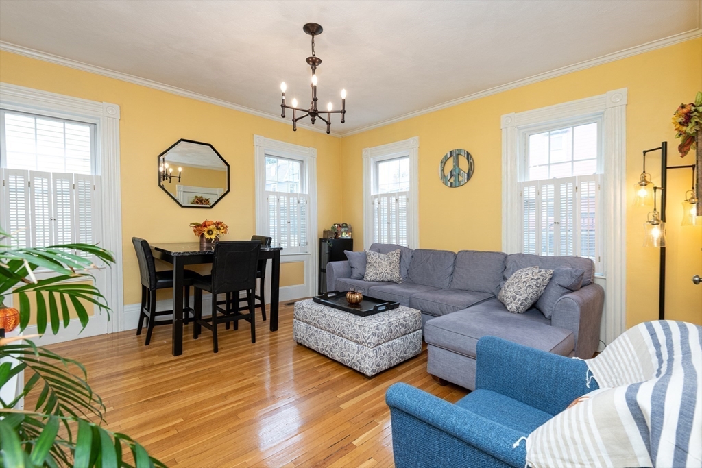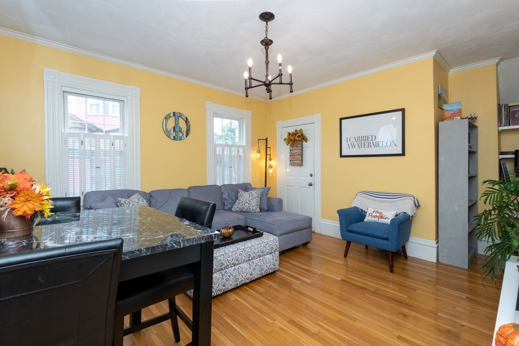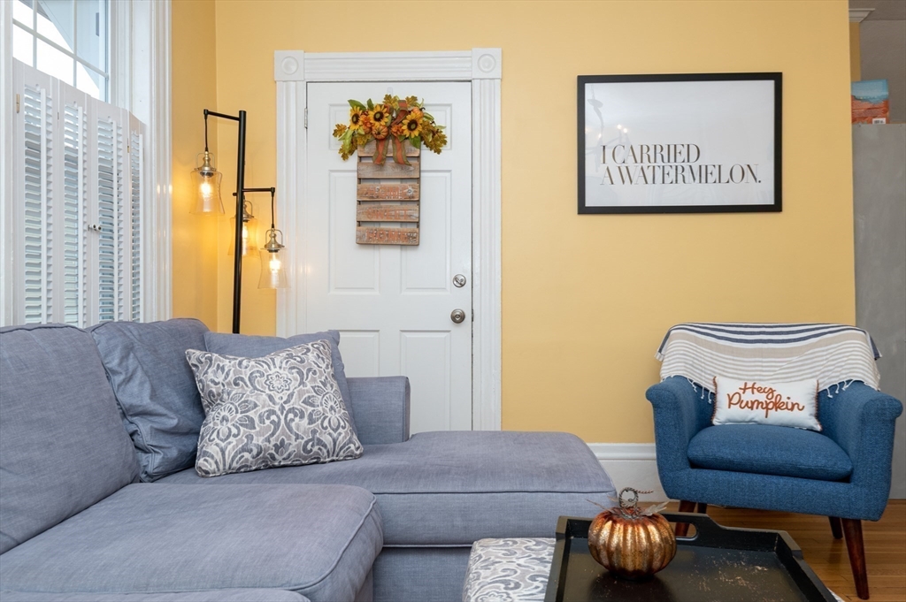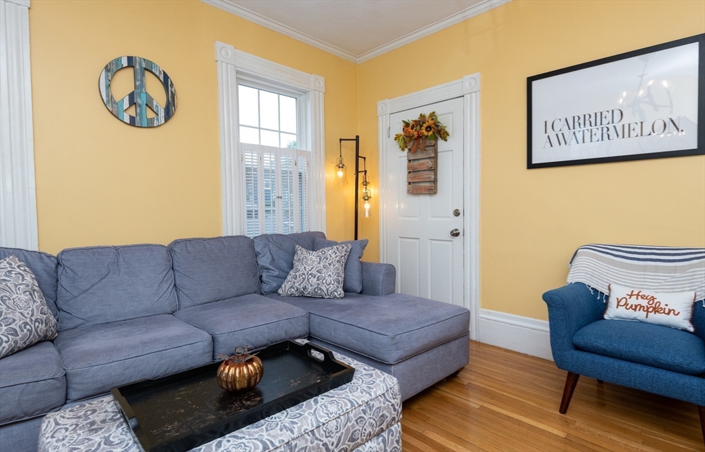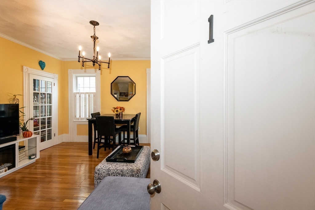 Incredible opportunity to own this gorgeous 2 bedroom condo in Historic Salem. Sun-filled living room with hardwood floors, built-ins and chandelier. Updated eat-in kitchen with quartz countertops and tons of charm. Spacious master bedroom with plenty of windows, hardwood floors and full closet. Cozy second bedroom offers hardwood floors and privacy. Large backyard common space perfect for entertaining and relaxation. 2 off-street deeded parking spaces, 1 shared guest space and shared storage shed. Basement storage unit. Each unit has it's own washer and dryer located in the common area basement. All this and only .3 miles from the Salem train station and downtown area. Low condo fees. First showing at OH Sat 9/27 1:00-2:30 and Sun 9/28 11:00-12:30. Some parking behind unit for OH guests.