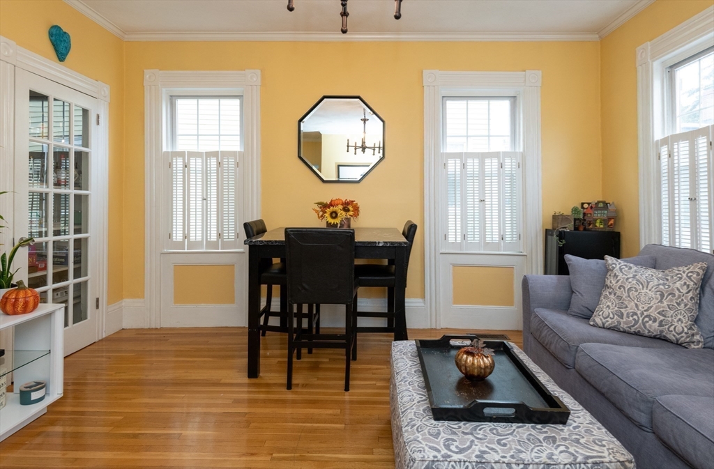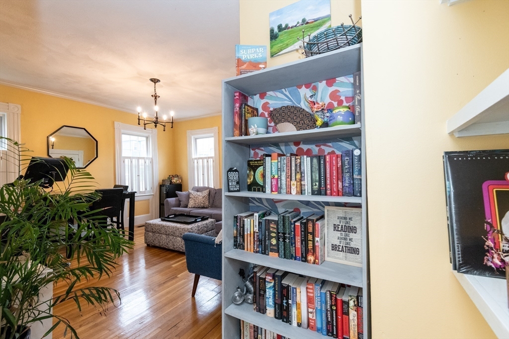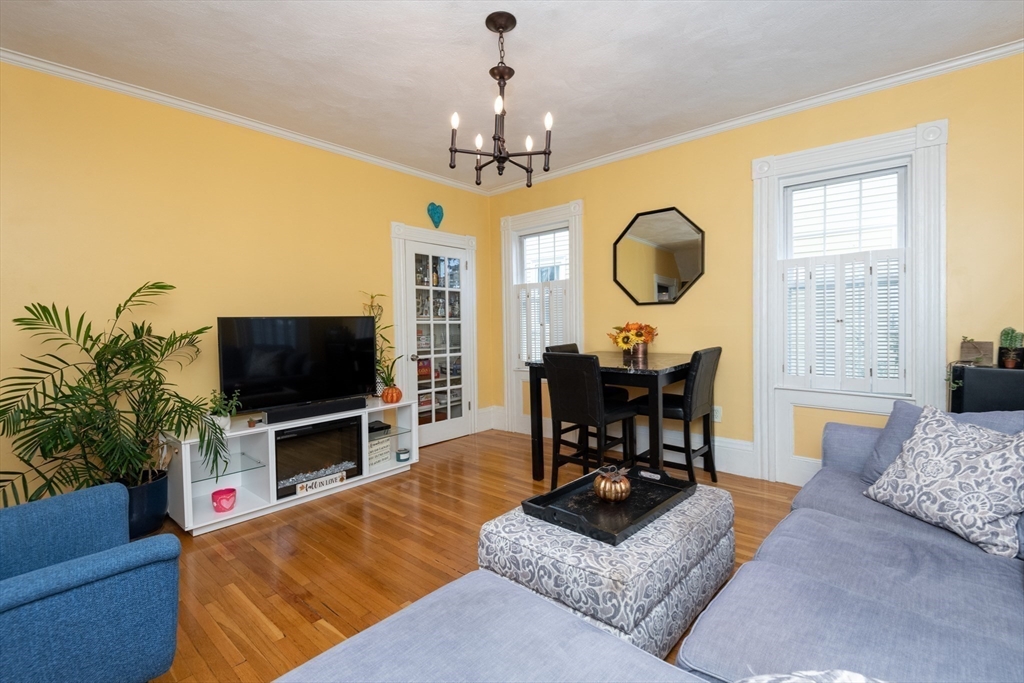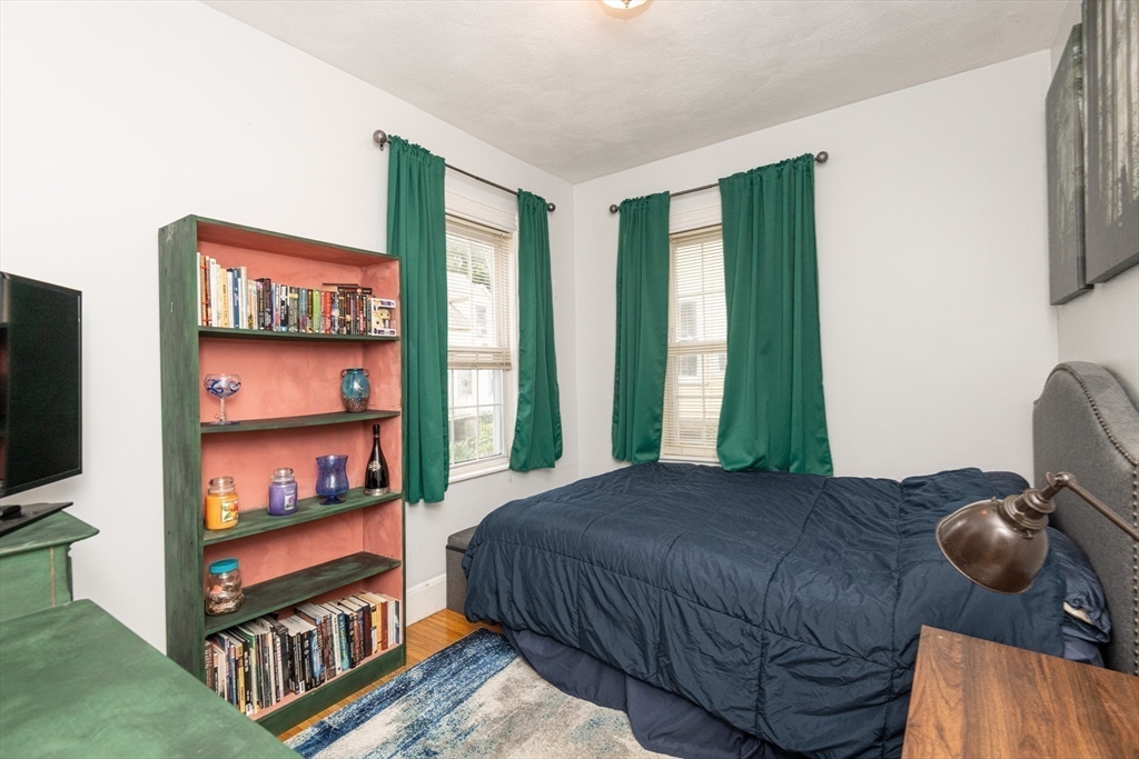 Incredible opportunity to own this gorgeous 2 bedroom condo in Historic Salem. Sun-filled living room with hardwood floors, built-ins and chandelier. Updated eat-in kitchen with quartz countertops and tons of charm. Spacious master bedroom with plenty of windows, hardwood floors and full closet. Cozy second bedroom offers hardwood floors and privacy. Large backyard common space perfect for entertaining and relaxation. 2 off-street deeded parking spaces, 1 shared guest space and shared storage shed. Basement storage unit. Each unit has it's own washer and dryer located in the common area basement. All this and only .3 miles from the Salem train station and downtown area. Low condo fees. First showing at OH Sat 9/27 1:00-2:30 and Sun 9/28 11:00-12:30. Some parking behind unit for OH guests.