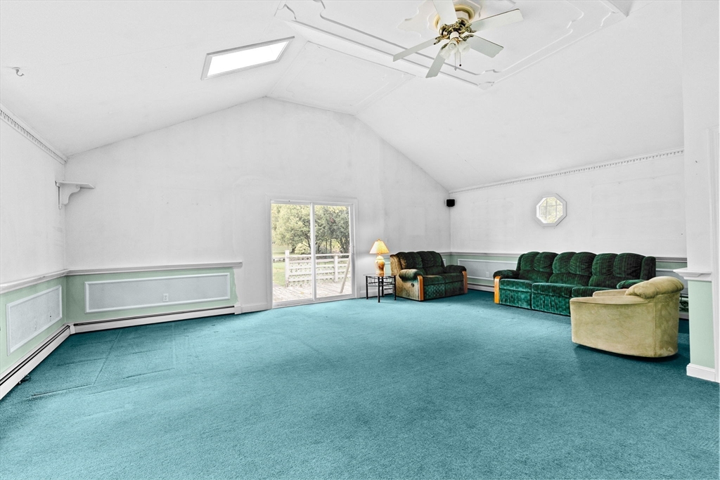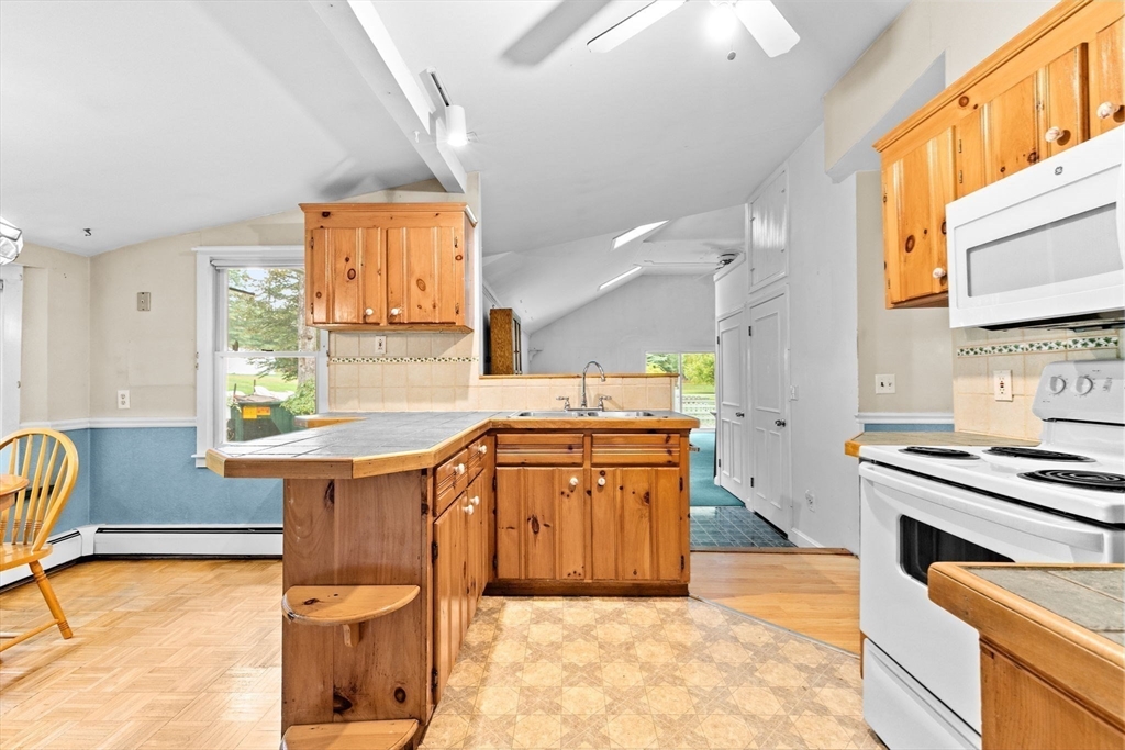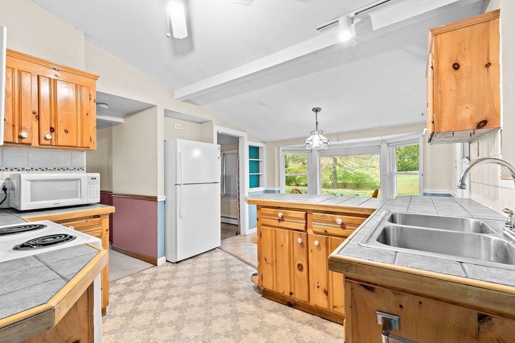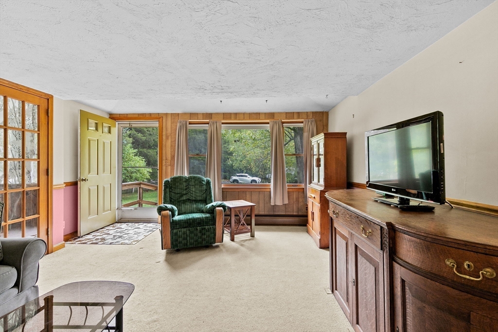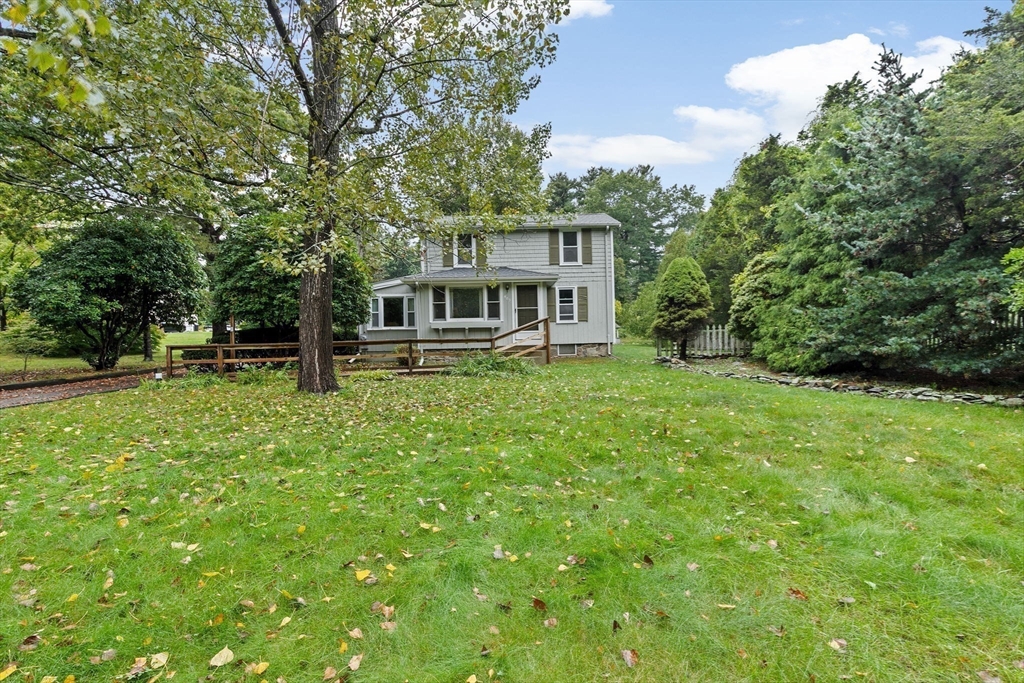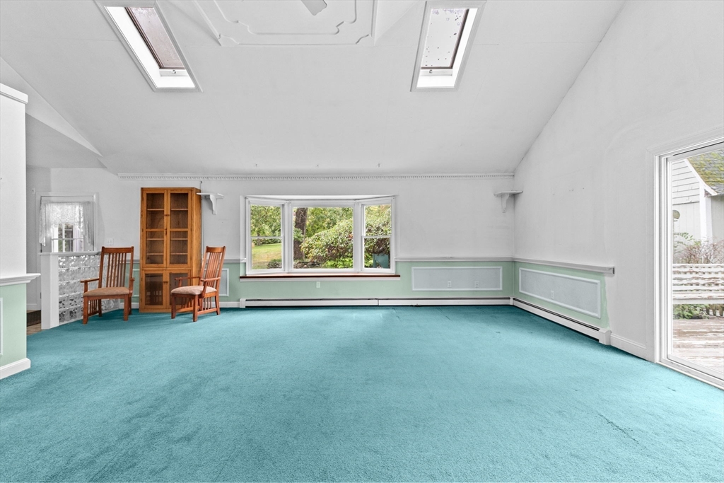 Welcome to this nearly 2,000 sq ft home nestled on over an acre of land. Bursting with potential, this property is ready for its new owners to make it their own. The spacious family room is ideal for gatherings, featuring vaulted ceilings with skylights, a charming bay window that fills the room with natural light, and a sliding door that opens to a generous deck and expansive backyard. Just off the family room, you'll find the eat-in kitchen—perfect for casual dining. Adjacent to the kitchen is a bright and cozy sunroom, the perfect spot to enjoy your morning coffee or unwind with a good book. A comfortable living room adds to the home’s inviting layout, while the den offers a great space for a home office or study. A convenient first-floor bedroom is located just across from one of the two full bathrooms, offering flexible living options. Upstairs, you'll find two additional bedrooms providing plenty of space for family or guests. Convenient location close to Shops,Restaurants & Golf