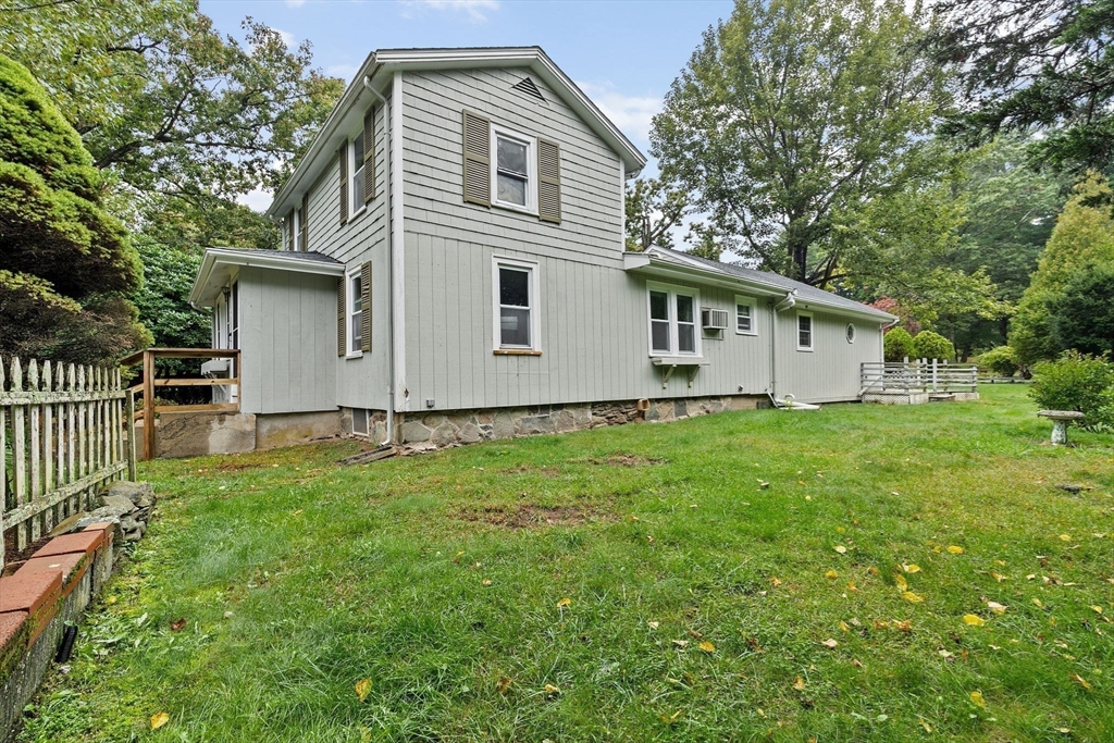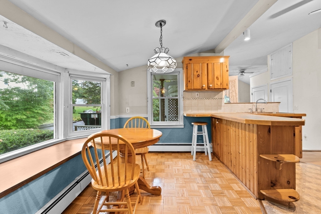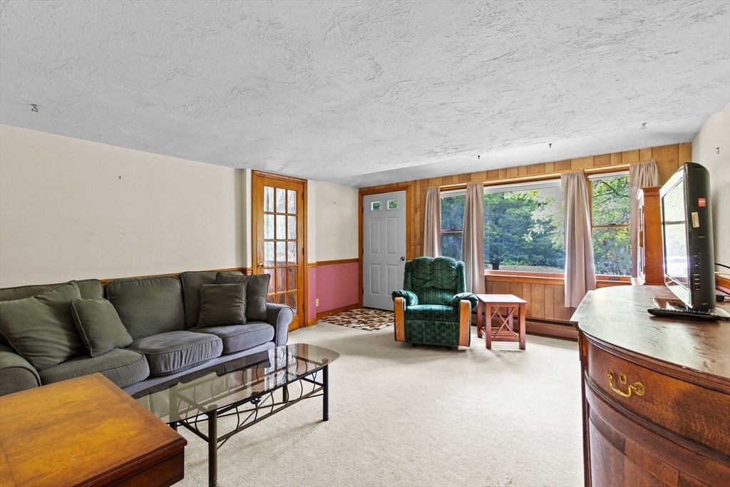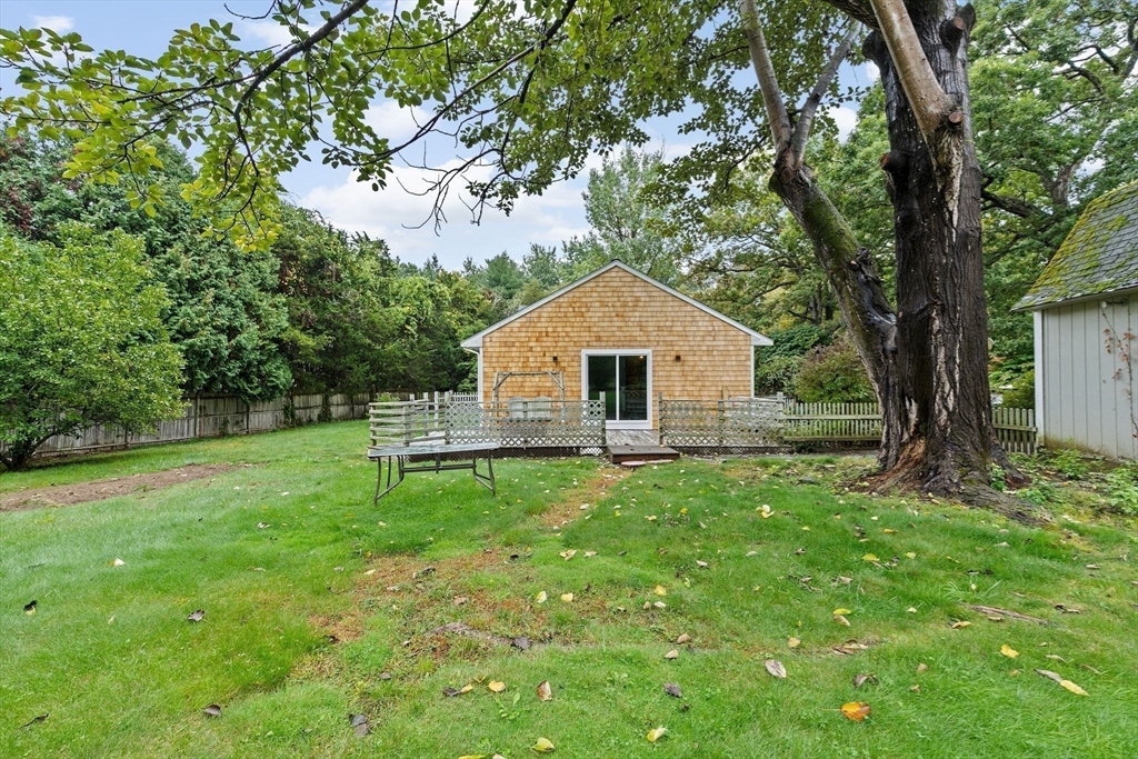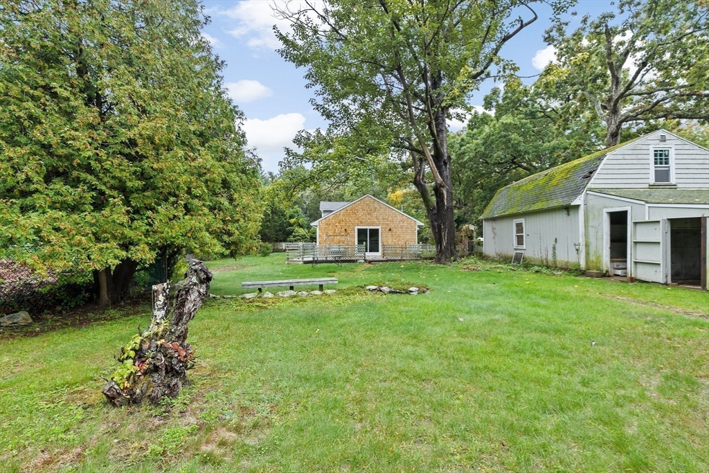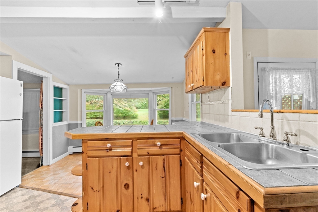 Welcome to this nearly 2,000 sq ft home nestled on over an acre of land. Bursting with potential, this property is ready for its new owners to make it their own. The spacious family room is ideal for gatherings, featuring vaulted ceilings with skylights, a charming bay window that fills the room with natural light, and a sliding door that opens to a generous deck and expansive backyard. Just off the family room, you'll find the eat-in kitchen—perfect for casual dining. Adjacent to the kitchen is a bright and cozy sunroom, the perfect spot to enjoy your morning coffee or unwind with a good book. A comfortable living room adds to the home’s inviting layout, while the den offers a great space for a home office or study. A convenient first-floor bedroom is located just across from one of the two full bathrooms, offering flexible living options. Upstairs, you'll find two additional bedrooms providing plenty of space for family or guests. Convenient location close to Shops,Restaurants & Golf
