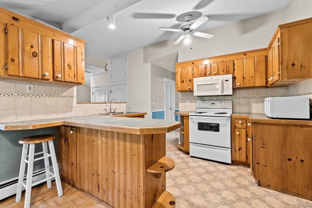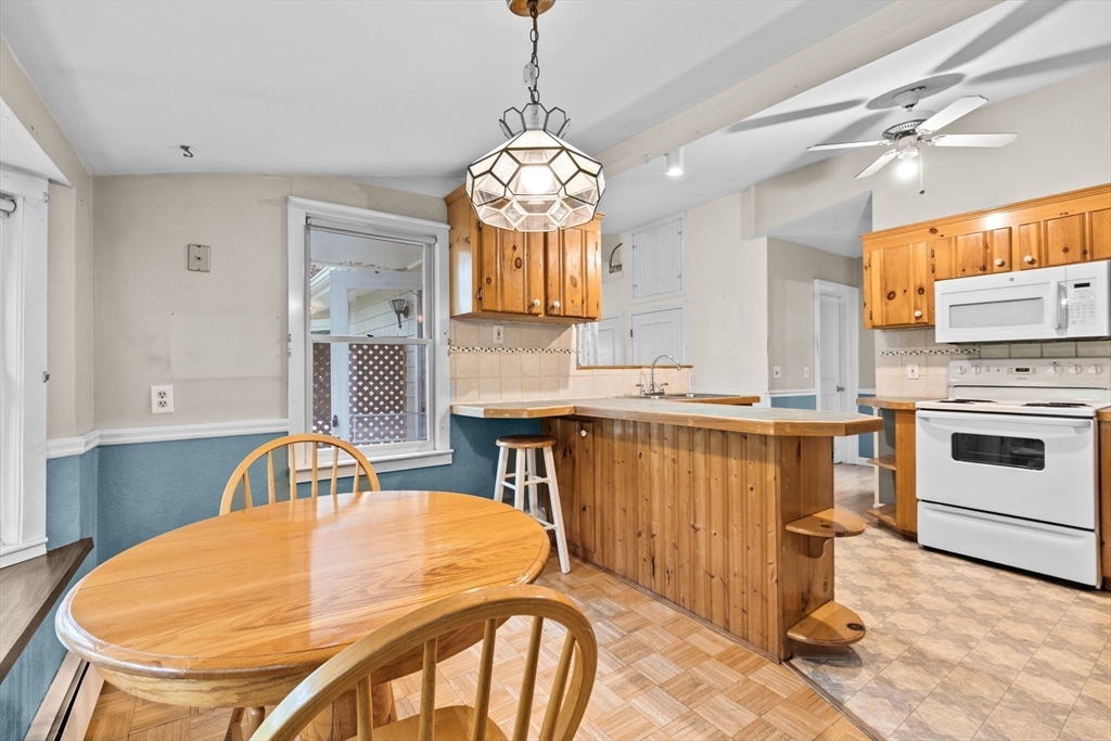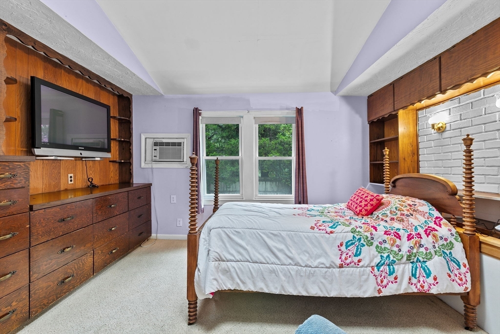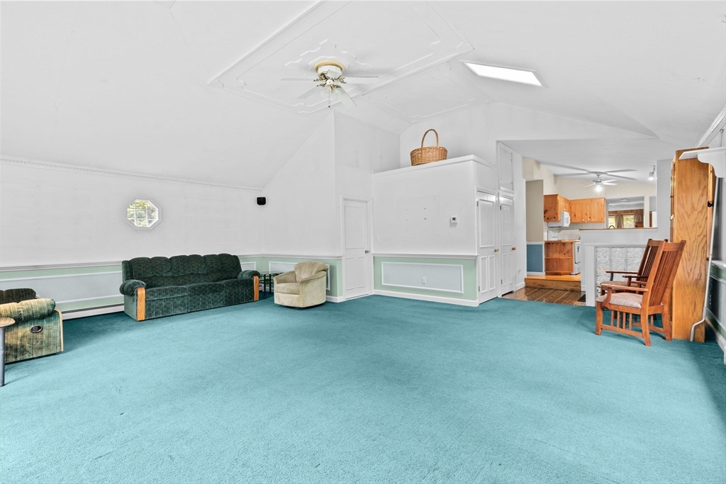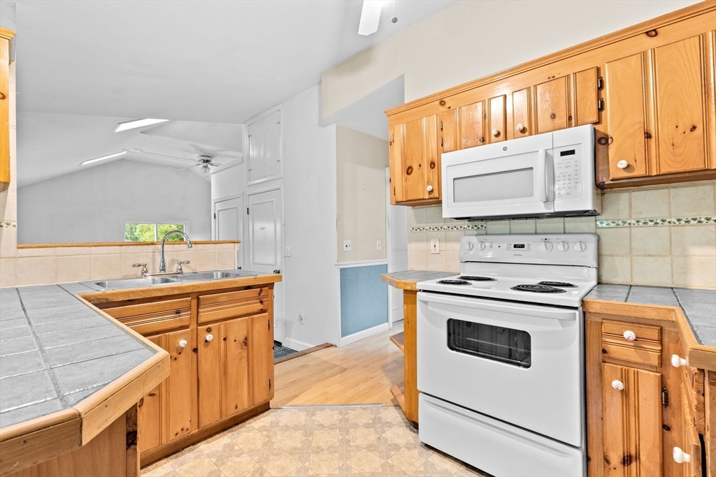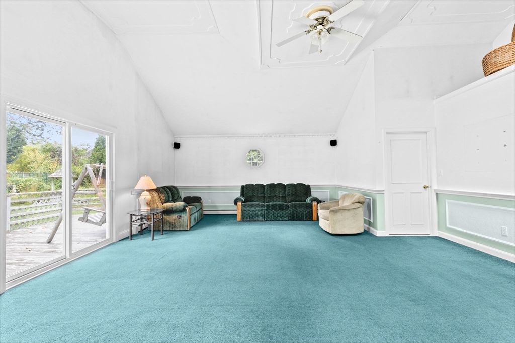 Welcome to this nearly 2,000 sq ft home nestled on over an acre of land. Bursting with potential, this property is ready for its new owners to make it their own. The spacious family room is ideal for gatherings, featuring vaulted ceilings with skylights, a charming bay window that fills the room with natural light, and a sliding door that opens to a generous deck and expansive backyard. Just off the family room, you'll find the eat-in kitchen—perfect for casual dining. Adjacent to the kitchen is a bright and cozy sunroom, the perfect spot to enjoy your morning coffee or unwind with a good book. A comfortable living room adds to the home’s inviting layout, while the den offers a great space for a home office or study. A convenient first-floor bedroom is located just across from one of the two full bathrooms, offering flexible living options. Upstairs, you'll find two additional bedrooms providing plenty of space for family or guests. Convenient location close to Shops,Restaurants & Golf
