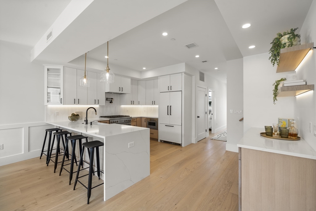 The crown jewel of 136 W 8th Street, this brand-new penthouse duplex offers 4 bedrooms plus an office, 3 baths, almost 2,000 sq feet, and two private balconies. Designed for both everyday living and entertaining, the home showcases soaring ceilings, wide-plank white oak floors, and oversized windows, that flood the space with natural light. The chef’s kitchen boasts quartz counters, a spacious island, and custom cabinetry, opening to expansive dining and living areas. The private primary suite features a walk-in closet and spa-inspired bath, while three additional bedrooms and a flexible office/den provide space for guests, work, or media. With in-unit laundry hook ups, central air, two garage parking spaces, and premium finishes throughout, this penthouse is as functional as it is beautiful. Just blocks to Broadway, Seaport, and South Boston’s shops, dining, and beaches—this home offers the best of city living with a warm, welcoming touch.