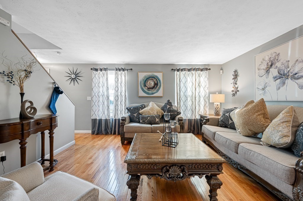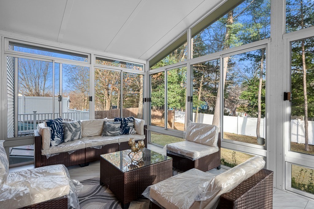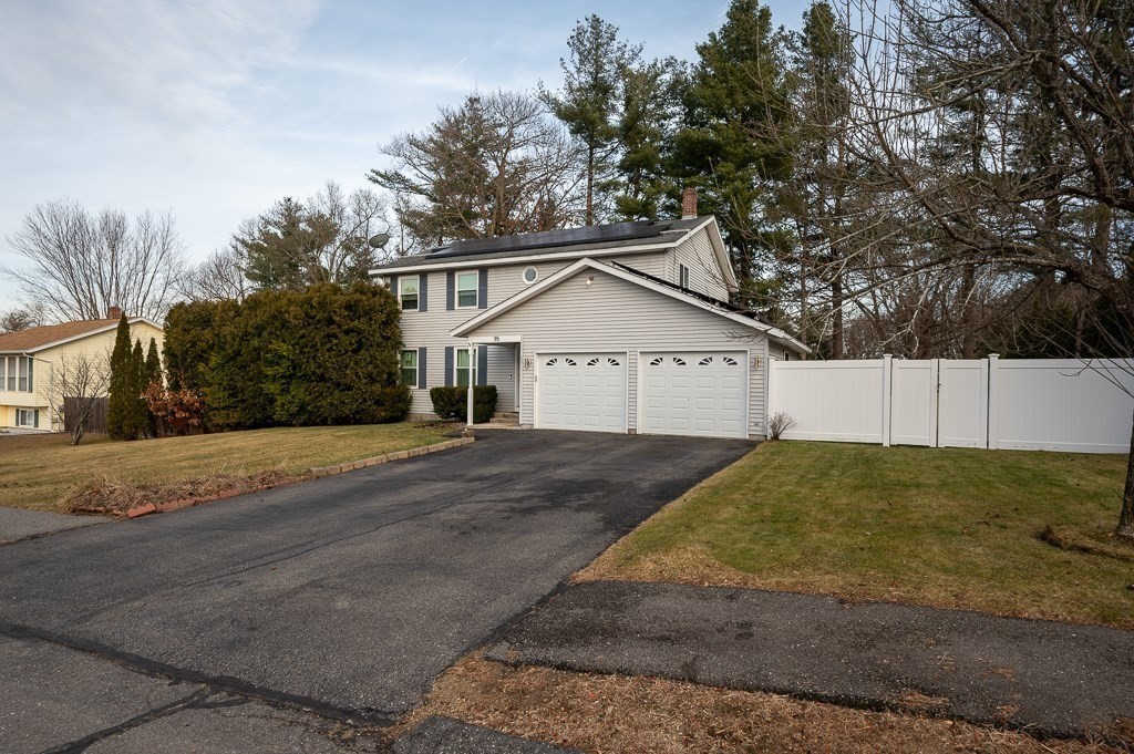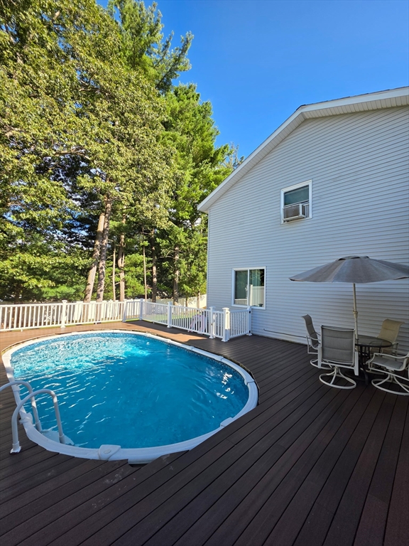 Meticulously maintained. UPDATED Kitchen and baths , spacious 4 bedroom home ! Fully Fenced in yard, deck , pool , 3 season sun room off the kitchen- dining area. Extra room on the first floor that could be used as an office , bedroom or formal dining room in addition to the living room, 1/2 bath and laundry. On the 2nd level is the MAIN Bedroom Suite with HIGH VAULTED CEILINGS , bathroom and walk-in closet, 3 more bedrooms and full bath ! Basement is beautifully finished with the same HARDWOOD floors as the rest of the home. Desirable area with like homes and pretty tree lined street , great for dog walking or just strolling !Fantastic location close to hiking and skiing , !7 miles to Devens MA . 3.5 miles to highway access !
