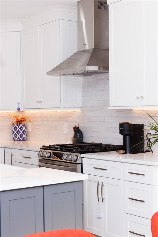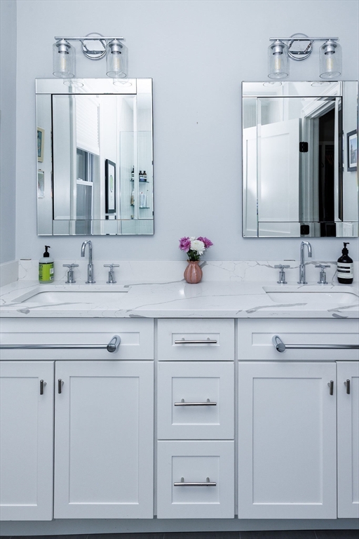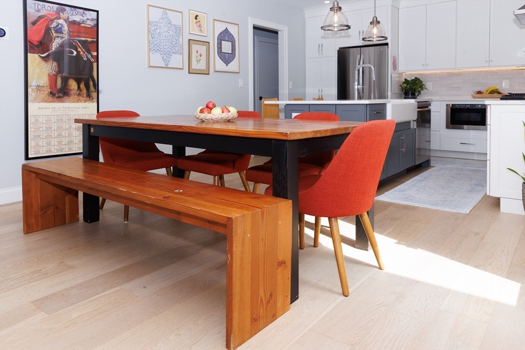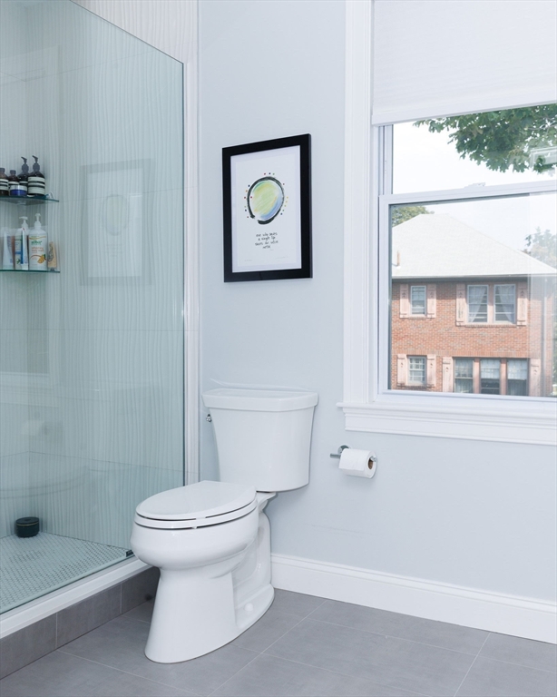 Your new home awaits! Completely gut renovated in 2023, this top floor condo boasts 3 bedroom & 3 full bathrooms over two levels. Situated in a highly sought after neighborhood in Newton, around the corner from Lincoln Eliot Elementary. Just upstairs from the mudroom, walk into a sun filled living room with a fireplace and beautiful oak floors, that spills into the dining room and a cook's dream kitchen that includes SS appliances, custom cabinets and quartz countertops. The primary bedroom offers a walk-in closet and a spa-like bathroom with an oversized walk-in shower and double sink. Top floor offers additional home office/gym and bedroom with full bath and an enormous shower. Other amenities include in-unit laundry, Tankless water heater, 2 heating/cooling zones, and two tandem parking spaces with room for a third! Convenient location to public transportation, Mass Pike, Soldiers Field Road, shopping, restaurants, schools, parks and more. 2 yr old washer & dryer and nest doorbell.