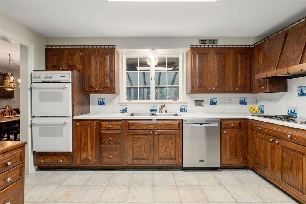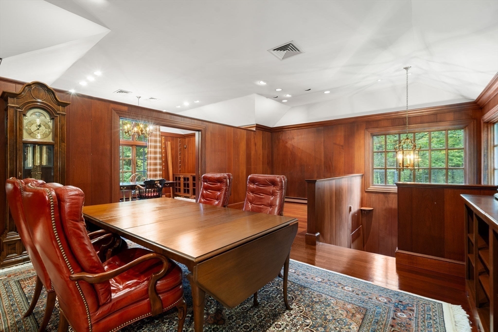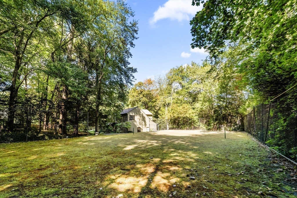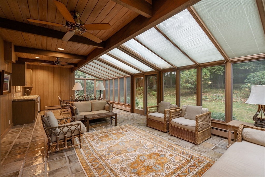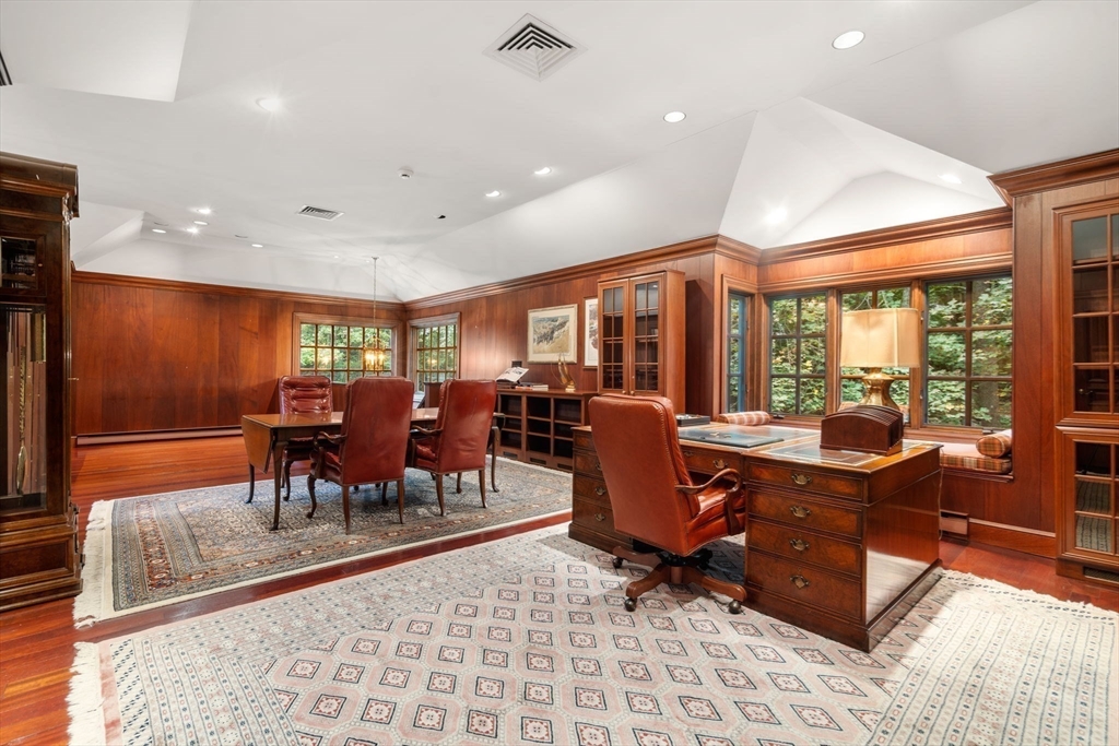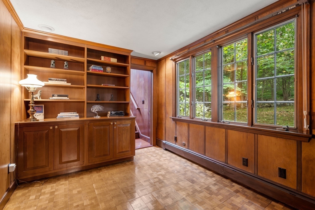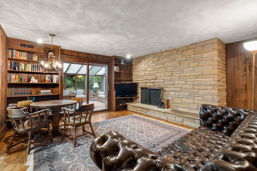 Rare opportunity in sought-after Woodcrest Acres! This unique 14-room Garrison Colonial sits on 1.4 acres of beautifully landscaped grounds. Offering 4 bedrooms, 5 full baths and1 half bath. The home features a formal living and dining room, a cozy family rm with a wood burning fireplace, 4-season heated sunroom overlooking the park-like yard, and a stunning custom office with rich wood details w/ incredible built ins, vaulted ceilings & a wet bar. The spacious lower-level recreation room includes its own kitchenette perfect for entertaining. All bedrooms are generous in size and the primary bedroom has a custom walk-in closet w/ a wall of drawers and private bath, Enjoy resort-style amenities: tennis court, in-ground pool with a private cabana, lower-level game room, bonus rm & wine cellar and more. Ideal for multi-generational living or hosting guests.The home has seen many major updates. Thoughtful details & timeless quality make this a rare find & a true gem with endless potential