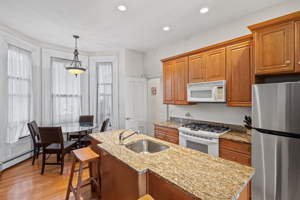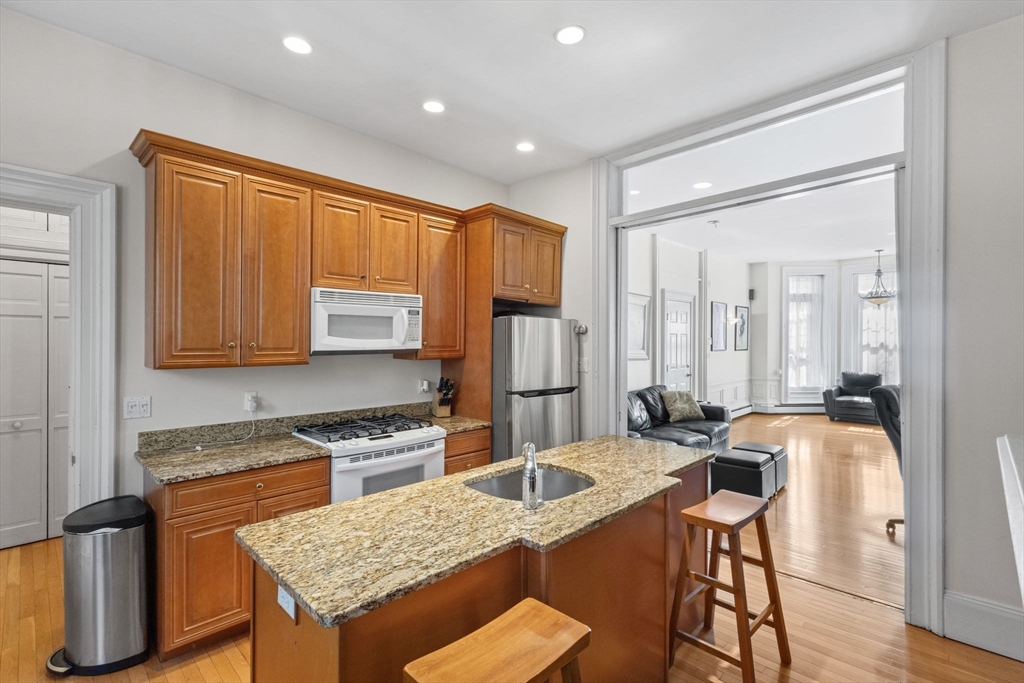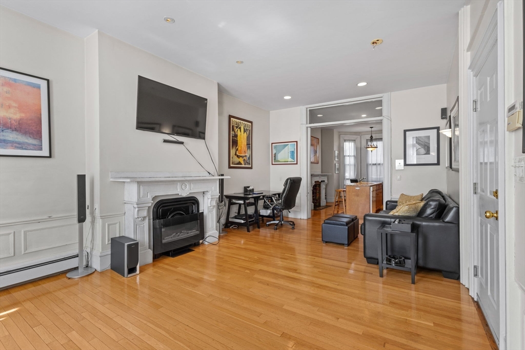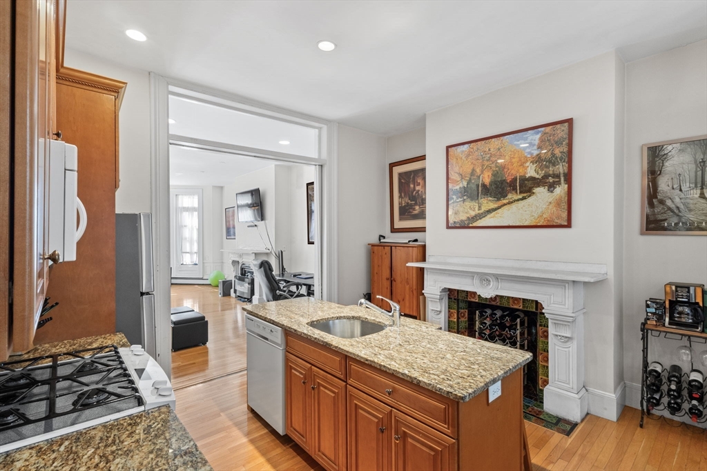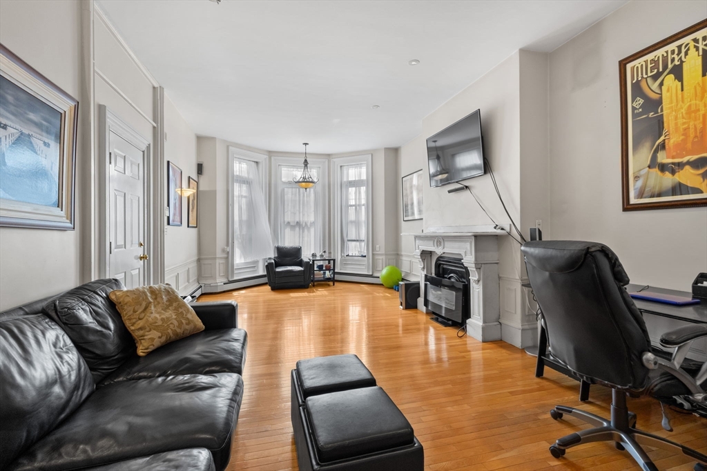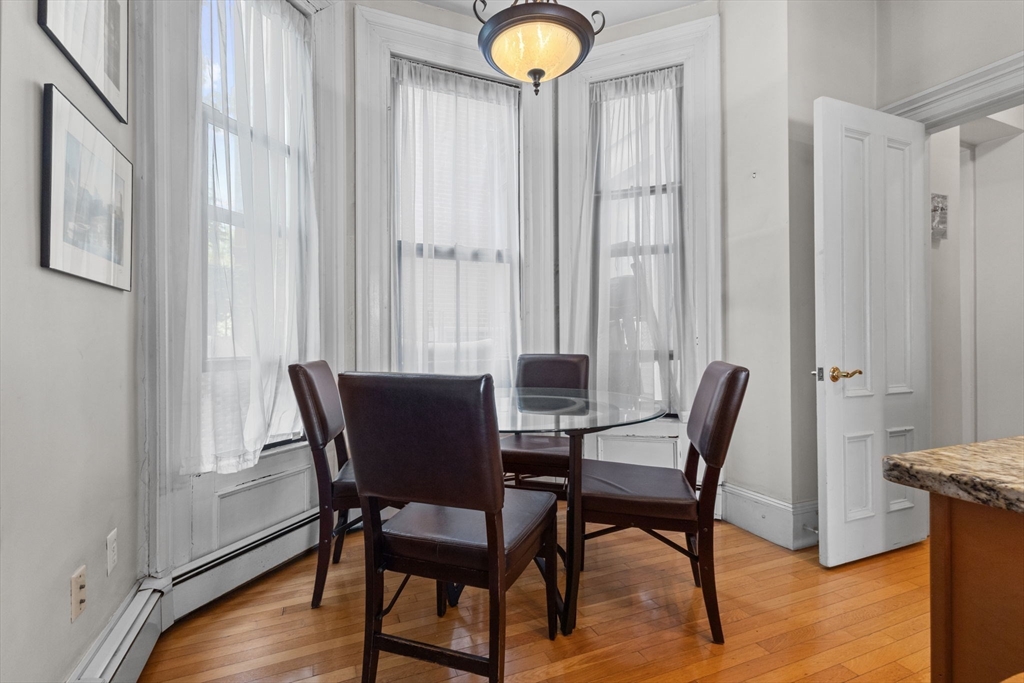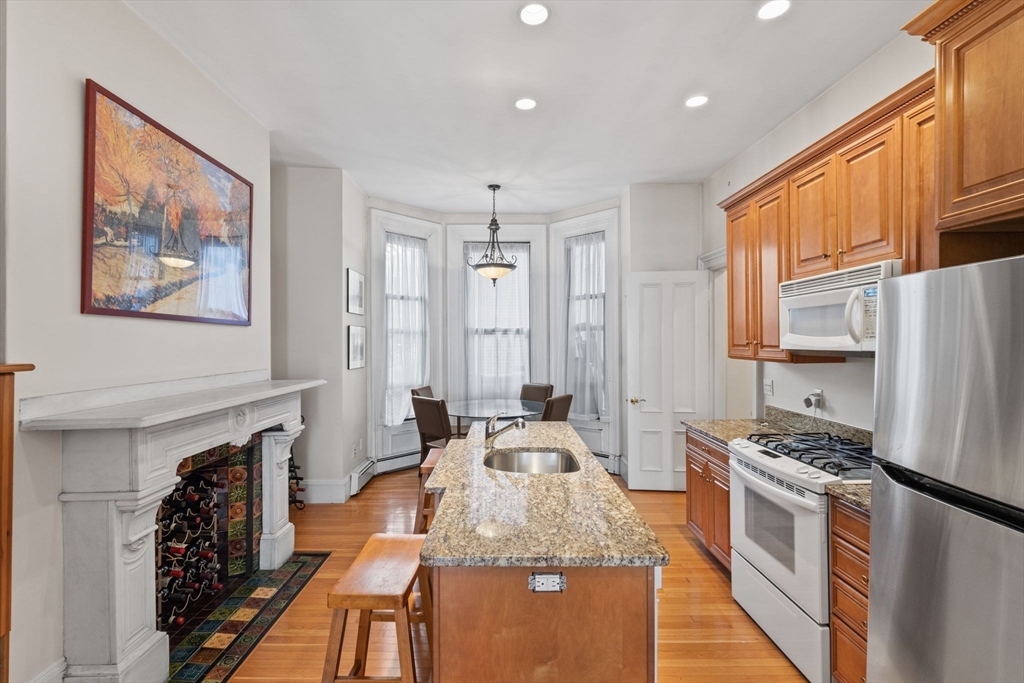 Unbeatable Back Bay location with a private deck in one of Boston’s historic brownstones! Just steps from Copley Square, the Green Line T, the Esplanade, Boylston Street attractions, and Newbury Street shopping, this 1-bedroom, 1-bath home blends charm and sophistication. An entertainer’s dream! The open living and dining areas feature a fireplace and elegant wainscoting, flowing seamlessly into a sun-filled kitchen with soaring ceilings. The center island with barstool seating, a dining nook surrounded by windows, and its own fireplace make for the perfect combination for any dinner party. With generous closet space, abundant natural light, and timeless character, this residence is a true Back Bay treasure.