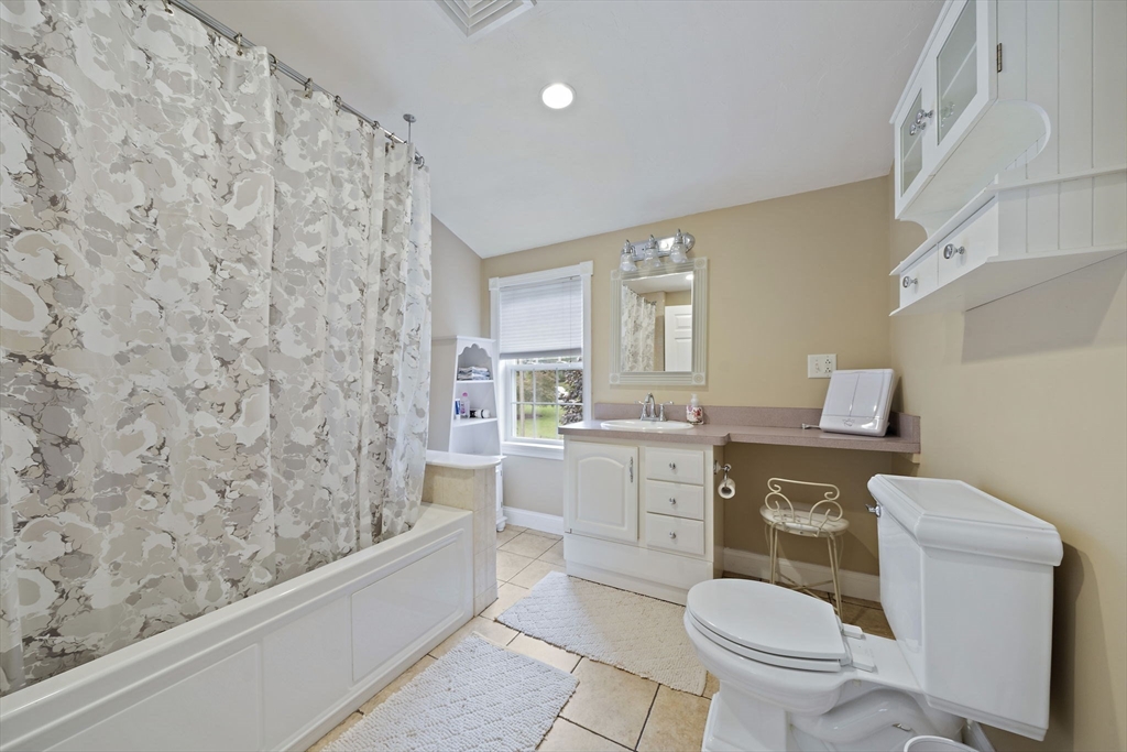 Welcome to 16 Jay Road. A lovely Cul-da-sac in a convenient South Weymouth neighborhood. 4 bedrooms and 3 1/2 baths and so much living space in this home. 1st floor spacious Primary bedroom, previously used as an "in-Law" with a beautiful on-suite bathroom, walk-in closet and laundry room. Large open kitchen with island eating area with a lot storage. Big open family room, breezeway with closets connects to a big 3 season room that overlooks the beautiful large yard. 1/2 bath off of the kitchen. 2nd floor has an open area, 3 bedrooms, one being the original primary with on-suite and walk-in closet, and 2 other nice sized bedrooms and a full bath. Finished room in the basement and a lot of storage areas. Great deck overlooks the beautiful yard with above ground pool, shed and lovely plantings. Long term owners are ready to downsize. It is a must see home!