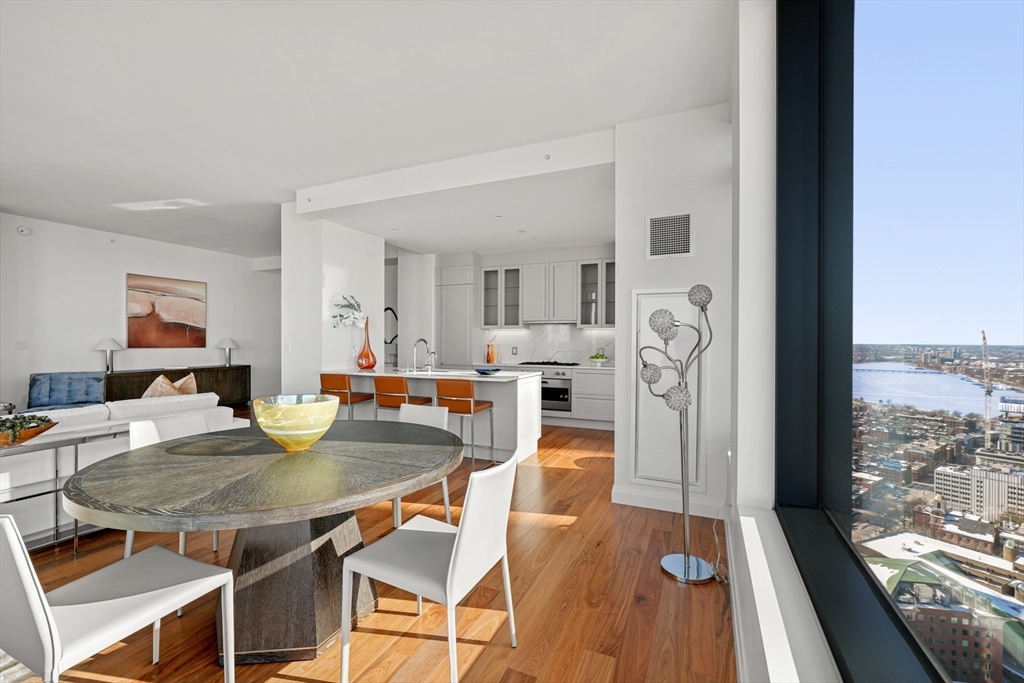 Enjoy sunrises & sunsets from this bright corner home offering an incredible 30' wide, open concept living area w/panoramic views of the coastline & Boston Harbor that stretch to the horizon. Southwest-facing primary bedroom offers picturesque sunset views over the Charles river. Custom Scavolini cabinetry, quartz countertops, integrated Gaggenauappliances, gas cooktop & wine cooler. Range hood, full size dryer and bathrooms vent out. The Sudbury is a new hi-risewhere the North End meets Beacon Hill w/ just 55 luxury condos crowning the top floors of the tower, designed for those seeking city living while retaining the intimacy of a private boutique. Amenities: private lobby 24/7 concierge, private clubroom & private roof garden. Heated outdoor pool, 4500sf fitness center/yoga studio, sports simulator, outdoor dog park, sky lounge/deck, chef’s kitchen/private dining & more. Steps to Greenway & Harborwalk. Easy access to I-93 and Logan. 2 assigned self-parking in attached garage.