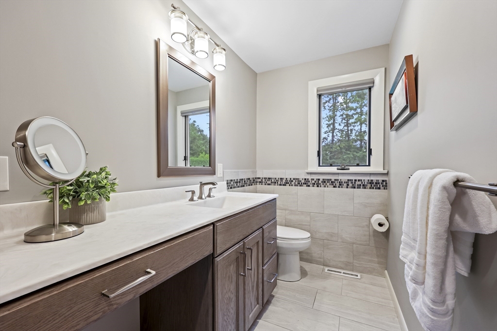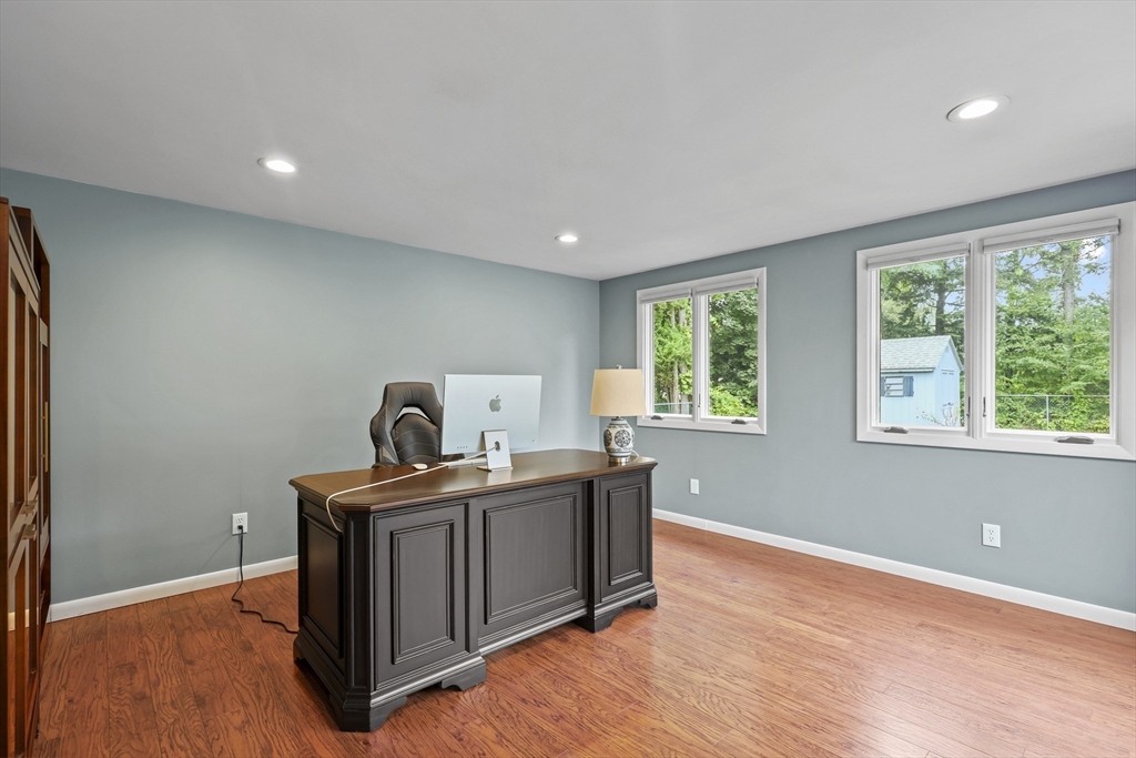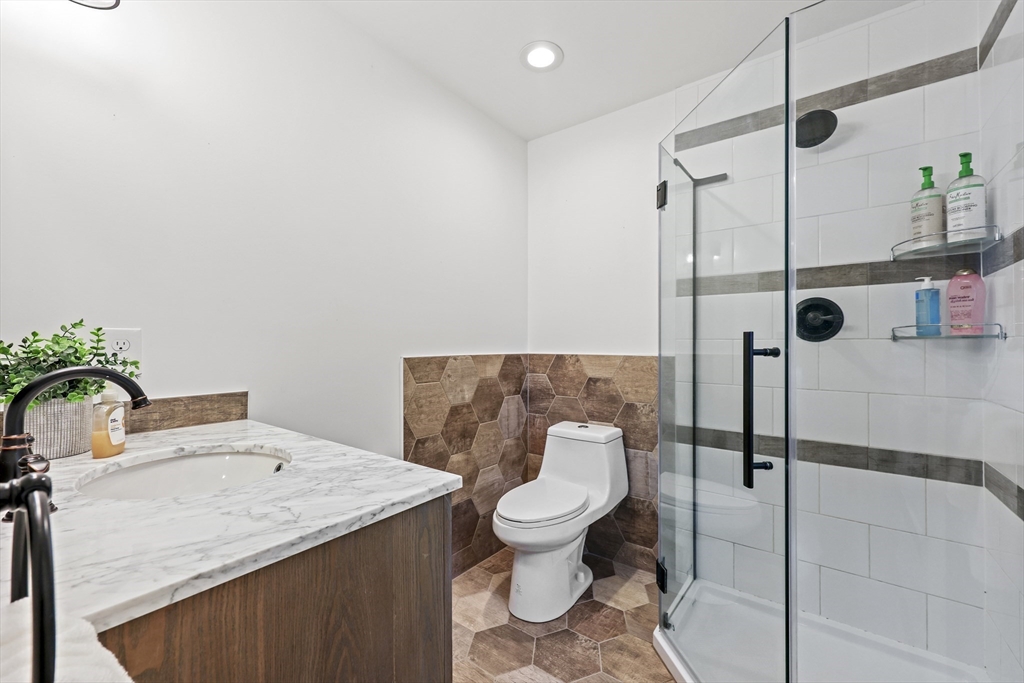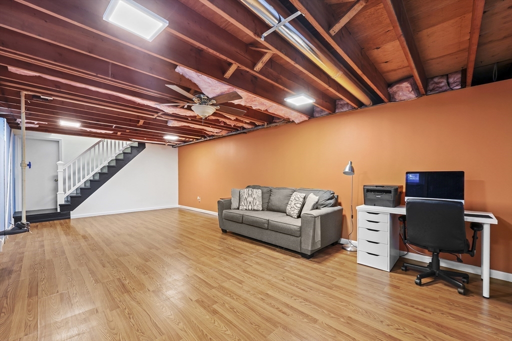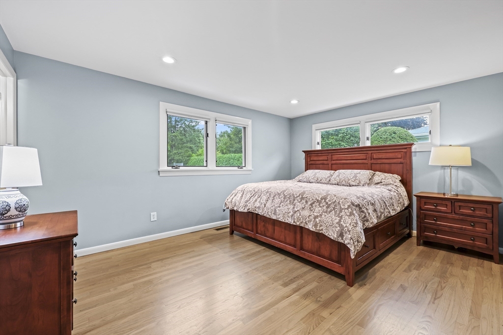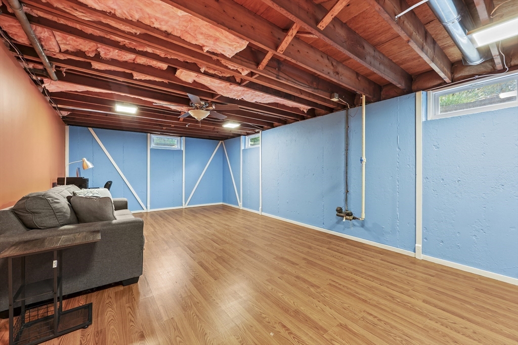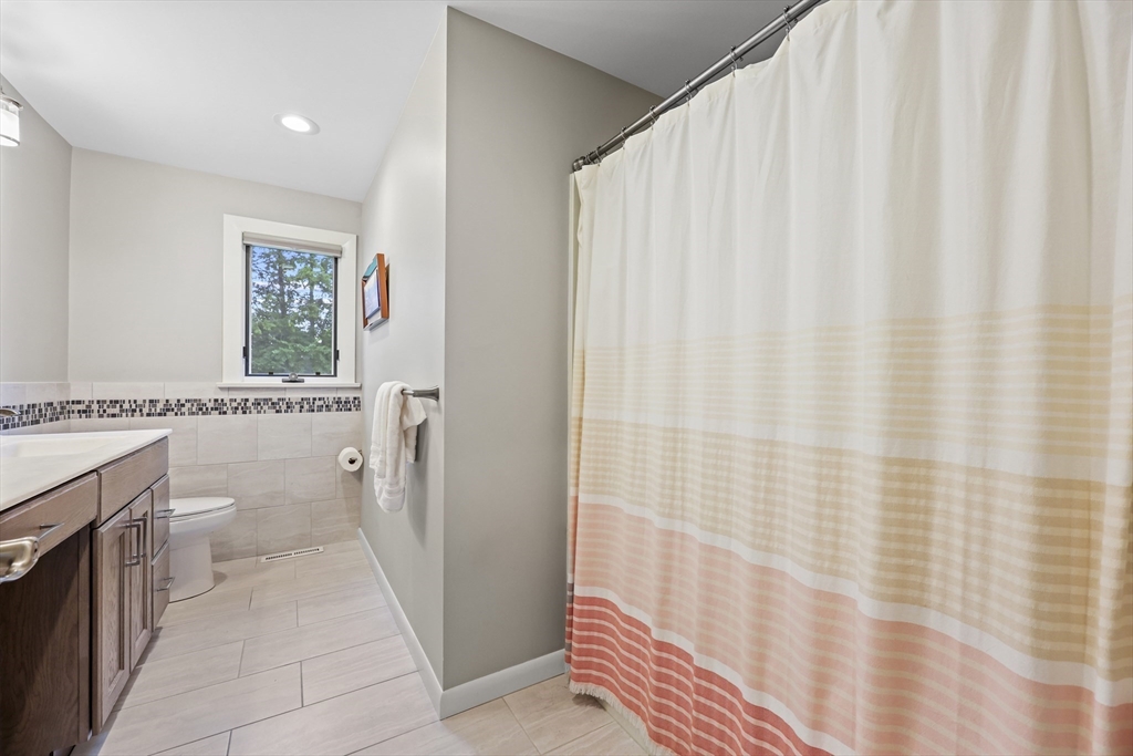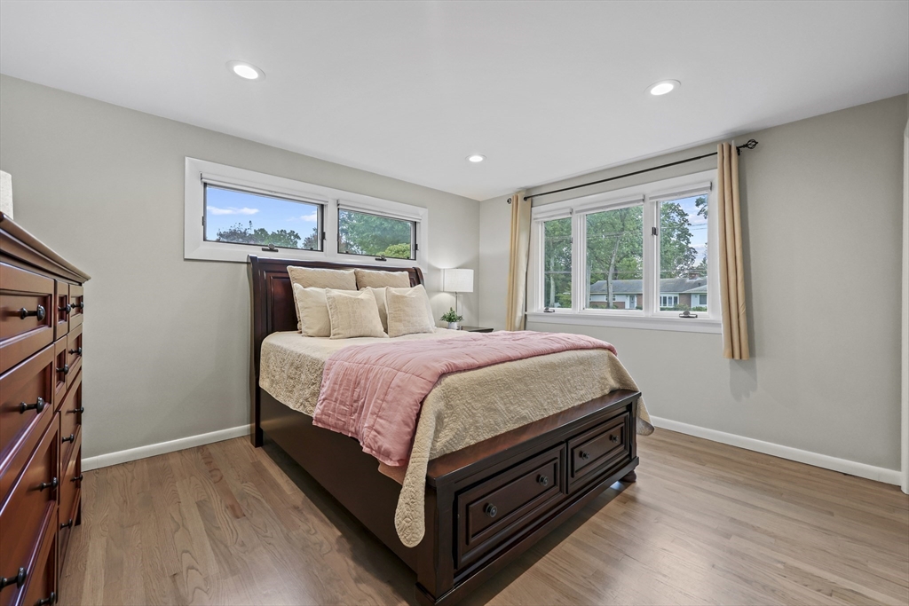 Renovated ranch, nestled in heart of town, offers perfect blend of modern luxury & timeless charm. Prime central location ensures convenience, while functional floorplan maximizes space & natural light. Refinished hardwood floors & generous, light-filled living spaces create warm & welcoming atmosphere. Living room showcases striking fireplace w/stacked stone surround, seamlessly flowing into dining room & renovated kitchen. Gourmet kitchen features Kraftmaid cabinetry, granite, tiled backsplash, black stainless-steel appliances, undercabinet lighting & charming breakfast bar. Family Room offers slider opening to composite deck & large, level backyard w/storage shed. Primary Suite includes double closet & luxurious bath w/corner shower featuring frameless glass door. Two additional bedrooms w/double closets are serviced by large full bath w/expansive vanity w/ linen tower. Lower level has finished room, ideal for recreation, plus unfinished area w/laundry hookups & ample storage.