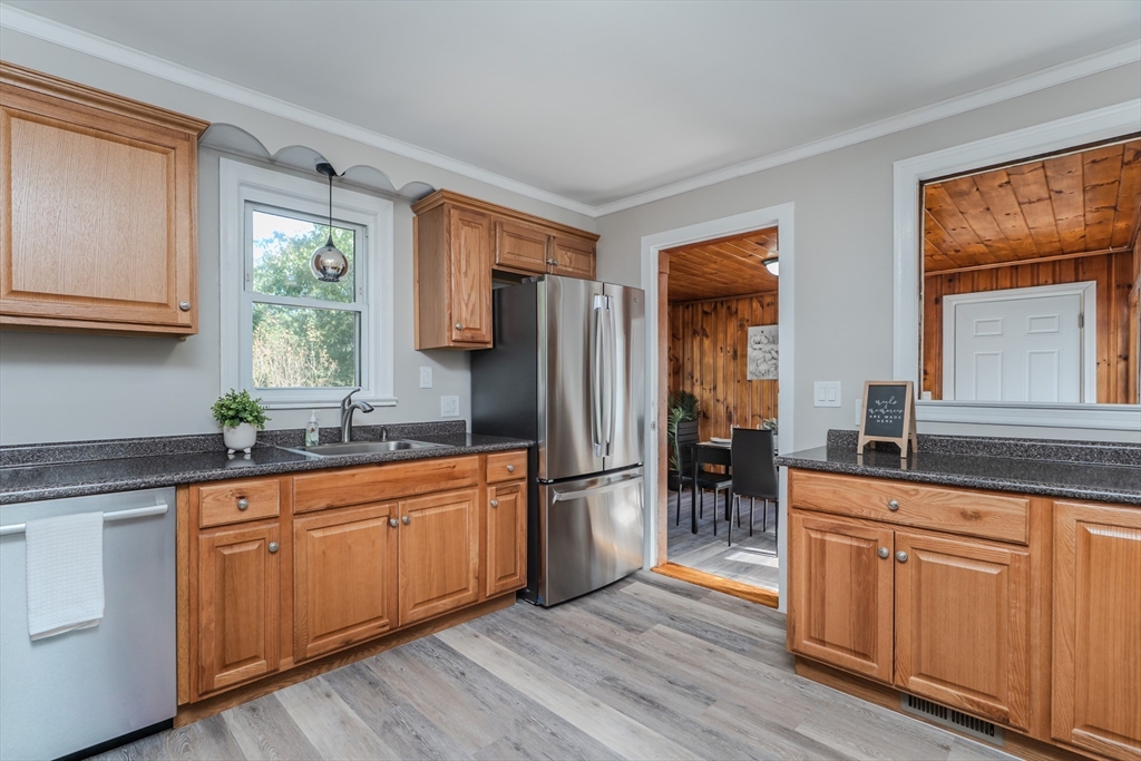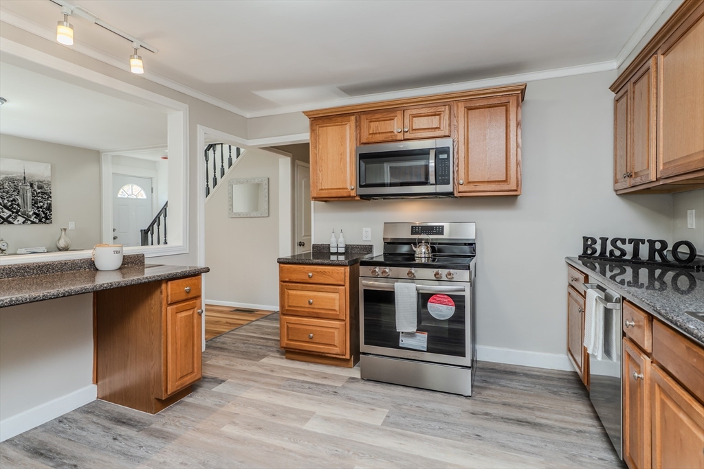 Welcome to a move-in ready gem that blends fresh updates with comfort and functionality. This charming 4 bedroom, 1.5 bath home has been thoughtfully refreshed throughout. Step inside to find beautiful hardwood floors in the living room and a brand-new floating floor adding a crisp, modern touch throughout the rest of the main level. The upstairs bedrooms feature new carpeting. The kitchen features gorgeous granite countertops, sleek stainless steel appliances, ample cabinet space, and a layout designed for both cooking and conversation. Fresh paint throughout the home creates a clean, bright atmosphere. The full bath has been completely updated with new tile and a modern vanity. The walkout basement is ready to be finished and there's a brand new heating system. Outside you'll find a new roof and a large deck overlooking your private yard; perfect for entertaining. A one-car garage provides additional convenience and storage solutions.