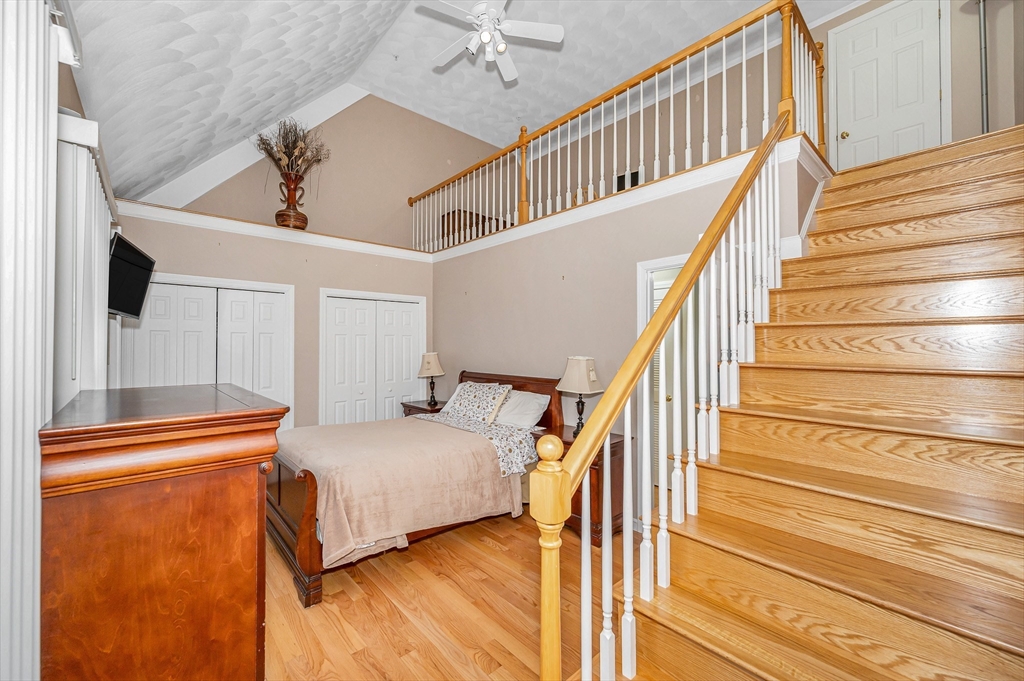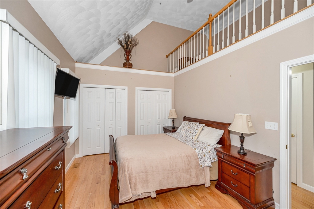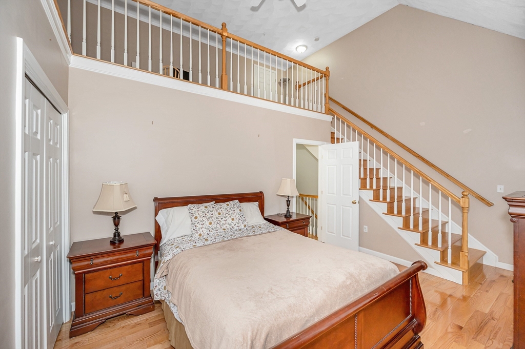 This stunning 2-bedroom, 1.5-bath townhouse is filled with upgrades and thoughtful design throughout. The open-concept kitchen and dining area create an inviting flow, while gleaming hardwood floors, marble, granite, and tile finishes add elegance and style. Updated bathrooms and a modern layout make this home move-in ready.The expansive master bedroom features vaulted ceilings and a bonus loft area that is ideal for a home office, gym, or quiet retreat. A fully tiled utility room and oversized garage provide both function and convenience. Lovingly cared for, this townhouse has seen numerous updates and improvements. Additional highlights include a chairlift for accessibility (removable if desired) and a low condo fee for added value. First Open House on Sunday from 11-1pm.