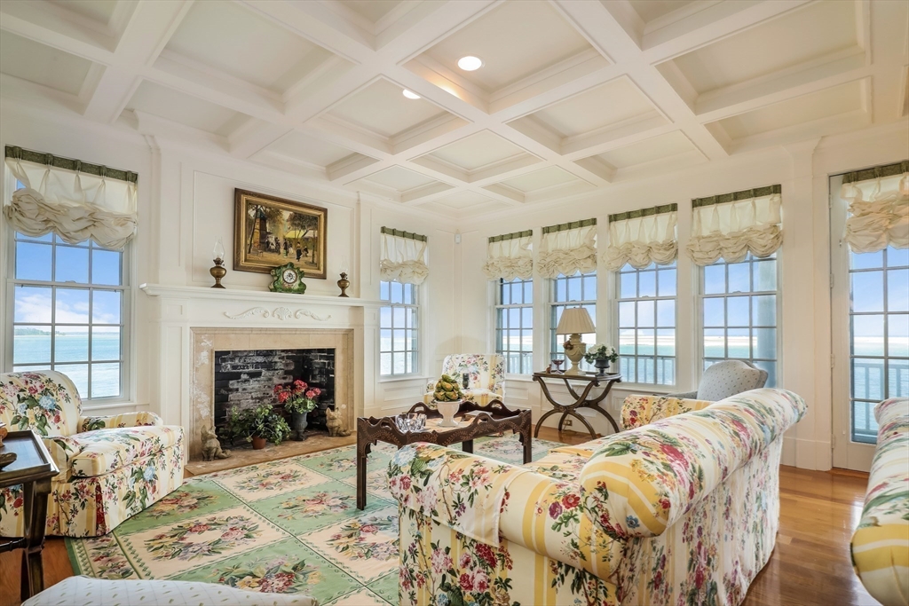 This unrivaled oceanfront estate on prestigious Ministers Point in North Chatham offers grand-scale living with breathtaking Atlantic Ocean vistas. The cedar shingle and stone exterior blend seamlessly with elegant interiors featuring striking architectural details, custom finishes, and exceptional craftsmanship. Sunlight fills the 11-room residence, showcasing panoramic views of Chatham's coastline and North and South Beach. The entry opens to a spectacular living and dining room with soaring coffered ceilings, an imported fireplace, and walls of windows framing the sea. A grand family room with a fireplace offers space for entertaining, while a wood-paneled ensuite study provides a cozy retreat. The chef’s kitchen leads to a private second-floor ensuite bedroom. Upstairs, a magnificent primary suite, a third ensuite bedroom, and a book-lined sitting area await. The lower level offers two ocean-facing ensuite bedrooms. Enchanting grounds complete this estate.