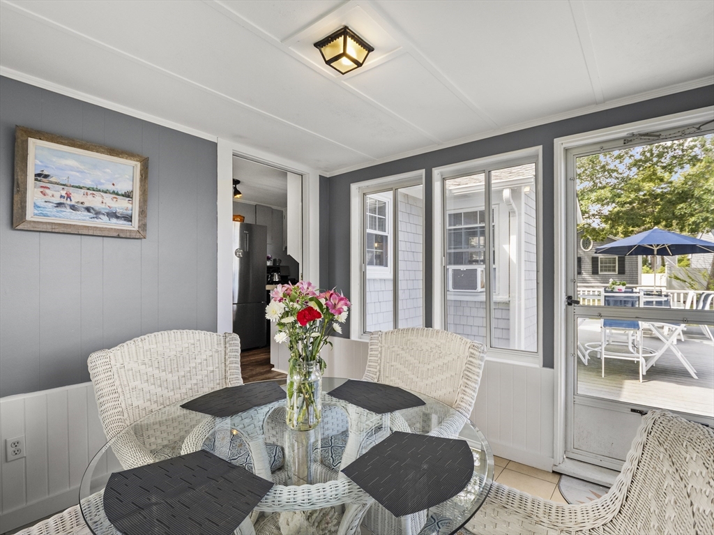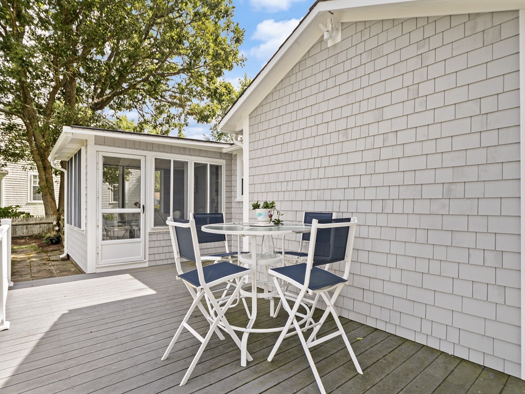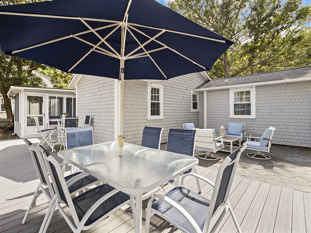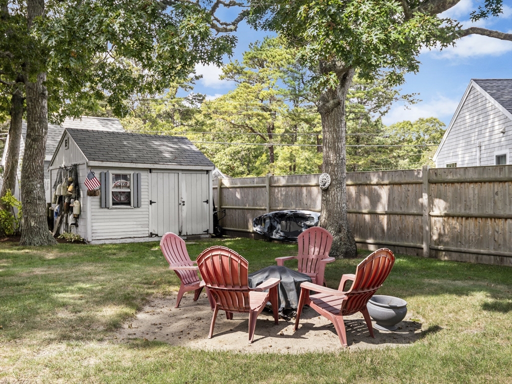 16 Peregrine Lane, South Yarmouth – Cape Cod Living by the Beach! Discover the charm of this inviting 2-bedroom, 1-bathroom year-round home just .3 miles from Parkers River Beach. Offering 1,029 sq. ft. of living space, this property blends comfort, character, and outdoor enjoyment in one perfect package. Step inside to find hardwood floors, a cozy living room with fireplace, and a wood stove for added warmth. A bright 3-season room expands your living space, perfect for morning coffee or relaxing with friends. Outside, enjoy a large fenced-in yard designed for entertaining. The expansive deck and patio area includes a fire pit and grilling station, creating the ultimate backyard retreat. A storage shed provides space for beach gear, tools, and more. Whether you’re seeking a year-round residence, a summer escape, or a smart investment, this home checks all the boxes. With its unbeatable location, you’ll be able to walk to the beach while enjoying Cape Cod’s coastal lifestyle.