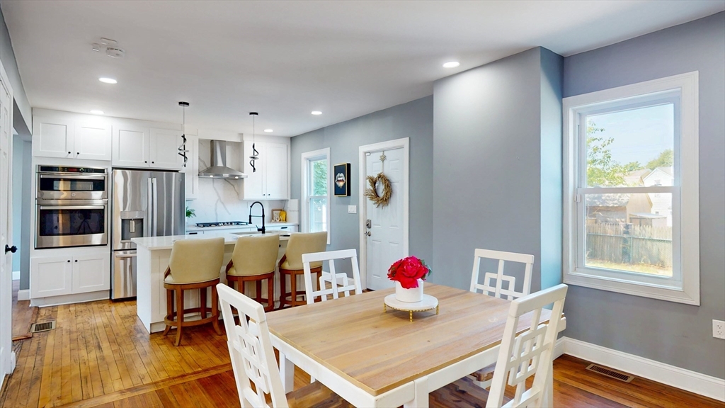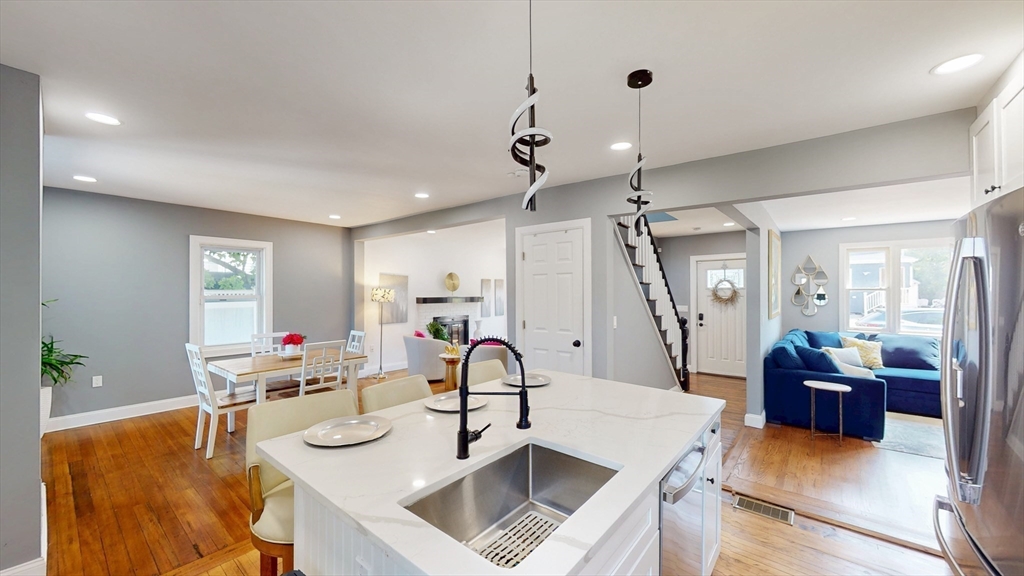 Step into this gorgeous home where every detail has been reimagined for modern living. This four bedroom, three full bathroom Stoughton beauty was completely renovated in 2024, offering the rare chance to move right in without the stress or cost of updates. Sun filled and open, the main level features hardwood floors throughout, living room and a dining room that flows into a chef’s kitchen with a center island, stone countertops, and stainless steel appliances. The main level is enhanced by a beautiful flex space that can serve as a home office, playroom, or second living area. Upstairs, the spacious primary suite includes a private bath, while three full bathrooms ensure comfort for everyone. The transformation includes a new heating system with central air, all new kitchen and baths, and a leaf guard gutter system for peace of mind. Conveniently located minutes from the commuter rail and Route 138, this home offers modern style, smart upgrades, and easy access to Boston!