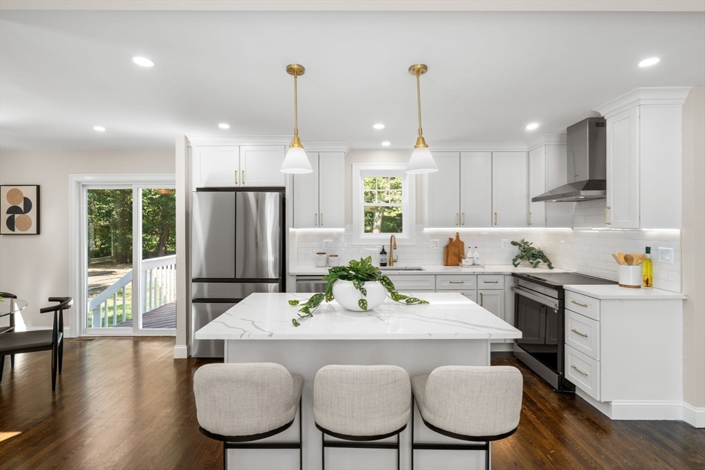 Extensively remodeled from top to bottom with designer finishes, this like-new home offers luxurious, modern living in a sought-after Northborough neighborhood. Featuring 4 bedrooms, 2 full and 2 half baths, every inch has been thoughtfully redesigned with high-end materials and attention to detail. The stunning chef’s kitchen showcases quartz countertops, stainless steel appliances, custom cabinetry, and a large center island, flowing seamlessly into bright, open-concept living and dining areas. Step out onto the deck —perfect for outdoor dining or relaxing in your tree-lined backyard. The first-floor primary suite includes a walk-in closet and spa-like private bath. Upstairs, find three spacious bedrooms and a stylish full bathroom. The finished walkout basement adds flexible space for a family room & home office. With new central air, heating and electric system, appliances, and modern fixtures, this turnkey home is a must see. Top rated school and short distance to commuter rail.