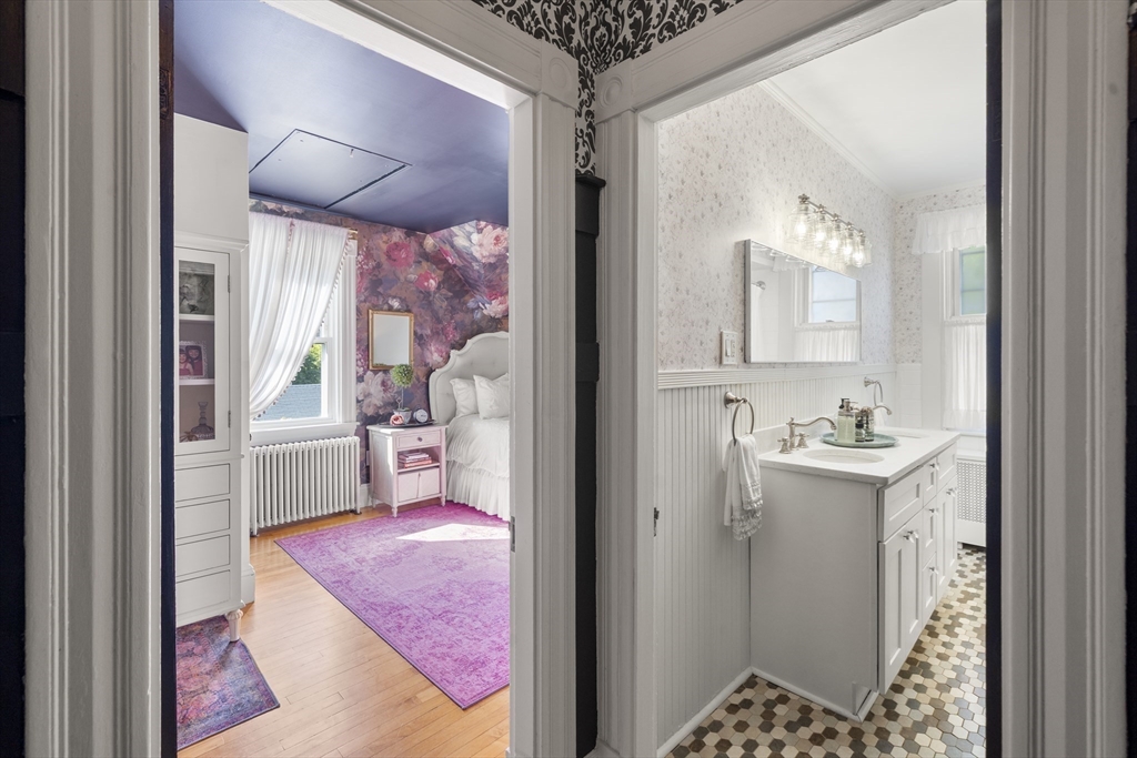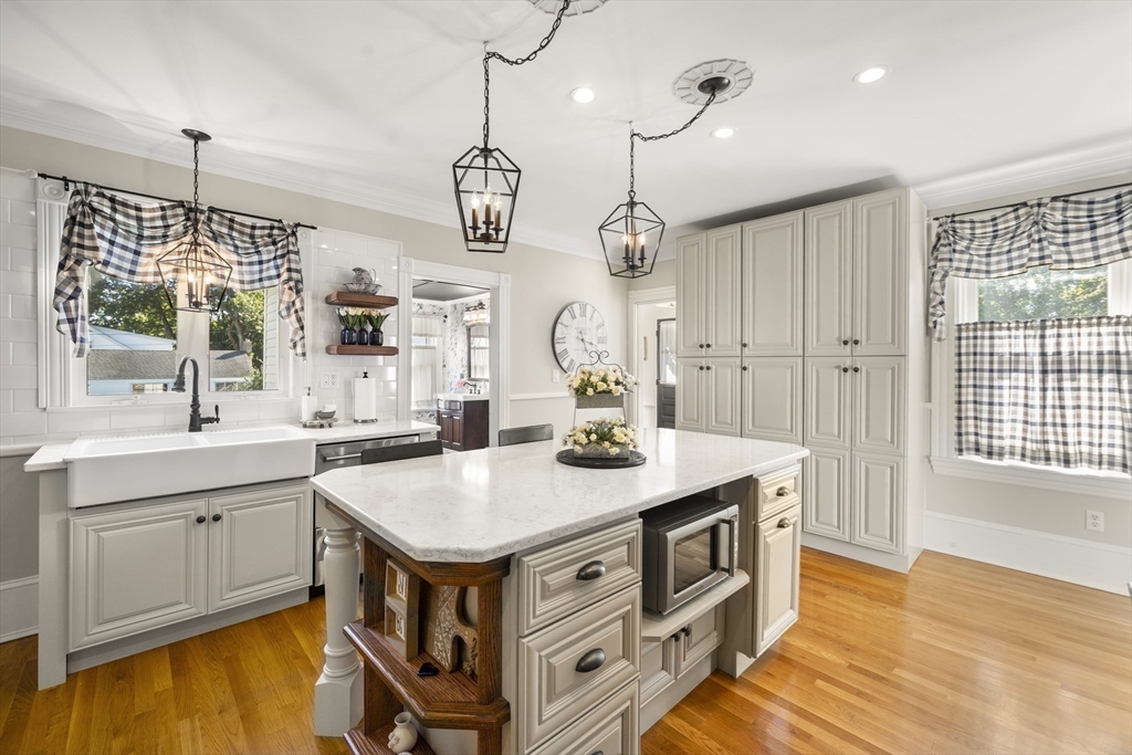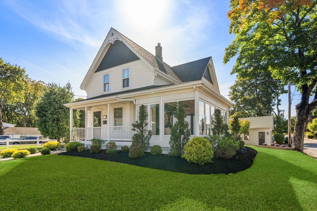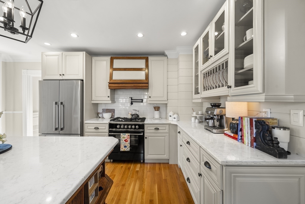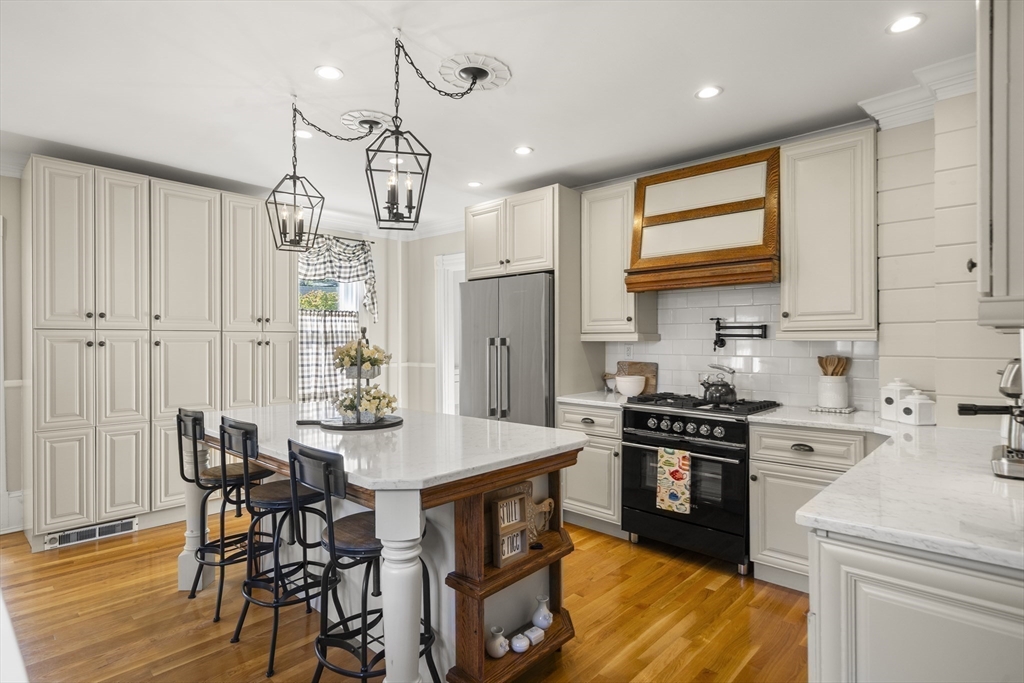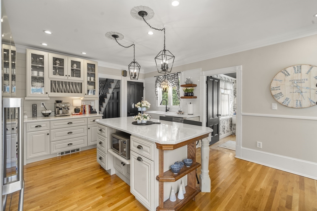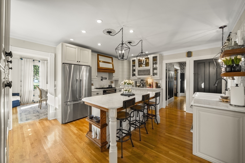 Perfectly situated on a pretty corner lot in desirable North Easton, this exquisite Colonial Farmhouse could easily appear on the pages of House Beautiful! Meticulously maintained and thoughtfully refreshed, this home blends timeless charm with modern comfort. Sunkissed gleaming hardwood floors flow throughout and highlight the home’s fine details – classic moldings and trim, and custom paneling, to the stylish wallpaper and pleasing, sophisticated color palette.The first floor invites entertaining with a spectacular Chef’s kitchen featuring Fisher&Paykel appliances, quartz countertops, crisp white cabinetry, built-ins, and chic pendant lighting. A stunning dining room, warm living room, and cozy sunroom offer additional gathering space, and an office and half bath with laundry offer convenience. Upstairs, you’ll find three generously sized bedrooms with ample closet space and full bath. Step outside to enjoy your backyard oasis and enjoy an evening around the firepit under the stars!