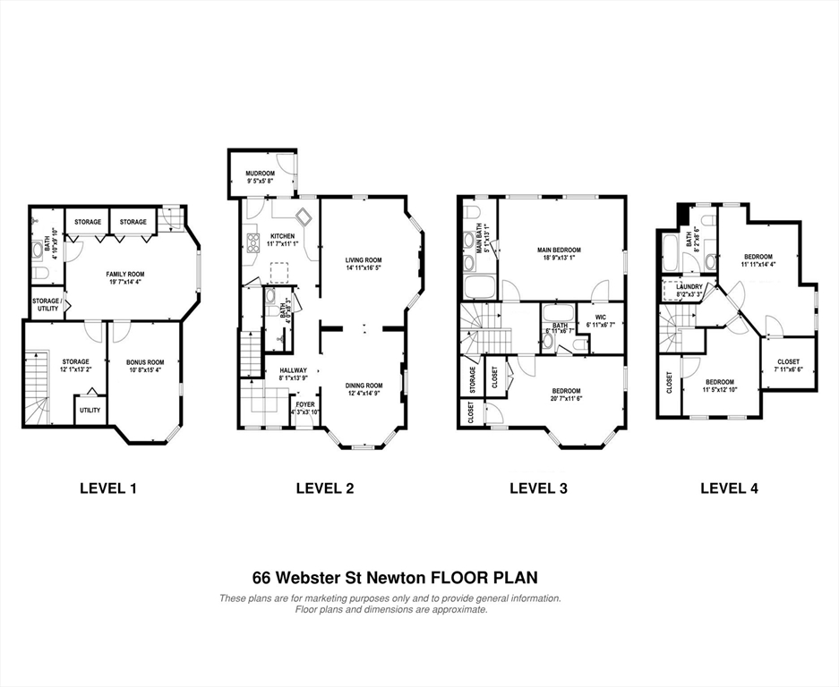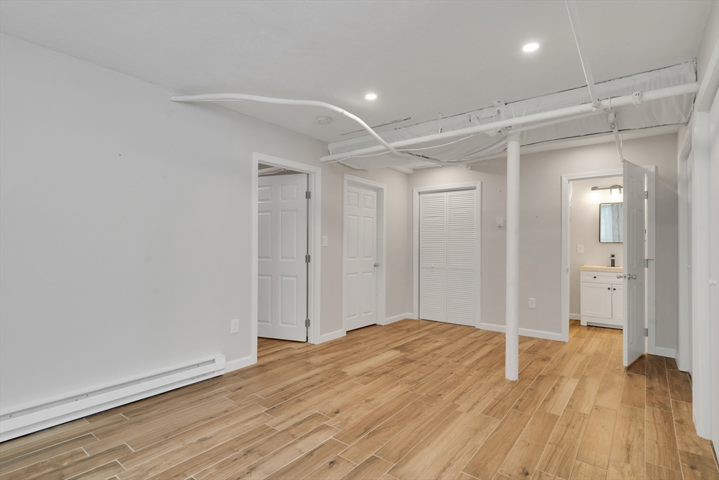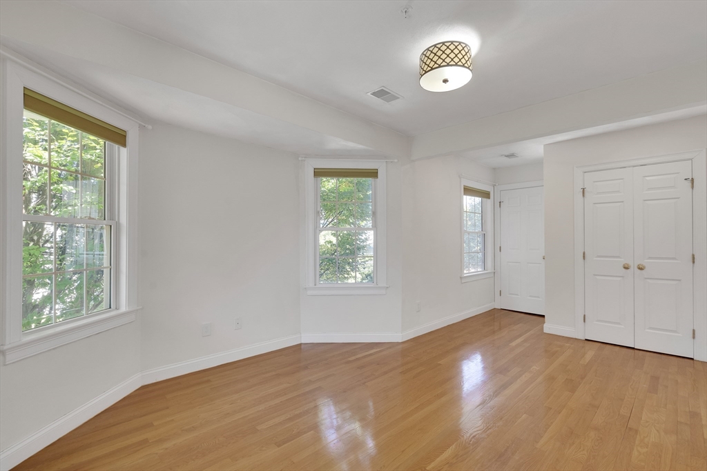 Discover this spacious end-unit townhome in West Newton, offering exclusive side yard access, four bedrooms, five full baths, and two deeded parking spaces. Converted to condo in 2001, the residence spans four levels of well-designed living space, enhanced by abundant natural light and gleaming hardwood floors. The main level showcases a granite kitchen with stainless steel appliances, a mudroom, formal dining room, expansive living room, and a full bath. On the second floor, you’ll find two oversized bedrooms, each with an en-suite bath. The third level includes two additional bedrooms, a fourth tiled bath, and a convenient laundry room. The newly finished lower level adds approximately 514 square feet of versatile living space with walk-out access and another full bath. Ideally located, this home is just moments from local parks, the commuter rail, a movie theater, and the vibrant restaurants and shops of West Newton.