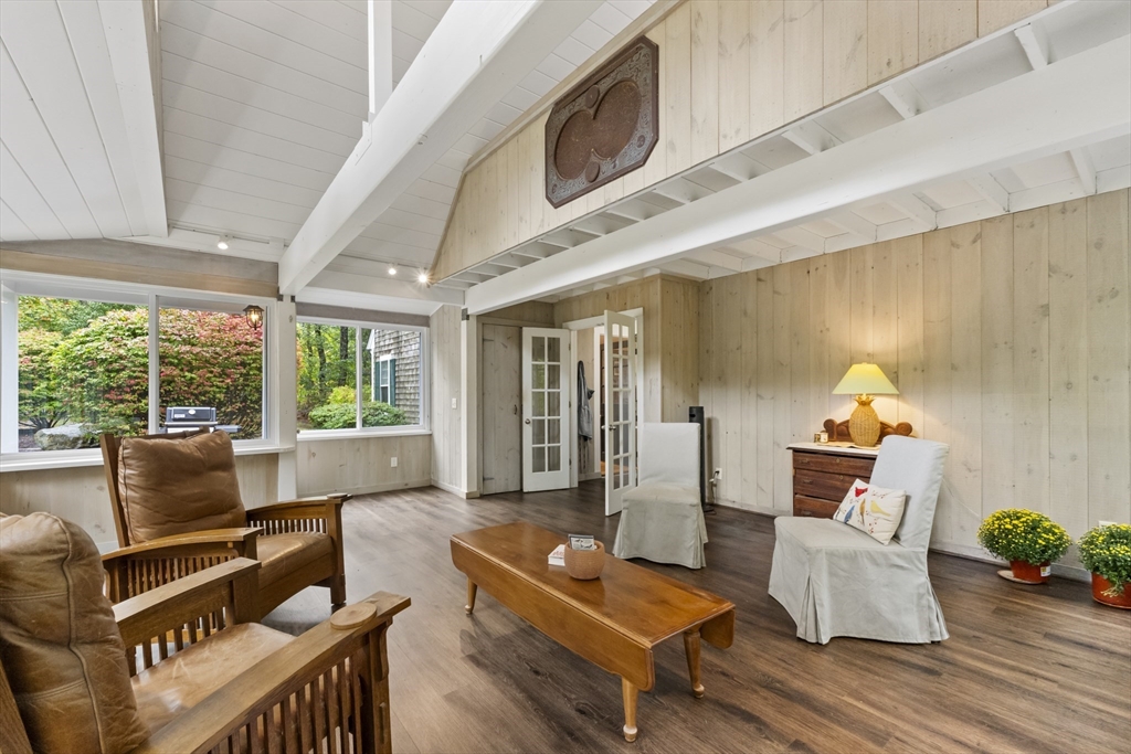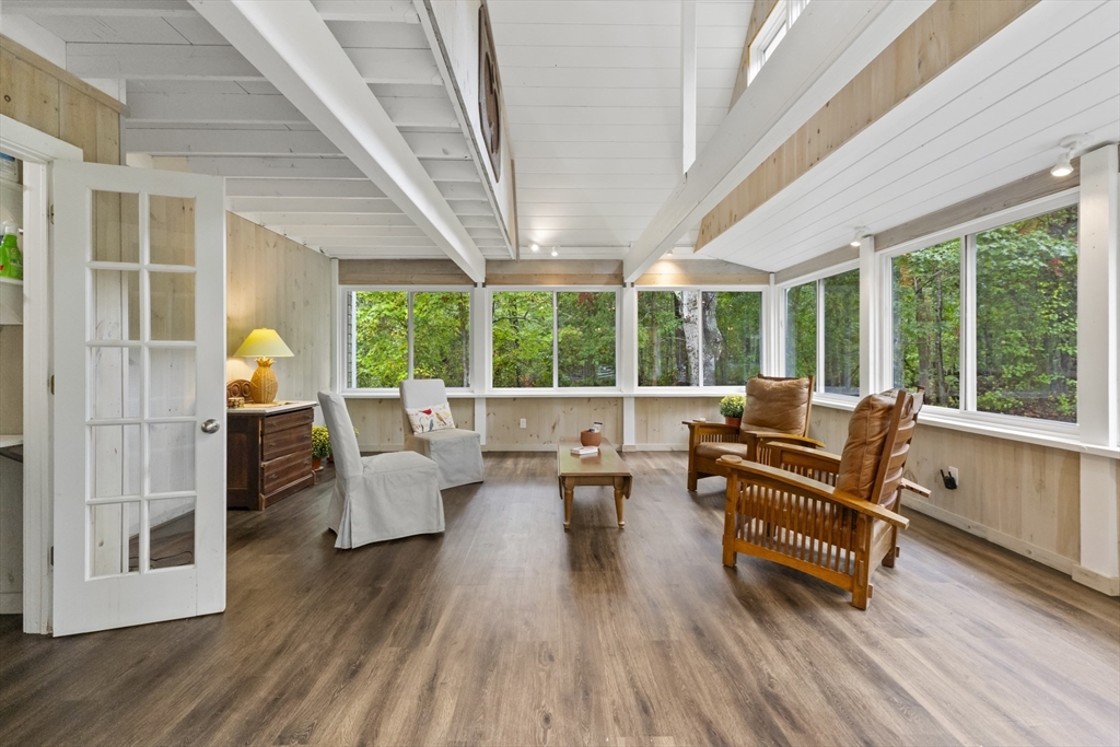 Full of character, this 3BR/2BA Cape is set on 1.47 private acres with deeded access to Upper Mill Pond and a private beach—perfect for swimming, kayaking, and endless outdoor fun. The sun-filled living room features a brick fireplace and wide pine floors, while the kitchen offers granite counters, custom cabinetry, another brick fireplace, and a slider to the deck. Just off the kitchen, a stunning 20’x20’ 3-season room with cathedral ceilings and expansive windows creates an ideal gathering space filled with natural light. A comfortable first-floor bedroom is paired with a nearby full bath, while upstairs you’ll find a spacious en suite bedroom plus a third bedroom with a loft and a balcony overlooking the beautiful 3-season room. Additional highlights include a new roof and an outdoor shower for after-beach convenience.