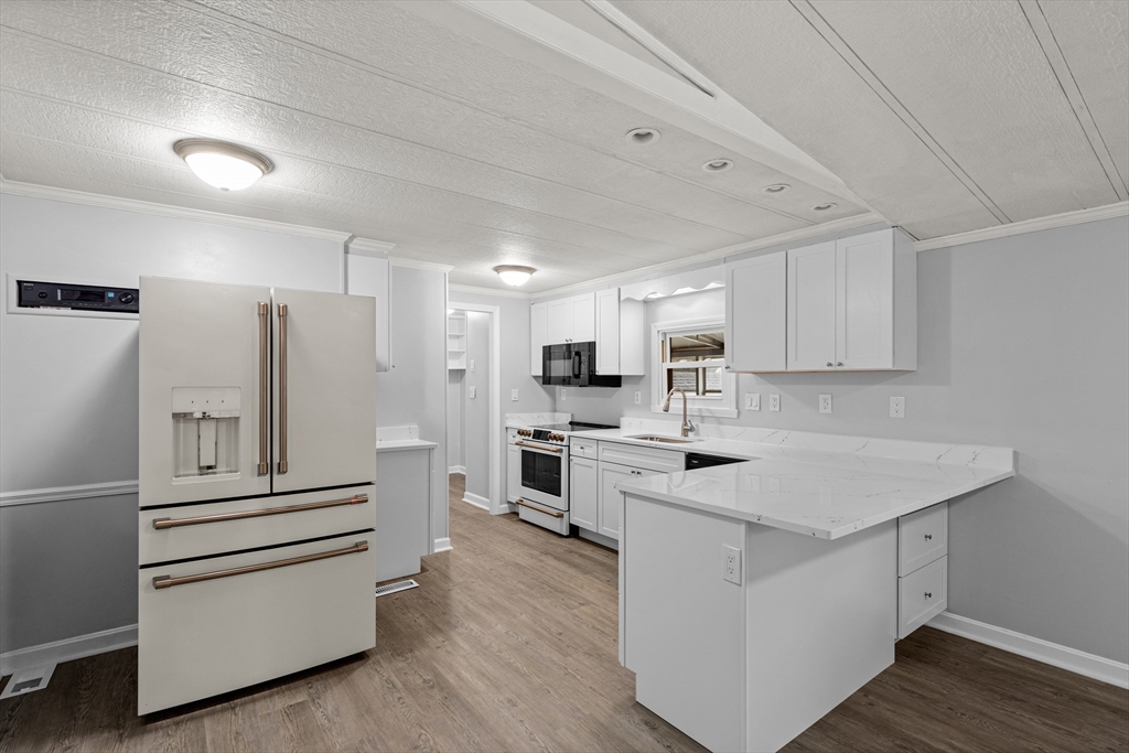 Welcome home to this beautifully updated 3-bedroom, 2-bath manufactured home in a desirable 55+ community! Featuring an open floor plan, the home offers all new vinyl plank flooring, plush carpet in the bedrooms, and a freshly painted interior. The updated kitchen shines with new cabinets, countertops, and top-of-the-line appliances—perfect for cooking and entertaining. Enjoy the outdoors from the screened-in porch or relax in your fenced-in corner lot with a storage shed for convenience. A newer carport adds extra value and protection. With thoughtful updates throughout, this home is truly move-in ready and waiting for its new owner. Pet friendly park, vibrant community with clubhouse, pool, library and hair salon. Close to local amenities. Start Packing!