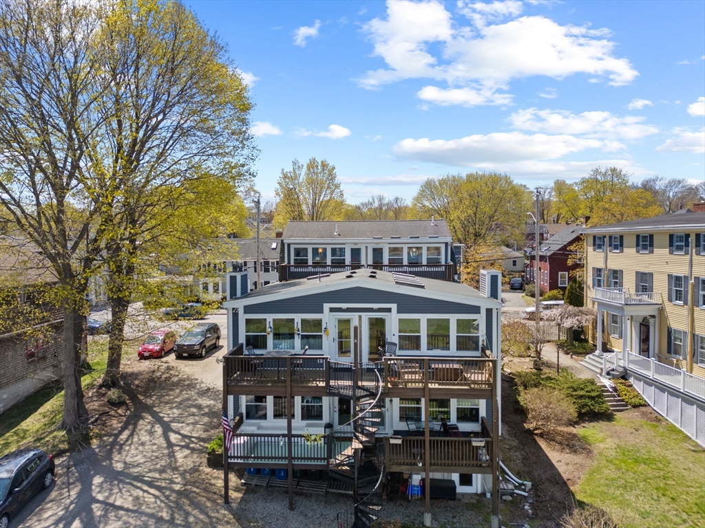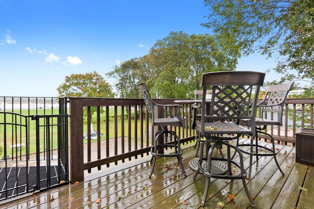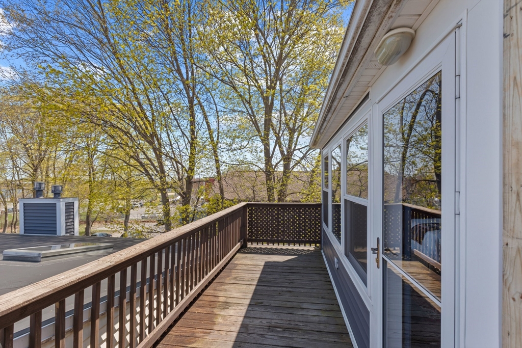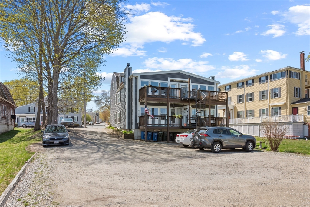 The unobstructed views of the Merrimack River are captivating from this three bedroom upper level condominium, located a short distance to the Clipper City Rail Trail, shops and restaurants of downtown Newburyport. The open living, dining and kitchen area is bright and sunny with a gas fireplace a skylight and a large private deck overlooking the Merrimac River. The kitchen is equipped with granite counter tops and brand new stainless steel appliances. The large laundry closet has a full sized side by side, washer and dryer. There is a large bedroom and a smaller bedroom that makes a great office on the main living level both with walk in closets and a shared bathroom. Up the stairs to the third floor there is a large, bright and sunny ensuite with its own private deck overlooking the Merrimack River. There are two designated off street parking spots and a large storage area in the basement with walk out access to the large shared back yard. There are no restrictions on rentals.