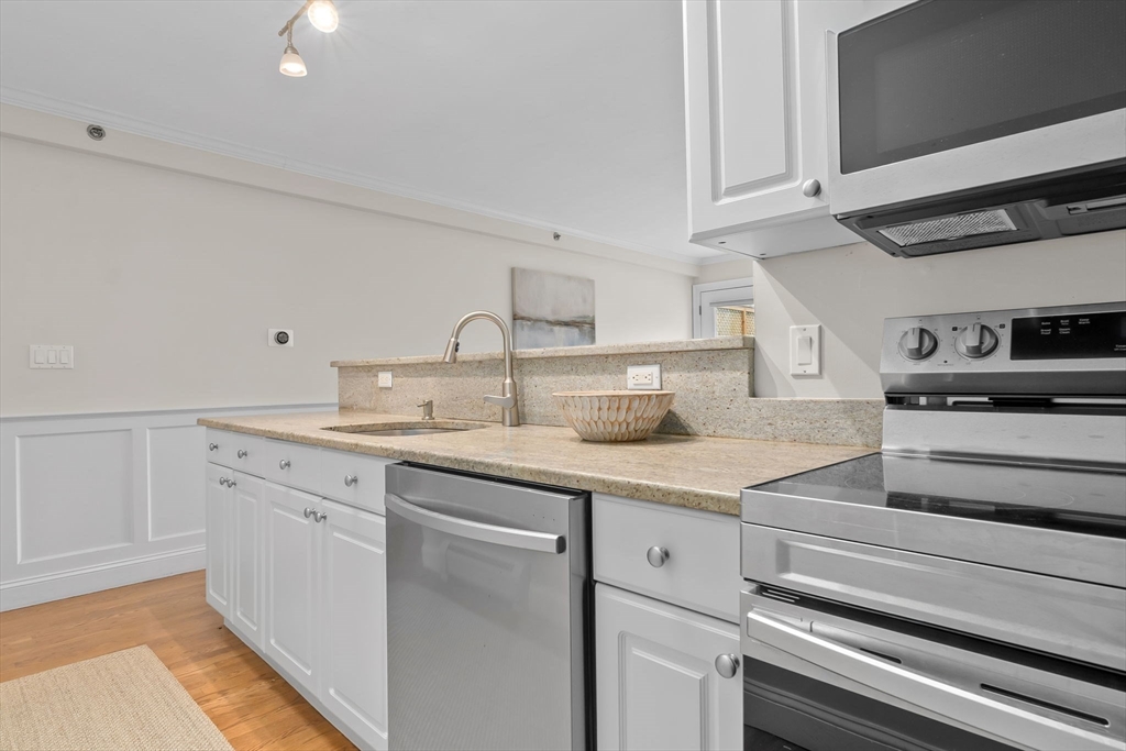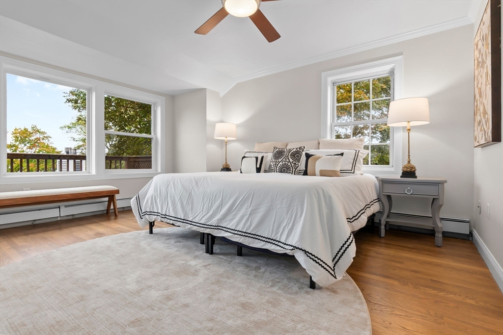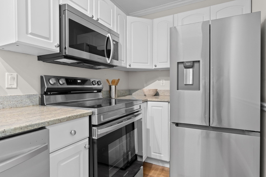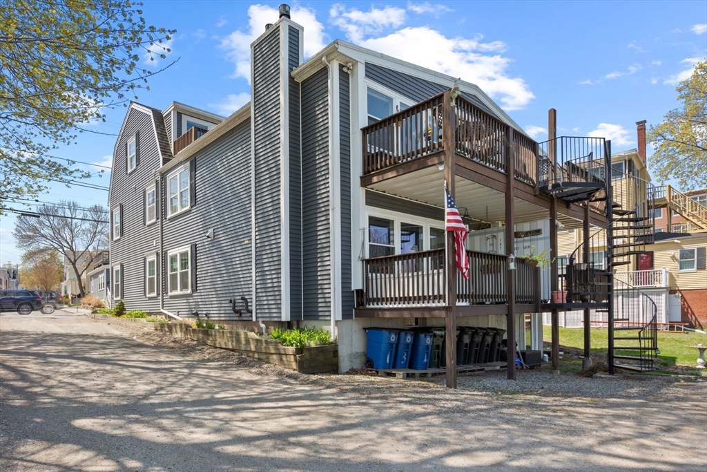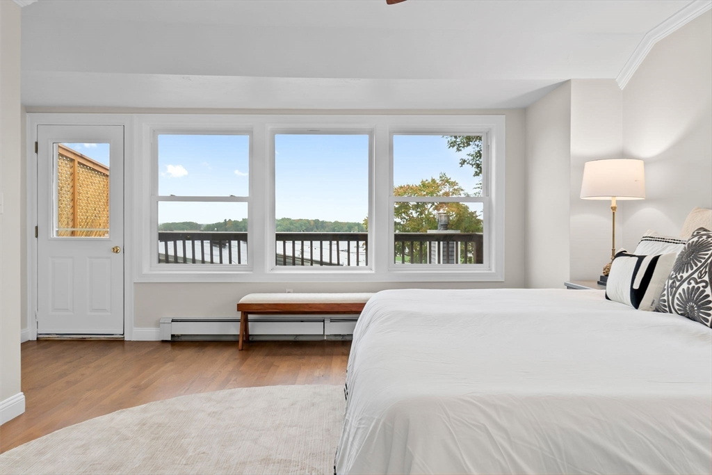 The unobstructed views of the Merrimack River are captivating from this three bedroom upper level condominium, located a short distance to the Clipper City Rail Trail, shops and restaurants of downtown Newburyport. The open living, dining and kitchen area is bright and sunny with a gas fireplace a skylight and a large private deck overlooking the Merrimac River. The kitchen is equipped with granite counter tops and brand new stainless steel appliances. The large laundry closet has a full sized side by side, washer and dryer. There is a large bedroom and a smaller bedroom that makes a great office on the main living level both with walk in closets and a shared bathroom. Up the stairs to the third floor there is a large, bright and sunny ensuite with its own private deck overlooking the Merrimack River. There are two designated off street parking spots and a large storage area in the basement with walk out access to the large shared back yard. There are no restrictions on rentals.
