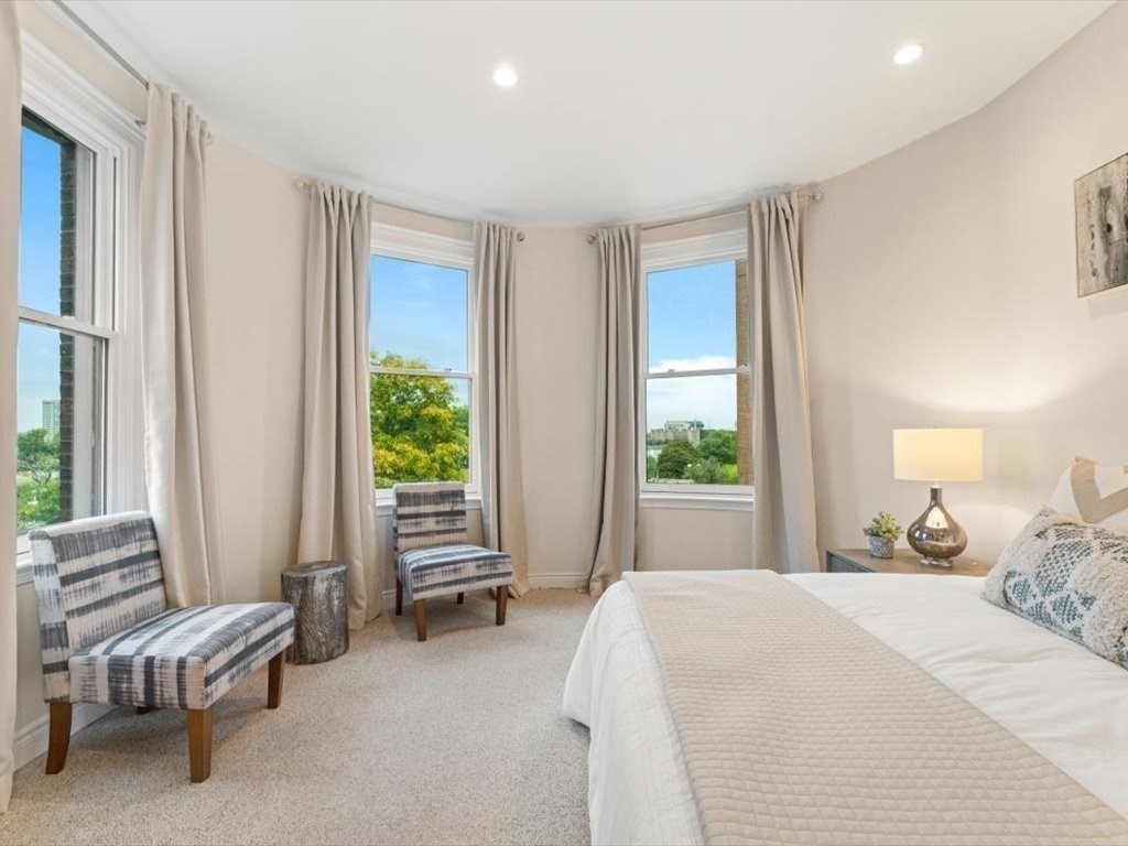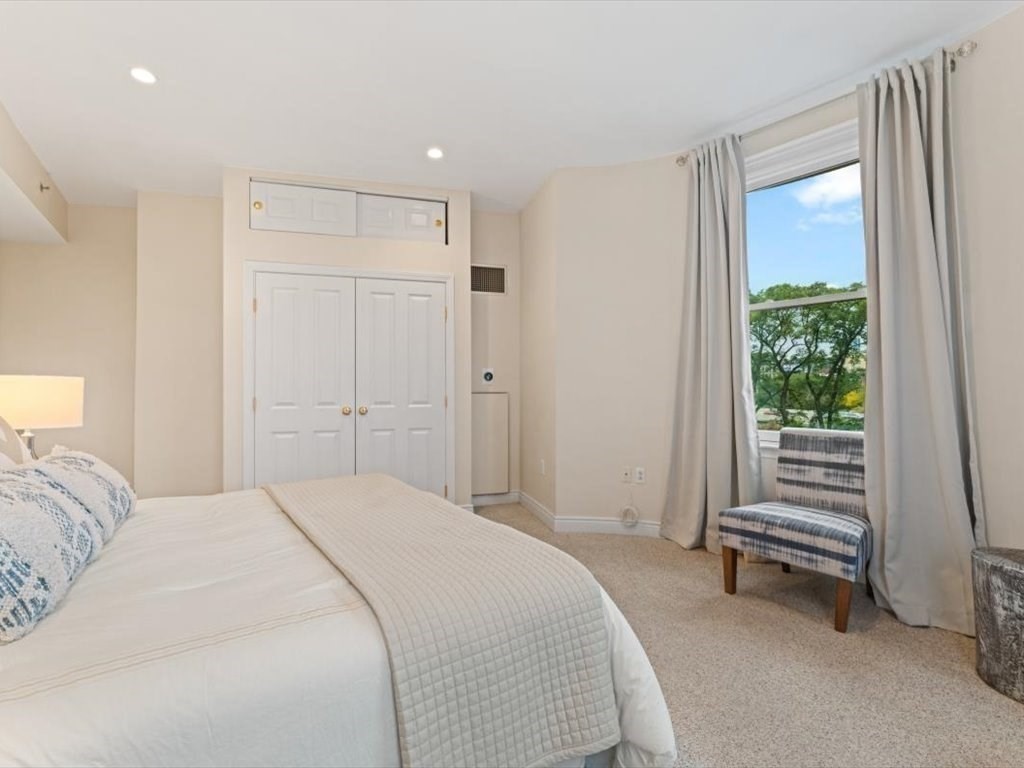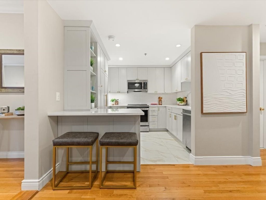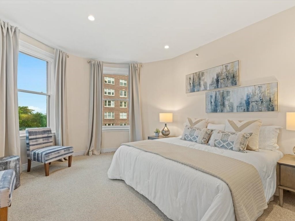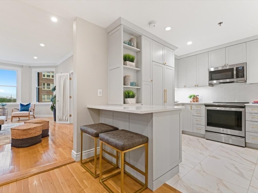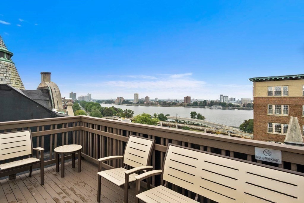 Enjoy living in this sophisticated sun-filled renovated two-bedroom condo w/ split floor plan in the historic Charlesgate w/ incredible views of Charles River and Cambridge from every room. The spacious living room features new bay windows & flows seamlessly into a separate dining area off the stunningly renovated custom kitchen w/ high end appliances & breakfast bar. High ceilings, recessed lights & hardwood floors enhance the elegance throughout w/ French doors leading to the guest bedroom/office also w/ river views. The curved primary bedroom w/ spectacular river views, includes an ensuite bath. Additional features include central AC/heat, in-unit laundry, & extra storage. Residents enjoy the common roof deck, offering incredible sunset views of the river & Boston skyline & a landscaped outdoor common courtyard. The building has a day porter, 2 elevators & handicapped lift. The grand entrance with a formal lobby with the original decorative marble & mosaic tiles is one of a kind.