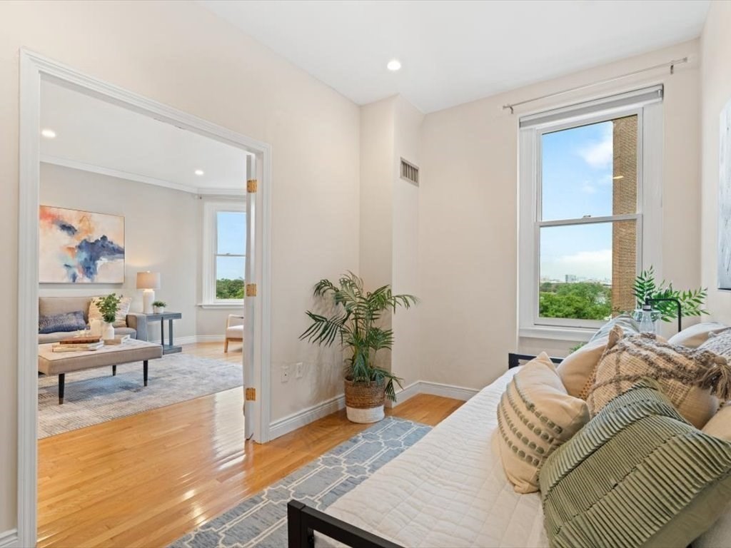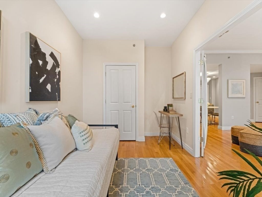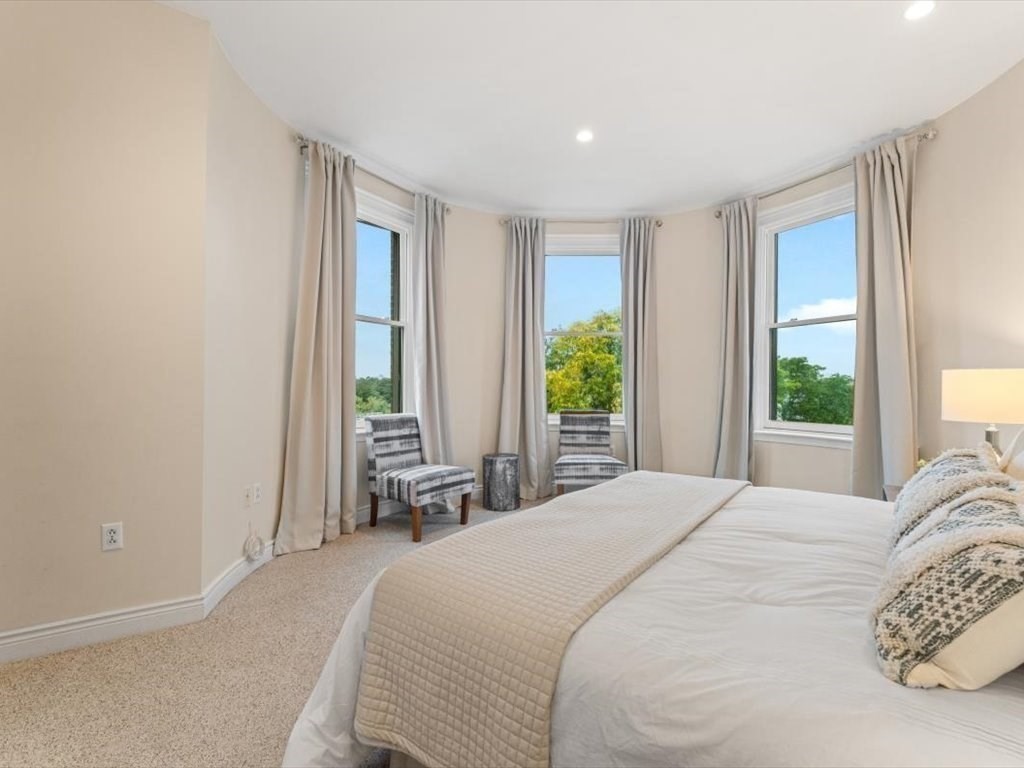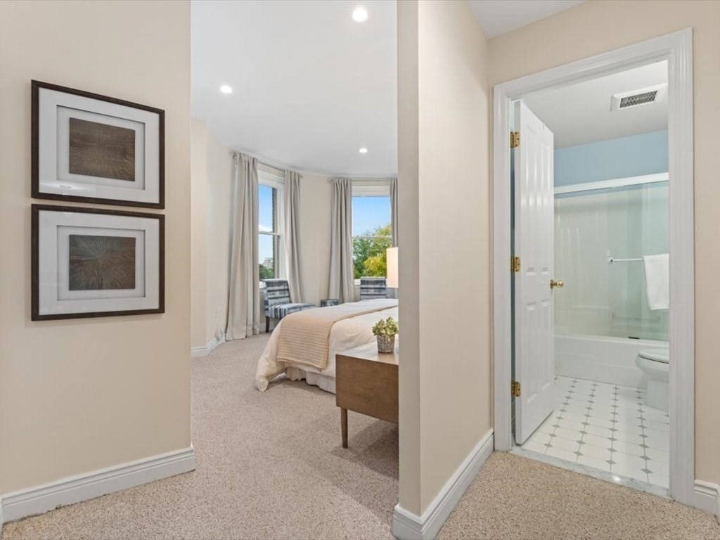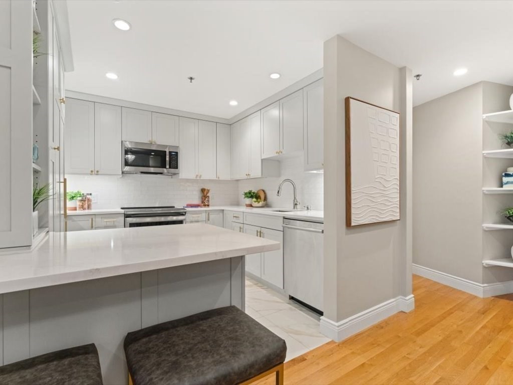 Enjoy living in this sophisticated sun-filled renovated two-bedroom condo w/ split floor plan in the historic Charlesgate w/ incredible views of Charles River and Cambridge from every room. The spacious living room features new bay windows & flows seamlessly into a separate dining area off the stunningly renovated custom kitchen w/ high end appliances & breakfast bar. High ceilings, recessed lights & hardwood floors enhance the elegance throughout w/ French doors leading to the guest bedroom/office also w/ river views. The curved primary bedroom w/ spectacular river views, includes an ensuite bath. Additional features include central AC/heat, in-unit laundry, & extra storage. Residents enjoy the common roof deck, offering incredible sunset views of the river & Boston skyline & a landscaped outdoor common courtyard. The building has a day porter, 2 elevators & handicapped lift. The grand entrance with a formal lobby with the original decorative marble & mosaic tiles is one of a kind.