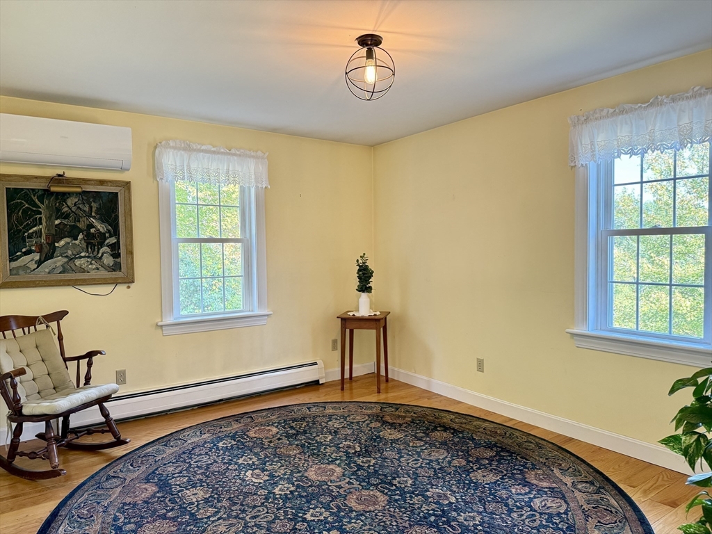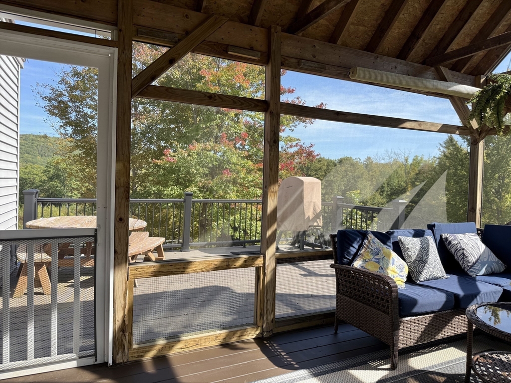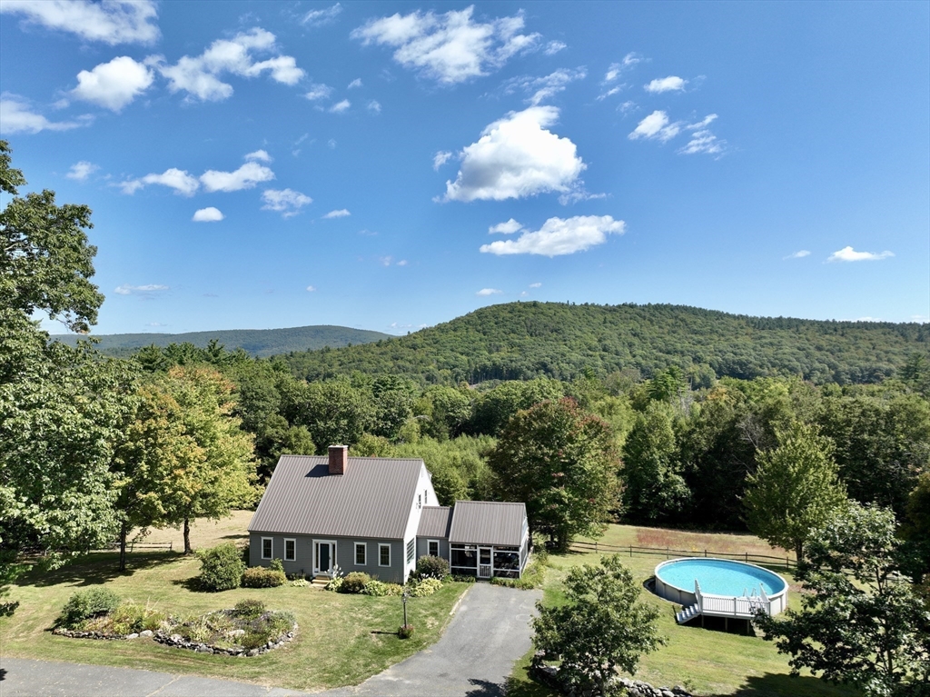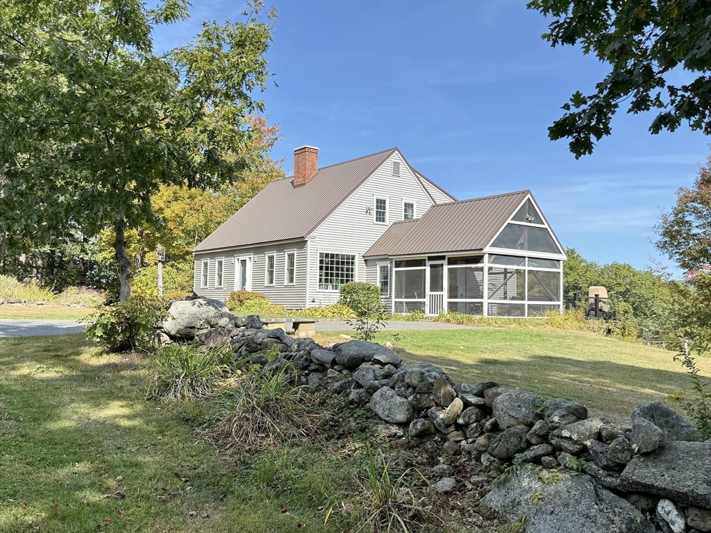 Seeking Personal Hilltop Paradise? How about 26+ acres of fields, woods & trails with a classic Cape, big screened porch & open deck? It just became available! Arrive down a gentle 1/2 mile private driveway to a one owner home, meticulously maintained, & surrounded by conserved land. Views to the east capture extraordinary sunrises and moonrises. Terrific flowing layout offers amazing kitchen, light-filled dining room, & large living room. There's a dedicated laundry room, 2 full baths, 3 large bedrooms (main w/big walk-in closet) & an ample den/office. Exterior is vinyl and roof is metal for ease of maintenance. There are 5 recent mini splits for updated cooling and heating. Additionally, a pellet stove & oil hot water baseboard provide for the chilliest of winter. A whole house generator is peace of mind in a power outage. Just 10 minutes to Shelburne Falls. Accompanied showings only. See disclosures re Conservation Restriction. Agents see firm remarks b4 scheduling.