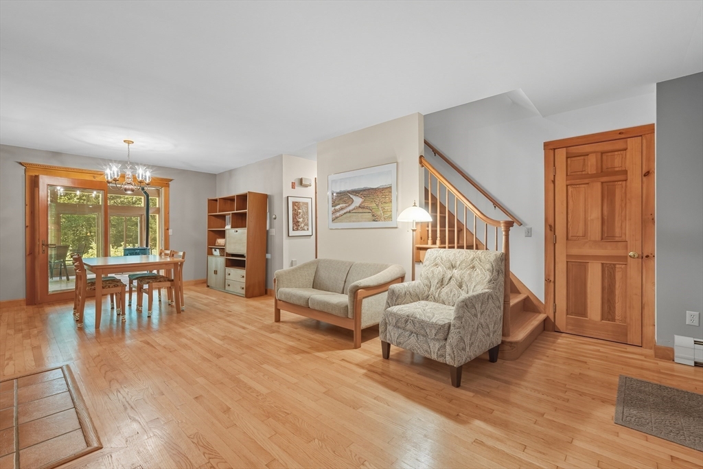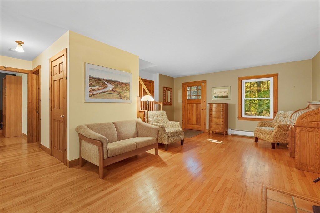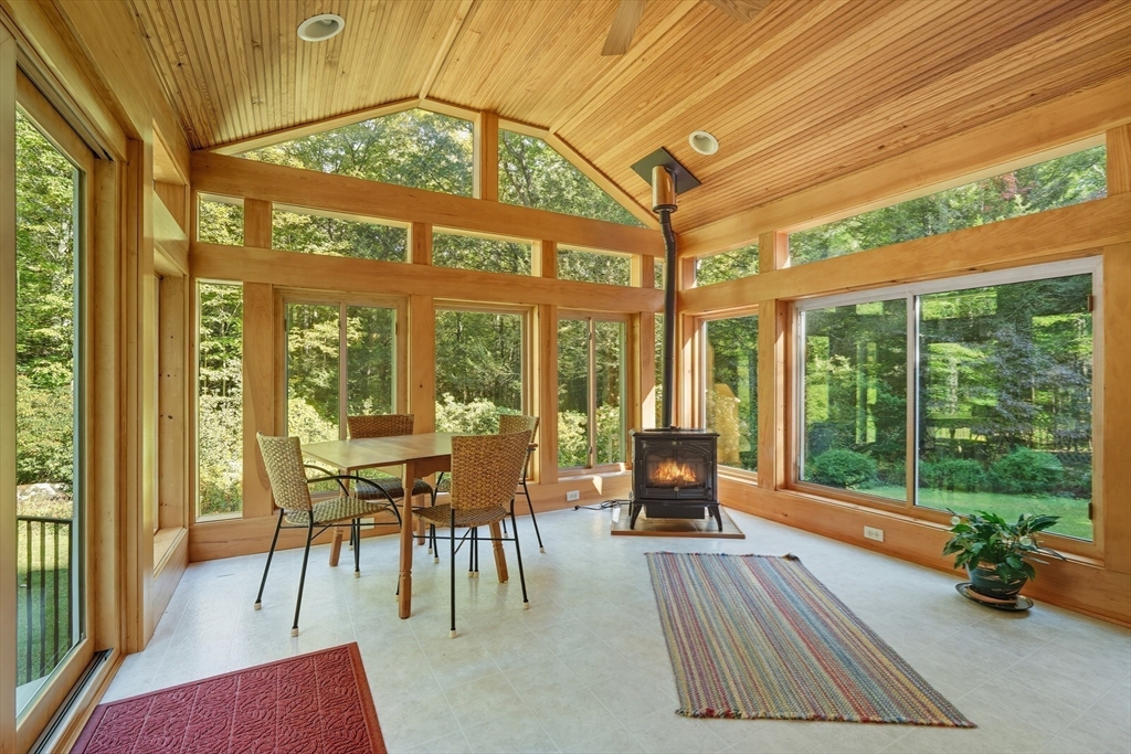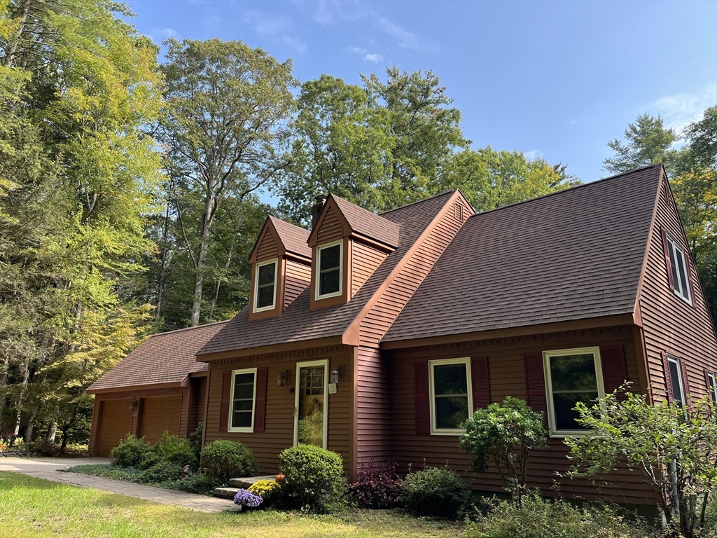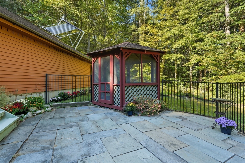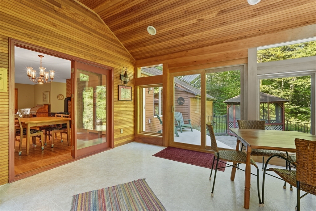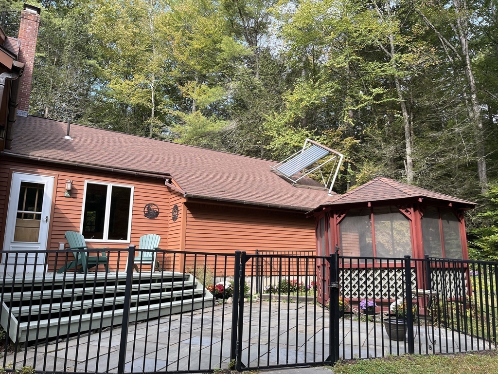 The sights and sounds of nature surround you with this 2.96 acre property which abuts approx. 600 acres of conservation land. You will enjoy the open floor plan and the comfort and warmth of the wood floors and natural woodwork. The kitchen has been upgraded with new appliances, quartz countertops and mudroom access from the oversized two car garage. Off of the living room is a beautiful 3 season sunroom with large windows and a pellet stove where you can relax and enjoy your own nature preserve. The flexible floor plan offers one floor living with two bedrooms (currently being used as an office and a den) and a full bath. The second floor has two bedrooms, full bath and lots of closet storage. The basement, with high ceilings, is partially finished and perfect for a workout room or hobbies. Add'l features include a solar HWH system, new Superstor SSHWH and burried elec. lines. The gazebo, deck & patio add to the enjoyment of nature, Unmatched privacy yet a 5 min. drive to I91